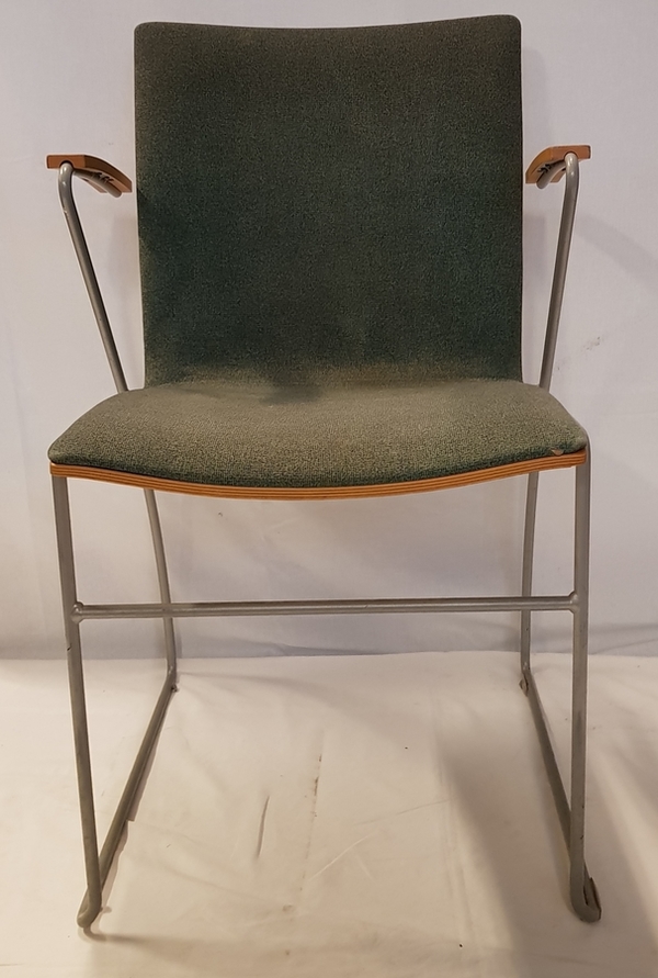 Metaal en hout, wachtkamer stoelen ( 4 stuks ) Kembo cyclus, eind 20e eeuw, slechts een afgebeeld maar zijn er 4