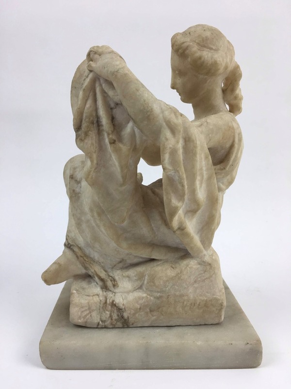 Zamac klok met een figuur op marmeren voet, Frankrijk, 19e eeuw