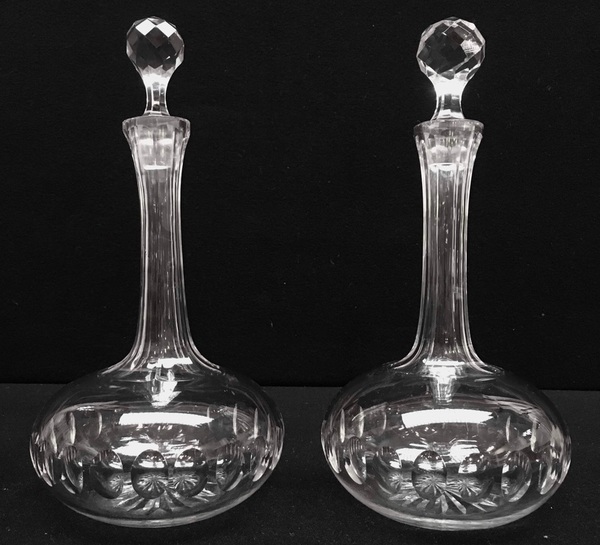 Kristallen likeurkaraffen met amandelslijpsel, Duitsland / Bohemen, eind 19e eeuw