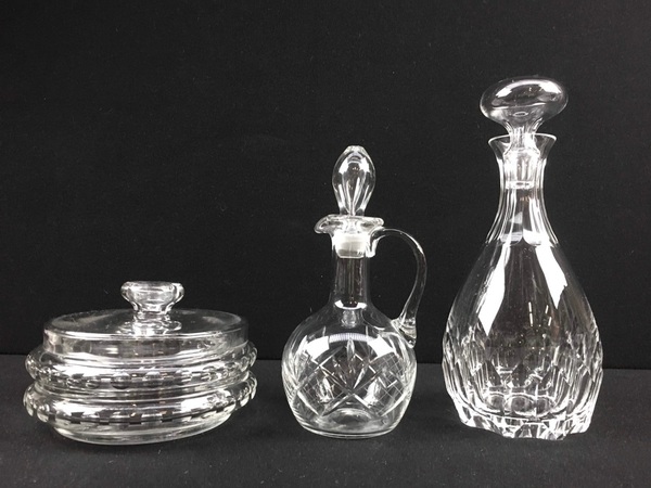 799. Kristal, twee karaffen en een dekselschaal, Bohemen, 20e eeuw