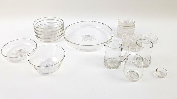 Kristal, o.a. onderzetters, schotels, schaal en kom, eerste helft 20e eeuw