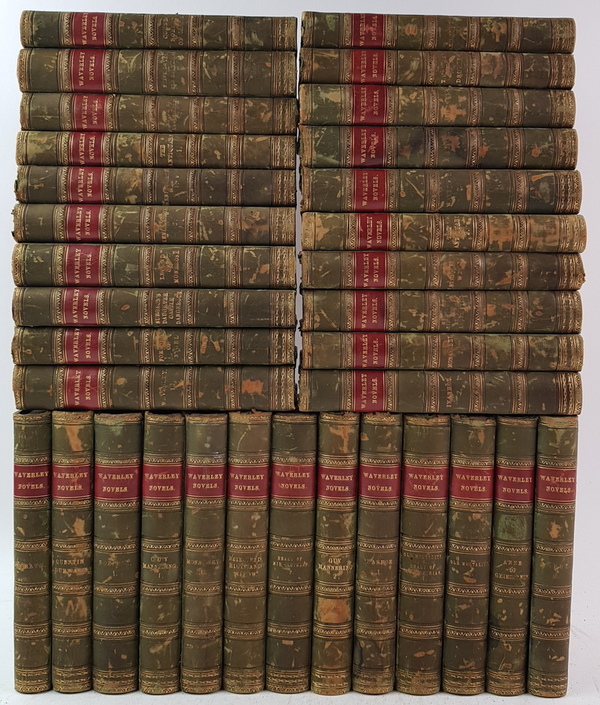 Sir Walter Scott - Waverley Novels. London: Fisher, Son & Co e.a.; 1831/1843. Uniform gebonden in halfleer met gemarmerde platten. Titelschildje, goudopdruk en ribben op de rug. Ca 300pp. per deel. Met gravures. 8vo (17x11 cm).