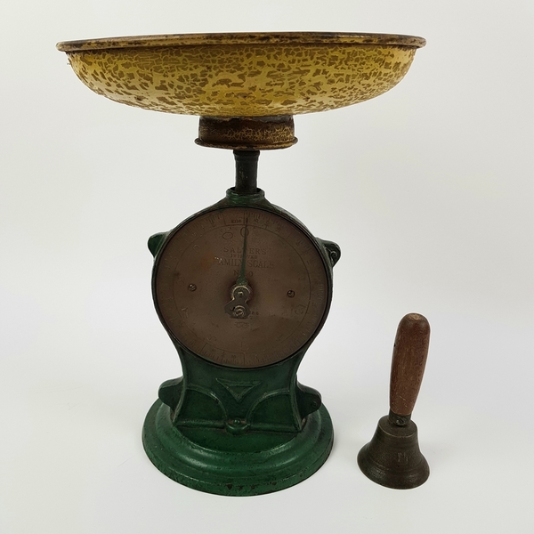 Weegschaal “Salter’s improved family scale” en tafelbel begin 20e eeuw