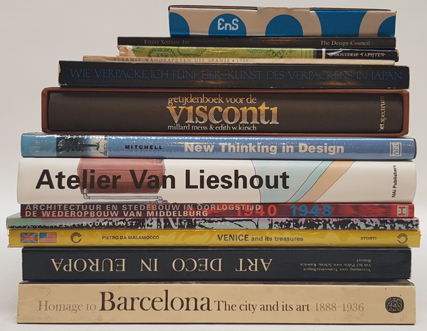 Een divers lot kunstboeken, waaronder enkele over modern design. Hierbij: Millard Meiss e.a. - Getijdenboek voor de Visconti. In slipcase. [Totaal: 13].