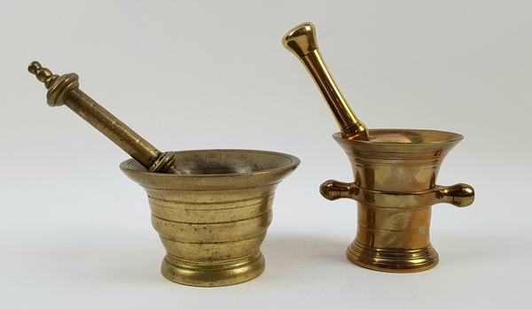 Brons, 2 stuks vijzels , 19e en 20e eeuw. Beide met stamper.