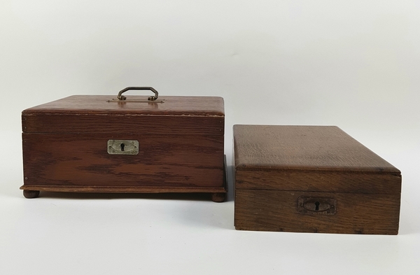 823. Hout, opbergkist en scheerkist, 1e helft 20e eeuw.