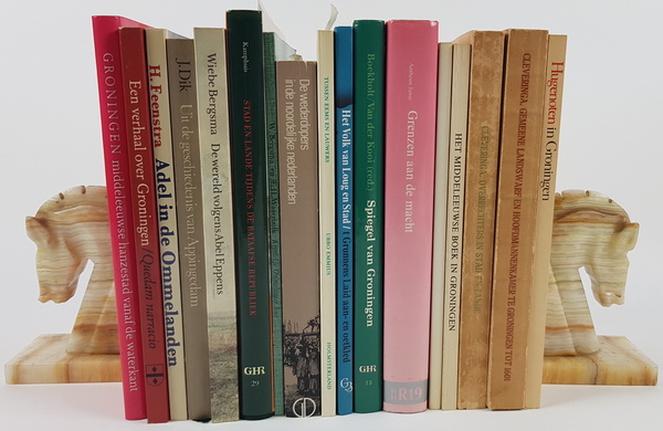 Een divers lot boeken, veelal met betrekking tot de stad en de provincie Groningen. Onder meer een paar titels uit de Groninger Historische Reeks en over Groningen in de middeleeuwen en de Vroegmoderne Tijd. [Totaal: 17].