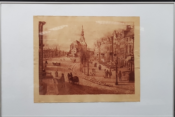 Een offset druk van de Vismarkt, gelijst. Enkele knikjes in de marges.