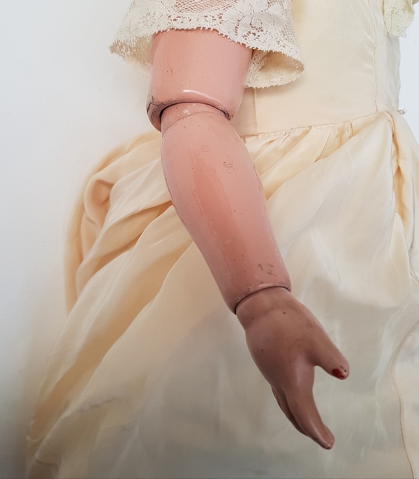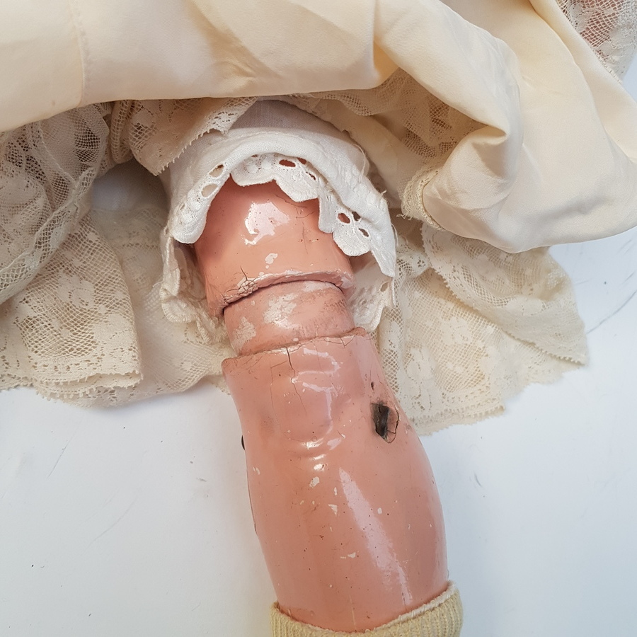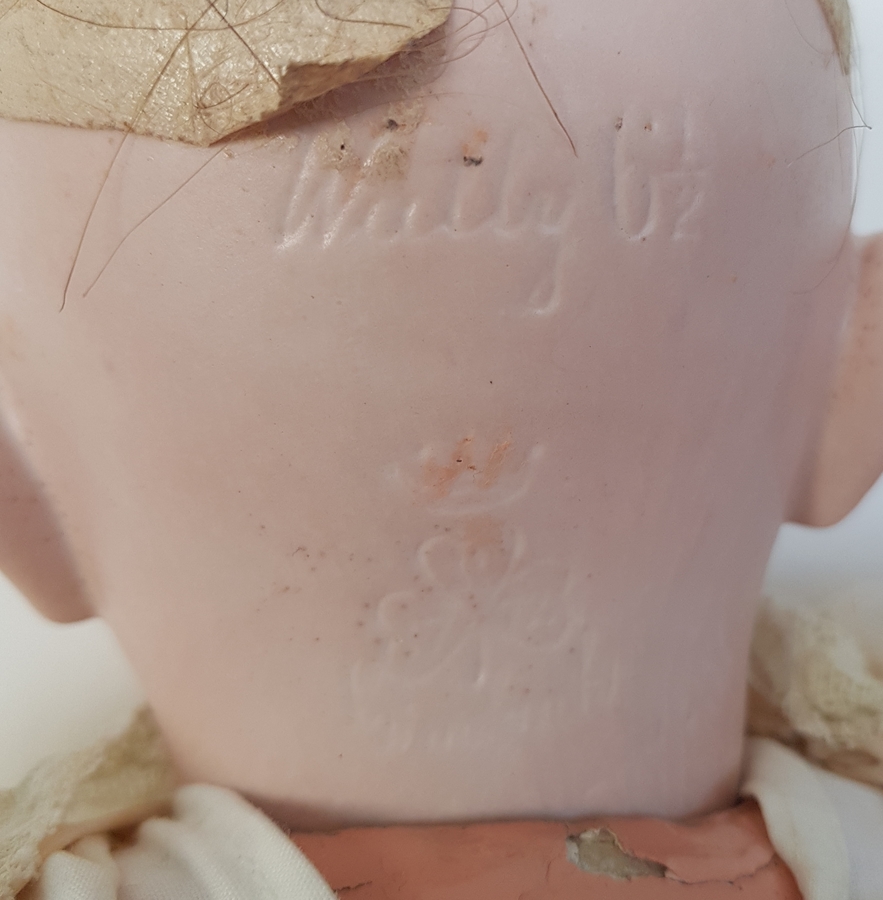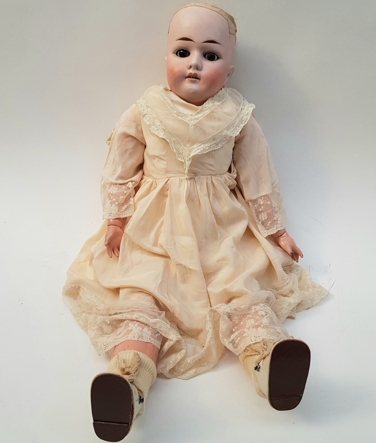 Antieke pop met porseleinen hoofd gemerkt (zie foto). |