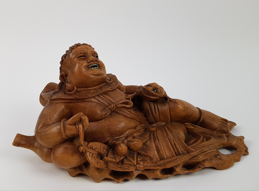 Houten beeld van een liggende boeddha, China, midden 20e eeuw |