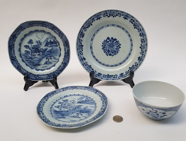 Porseleinen borden en kom, China, 18e eeuw , 4pcs. |