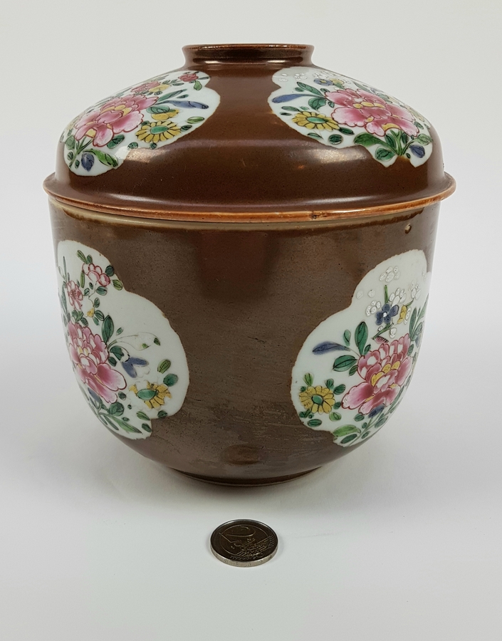 Porseleinen candypot, batavia brown, China, 18e eeuw |