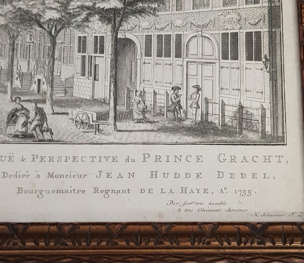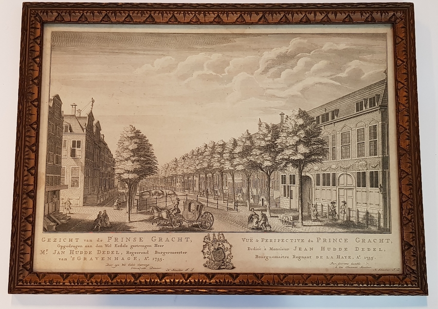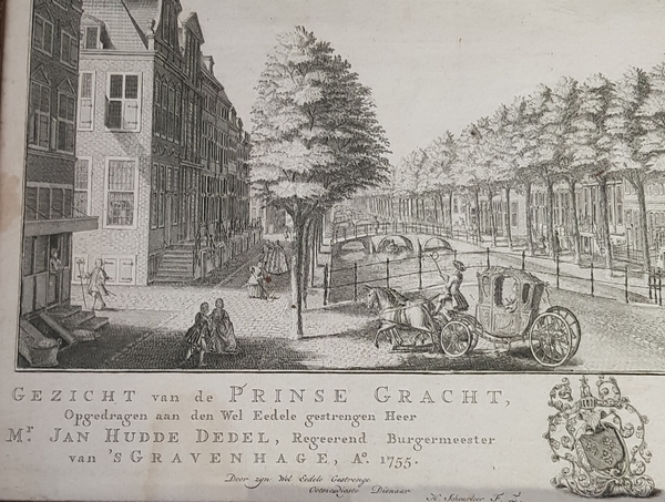 Gravure gezicht van de Prinse Gracht Den Haag 1755. |