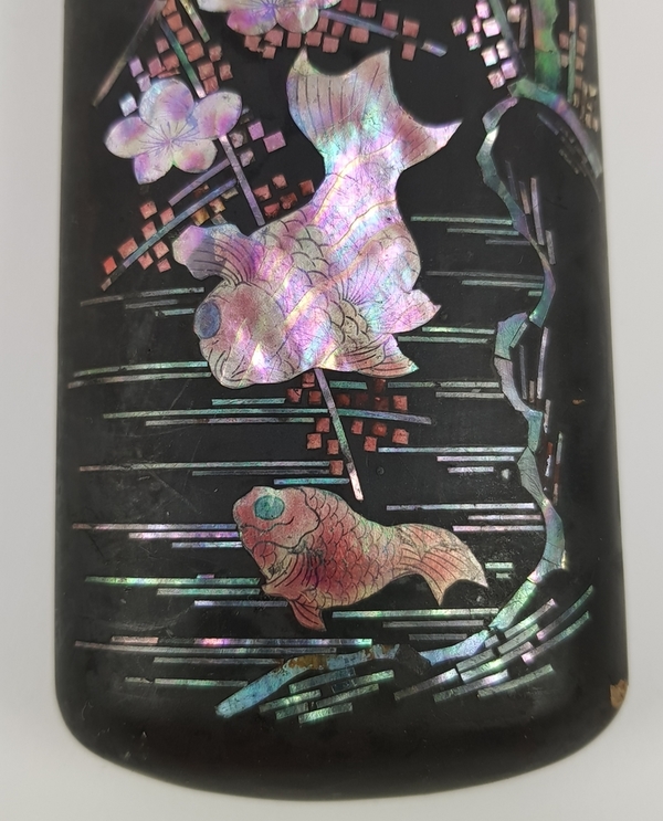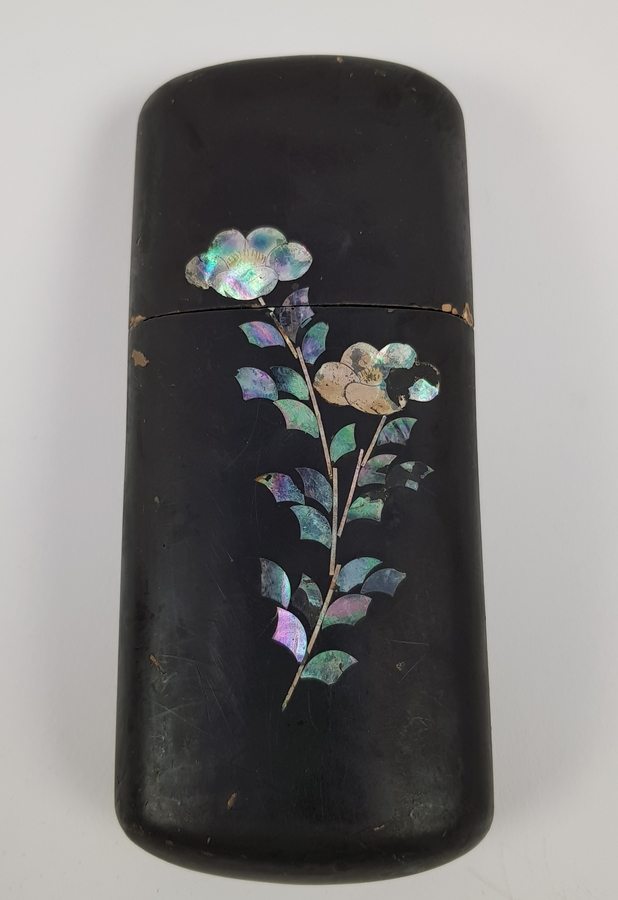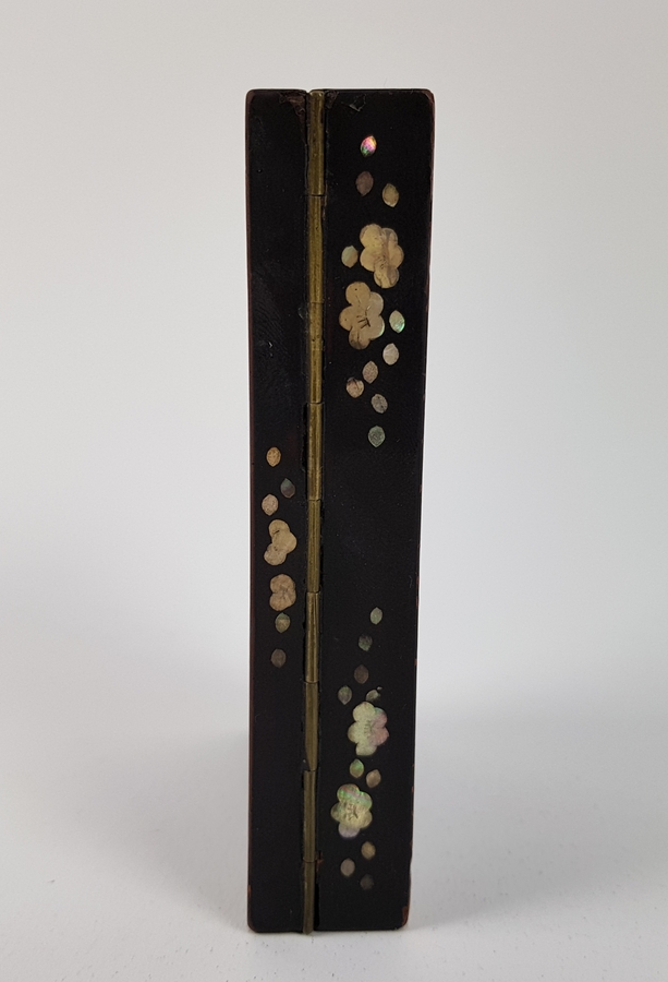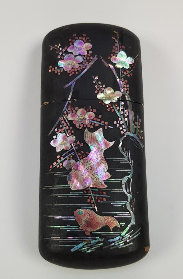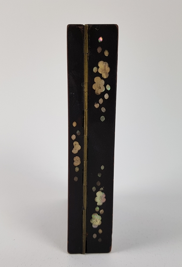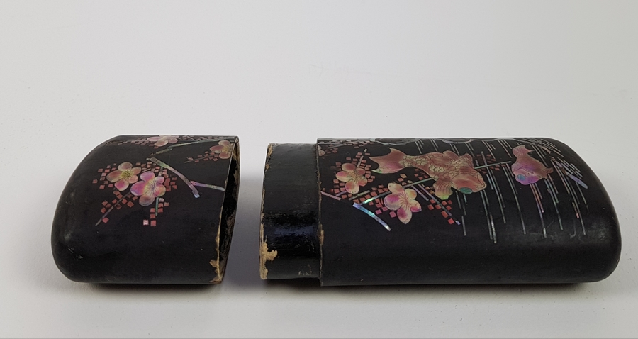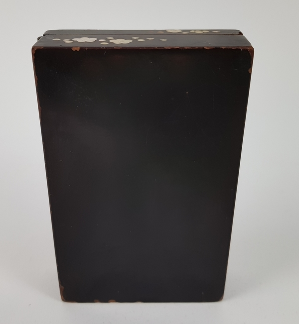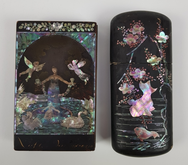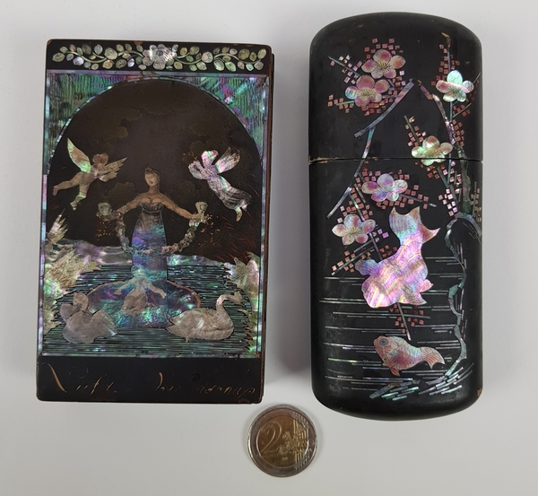 Twee Japans houten lakdoosjes ingelegd met parelmoeren motieven circa 1900. |
