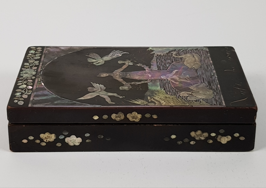 Houten lakdoosjes ingelegd met parelmoer