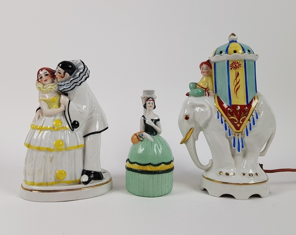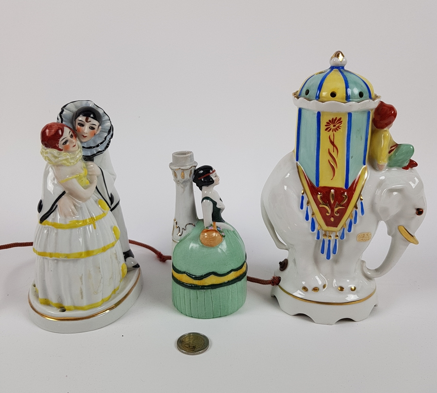Porseleinen parfumbranders en beeld van pierrot, Duitsland, eerste helft 20e eeuw |