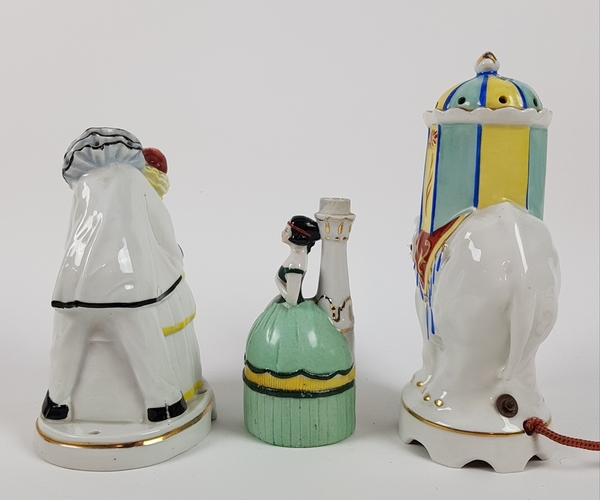 Porseleinen parfumbranders en beeld van pierrot, Duitsland, eerste helft 20e eeuw