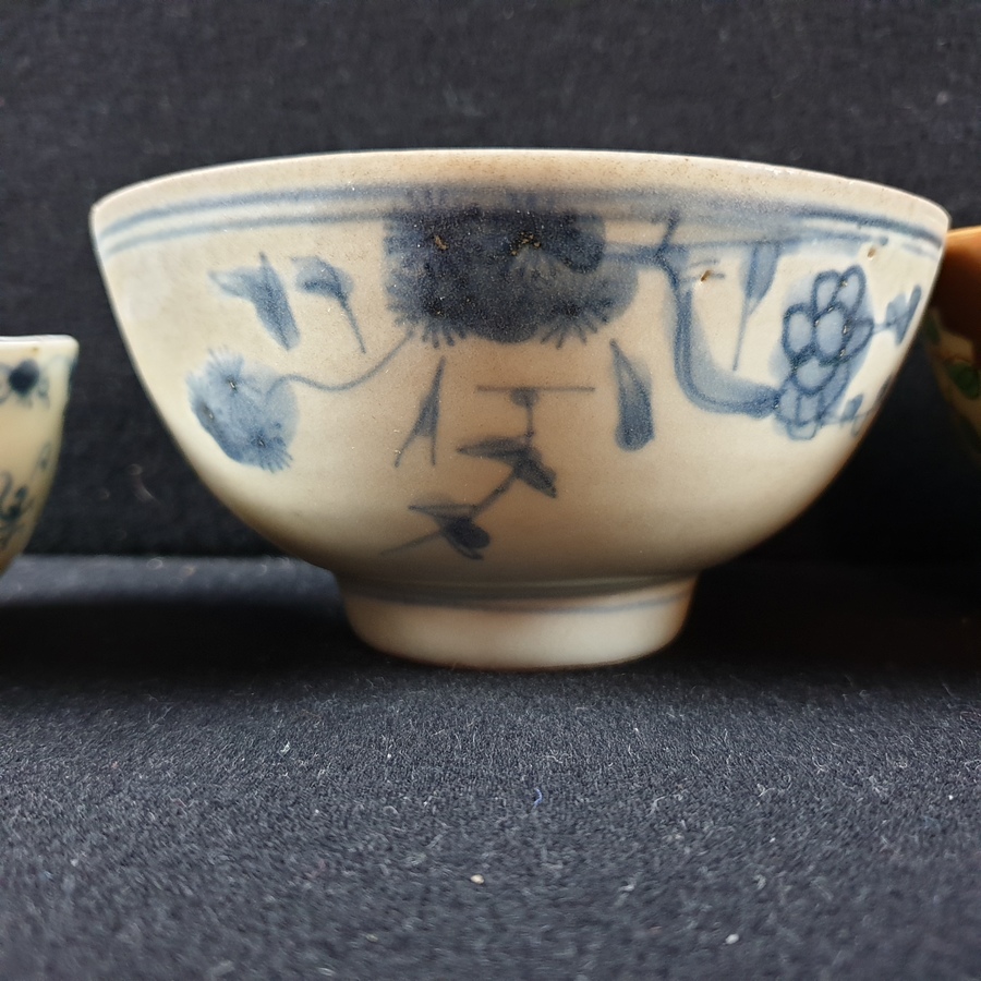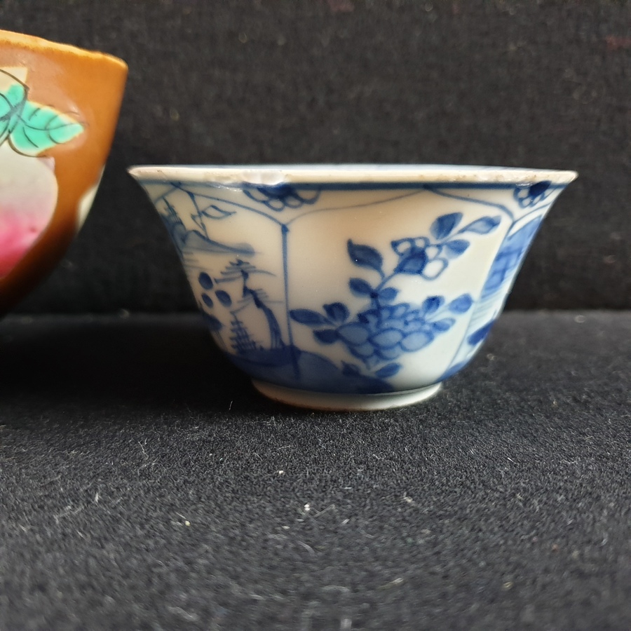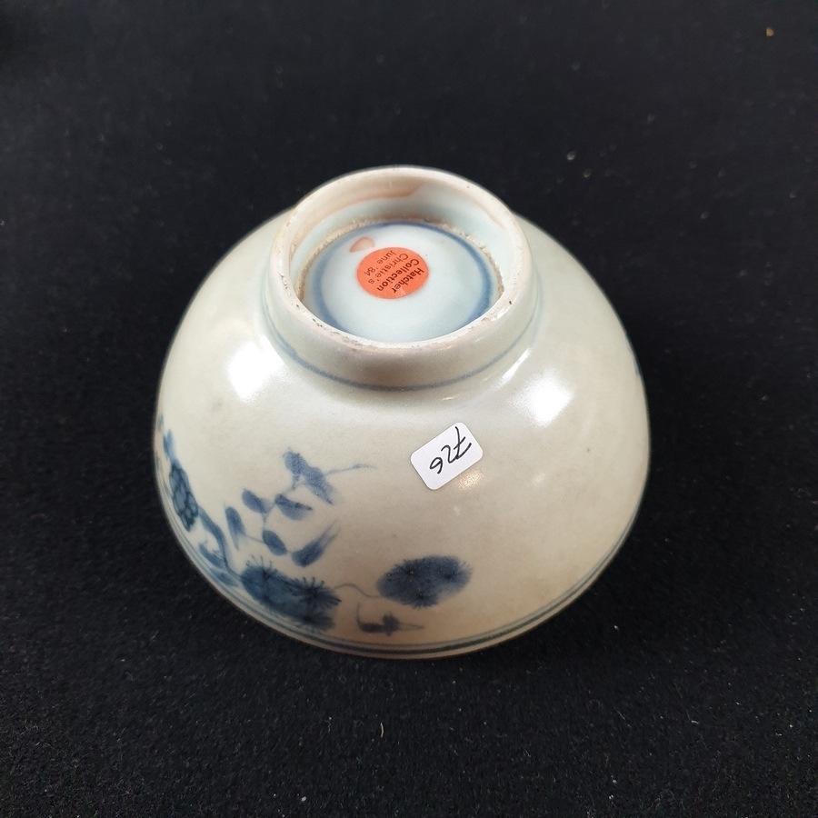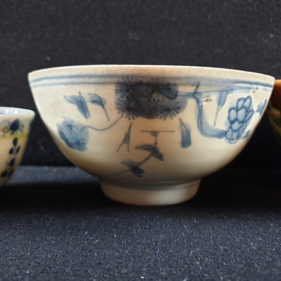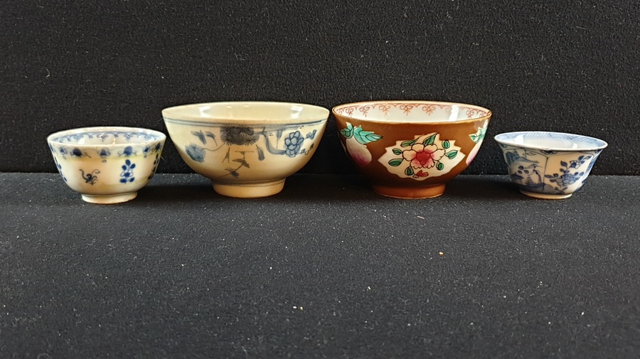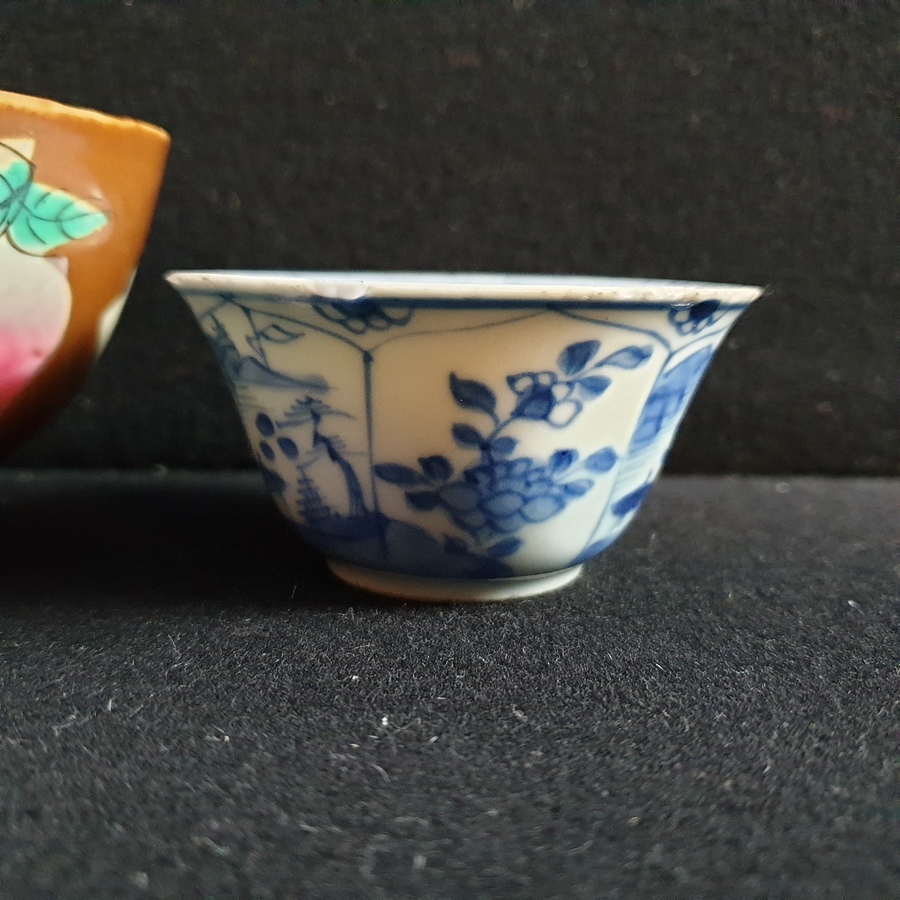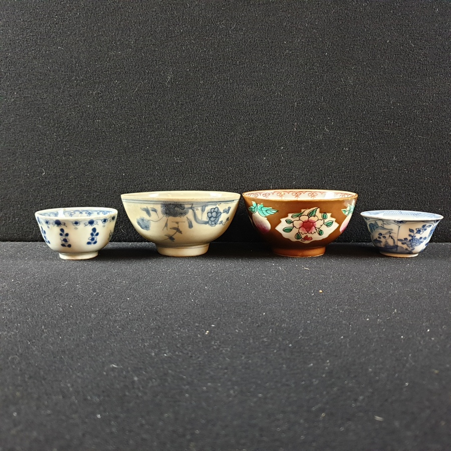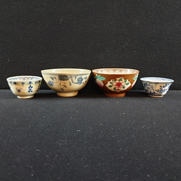 | Conditie | Goede conditie, een blauw wit kommetje ( Kangxi ) met chipjes aan de rand, blauw wit kommetje ( Chienlung ) een haarlijn en wat frittings. De hatcher en batavia kommen zijn in goede conditie | |
