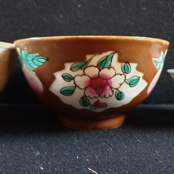 | Afmetingen | Breedte twee keer ca. 7.5 cm en een kom van 11 en een kom van 11, 5 cm ( Hatcher Collection ) |