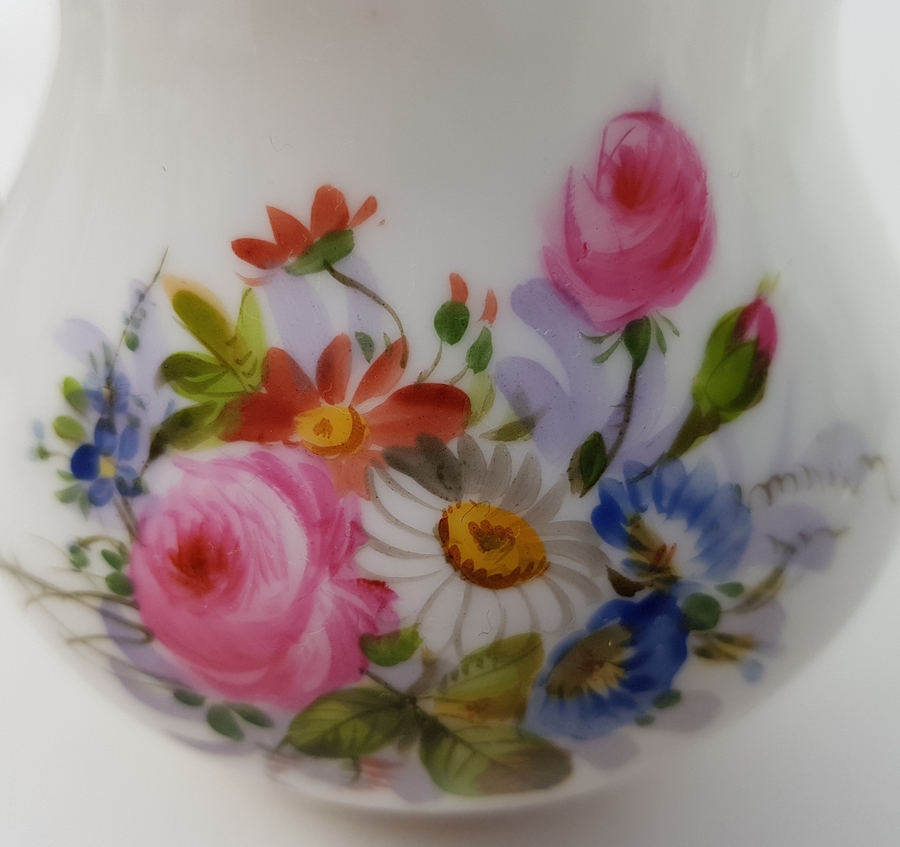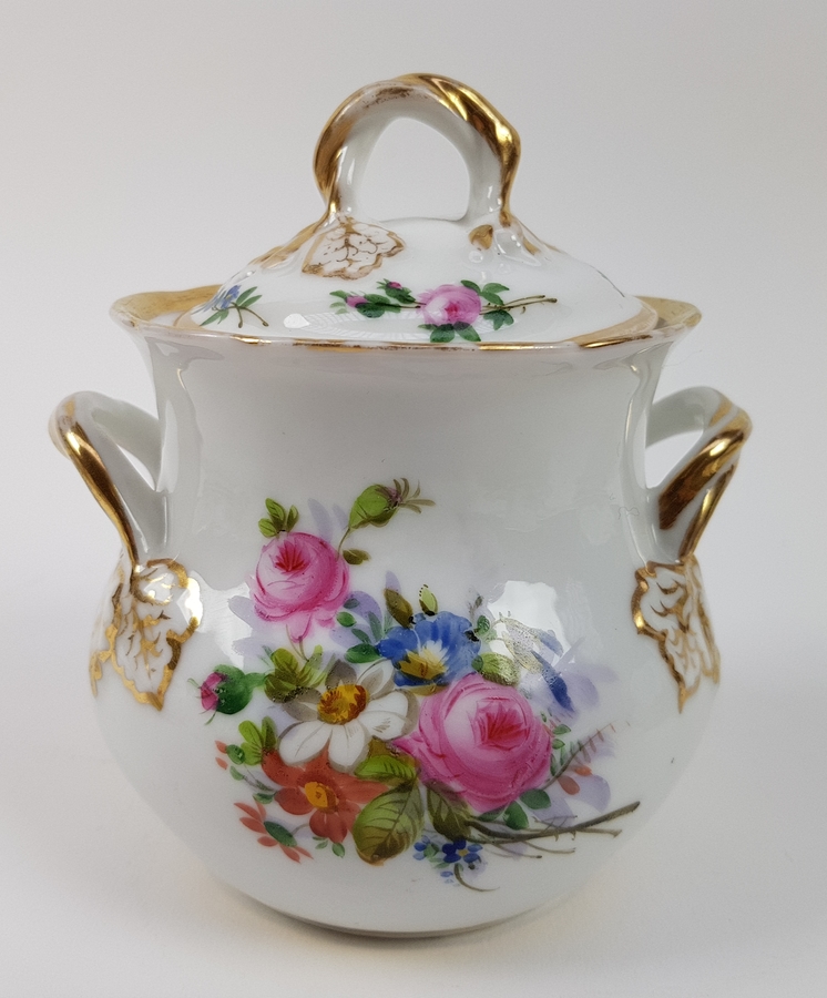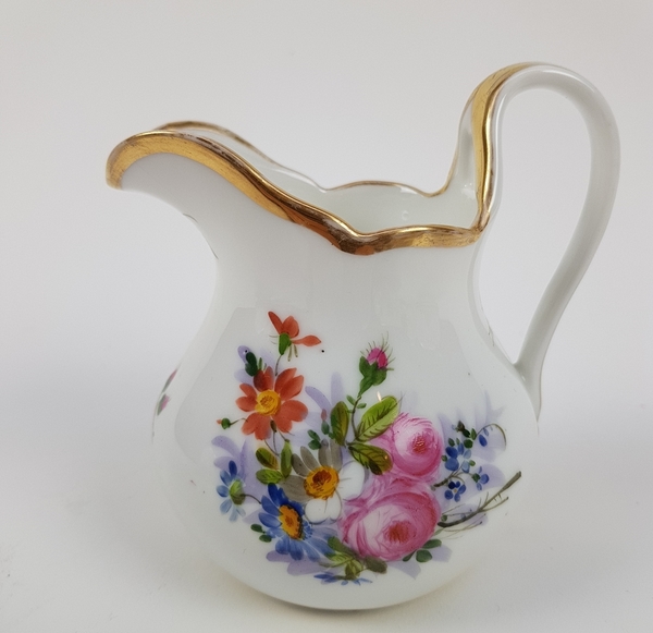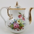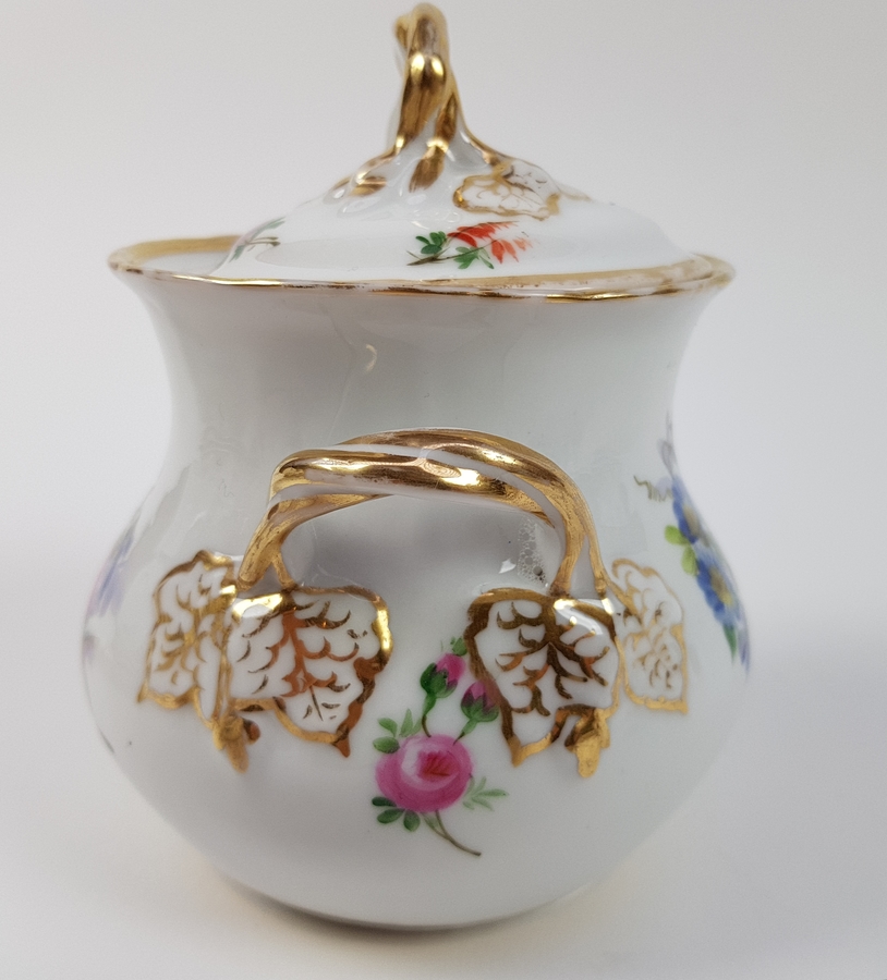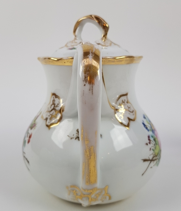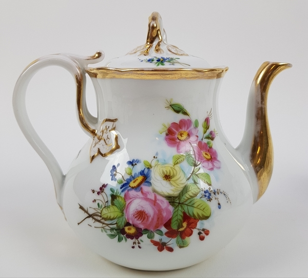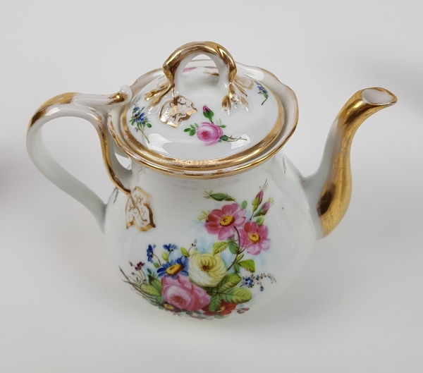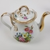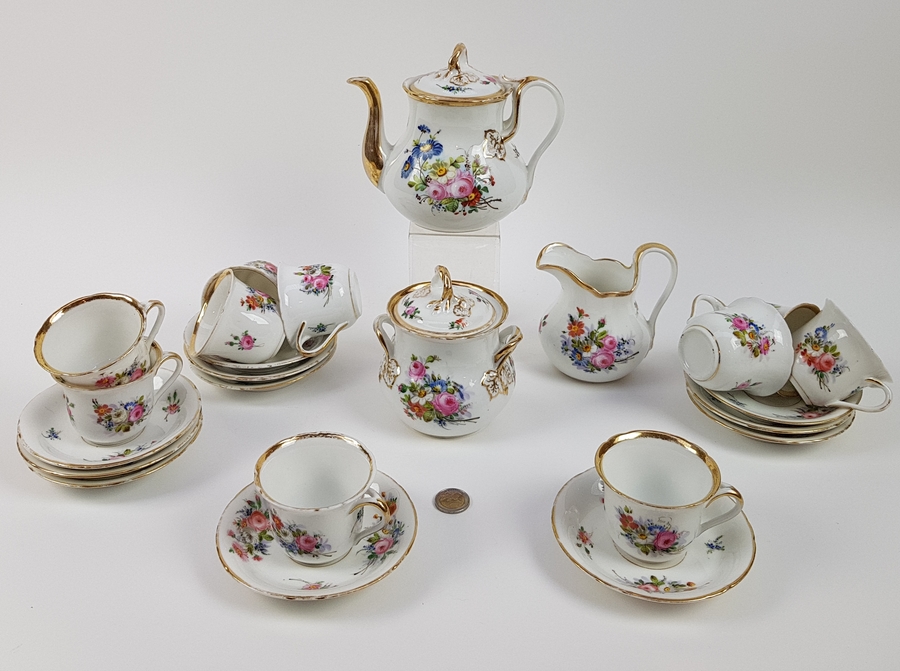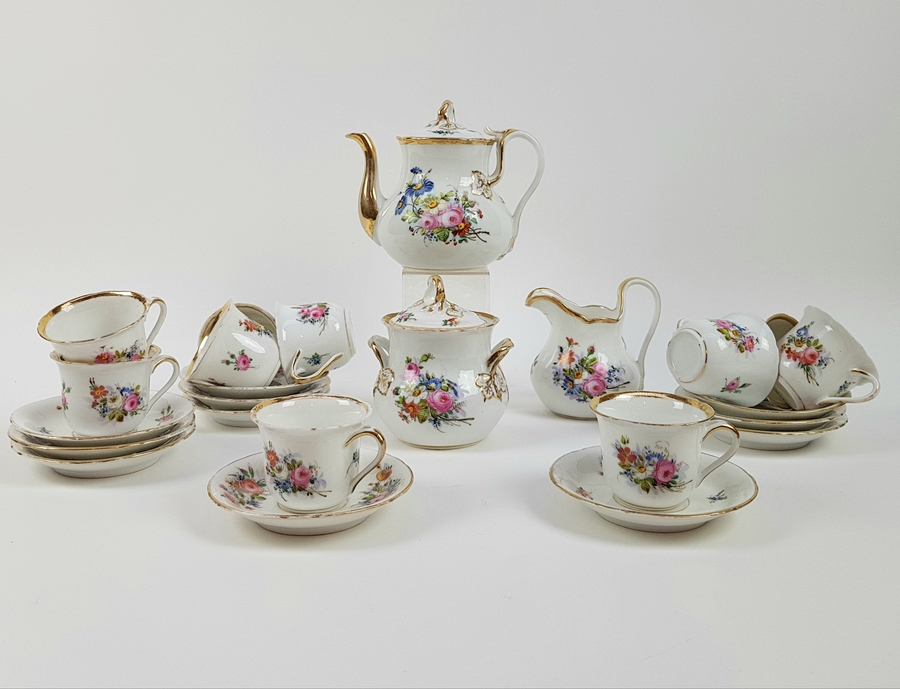Theepot, suikerpot, melkkan en tien kop en schotels. |
