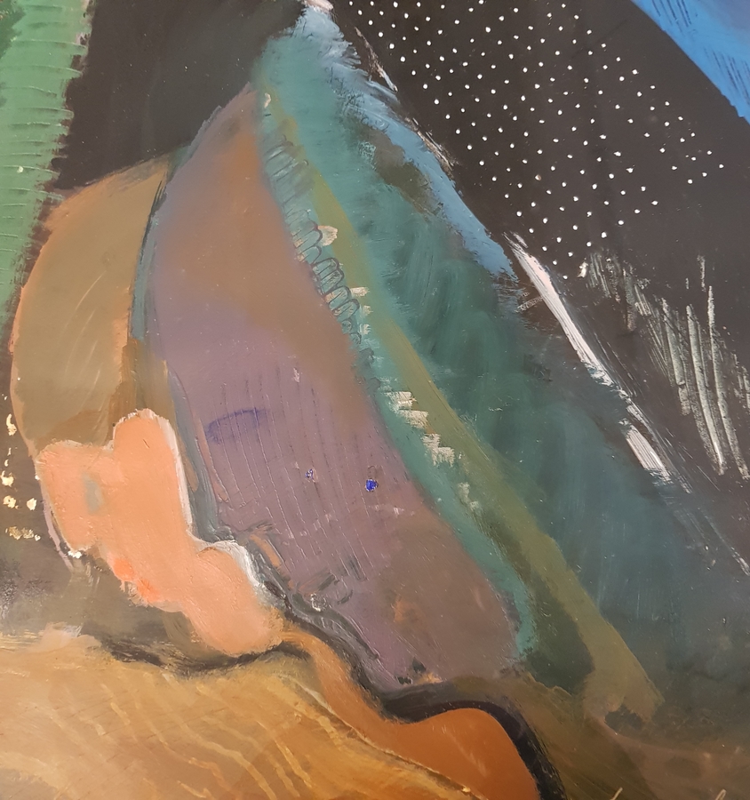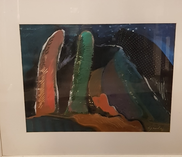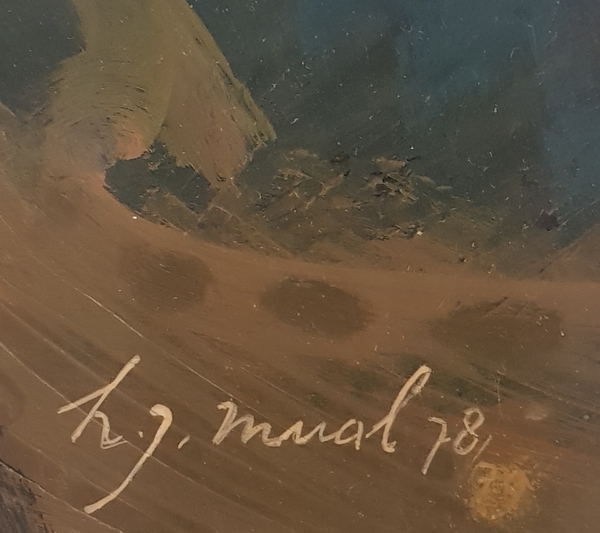 Schilderij acryl op papier gesigneerd H.J. Mual '78. |