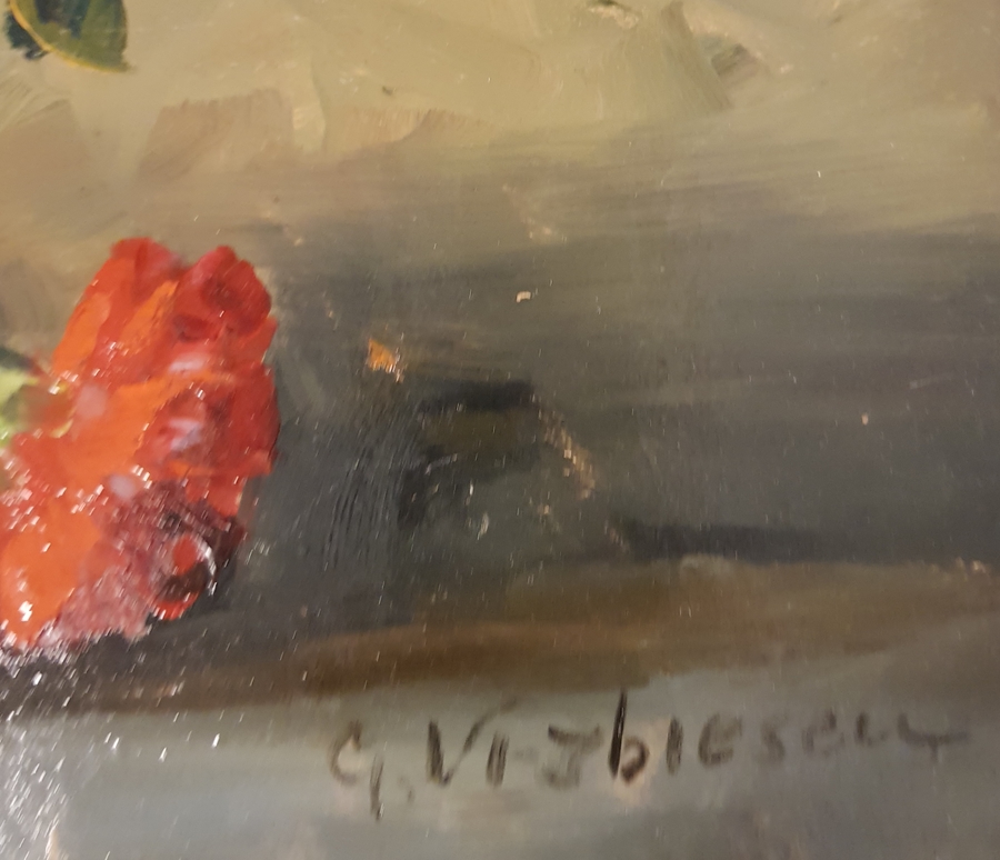 Stilleven gesign. G. Verbiesen en aquarel gesign. P. Damare
