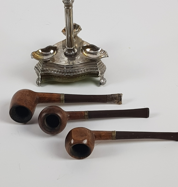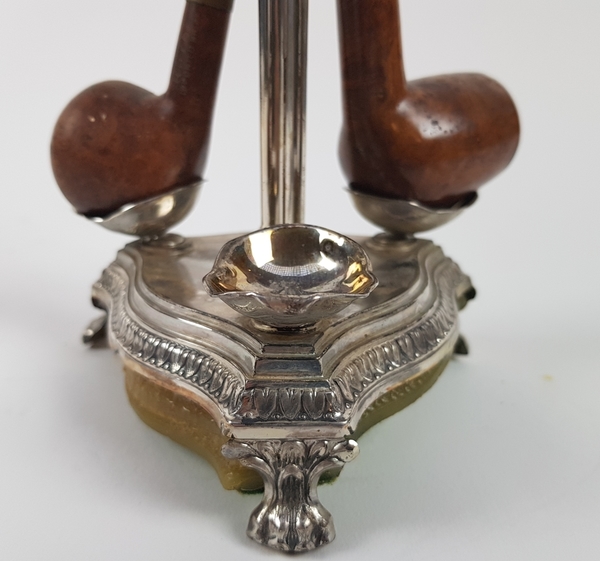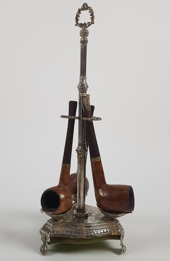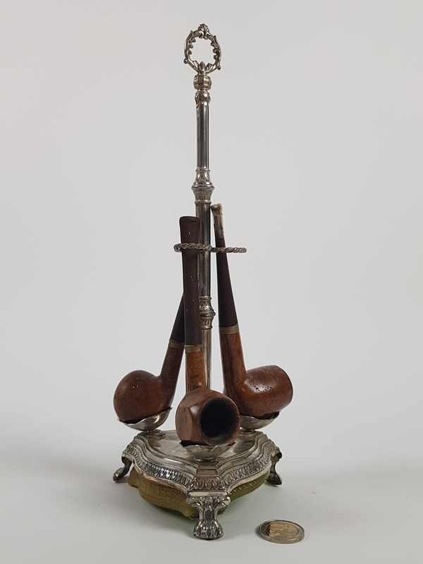 Zilveren pijpen standaard met drie pijpen