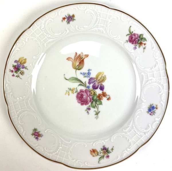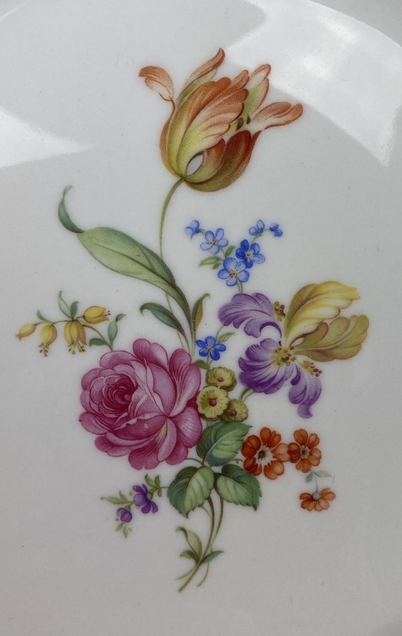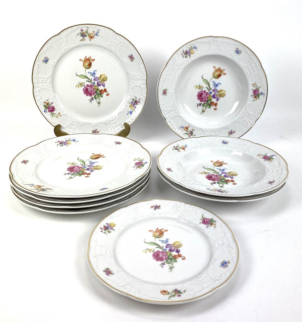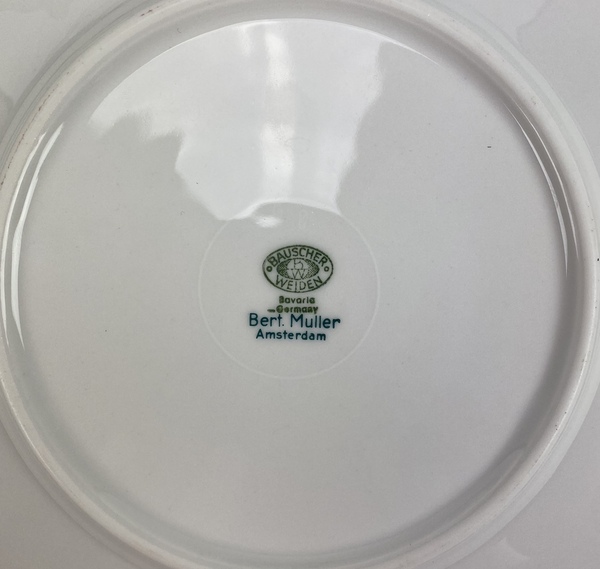 Drie diepe borden, vijf grote borden en een klein bord, Bauscher Weiden, Bavaria Duitsland, Bert Muller Amsterdam. |