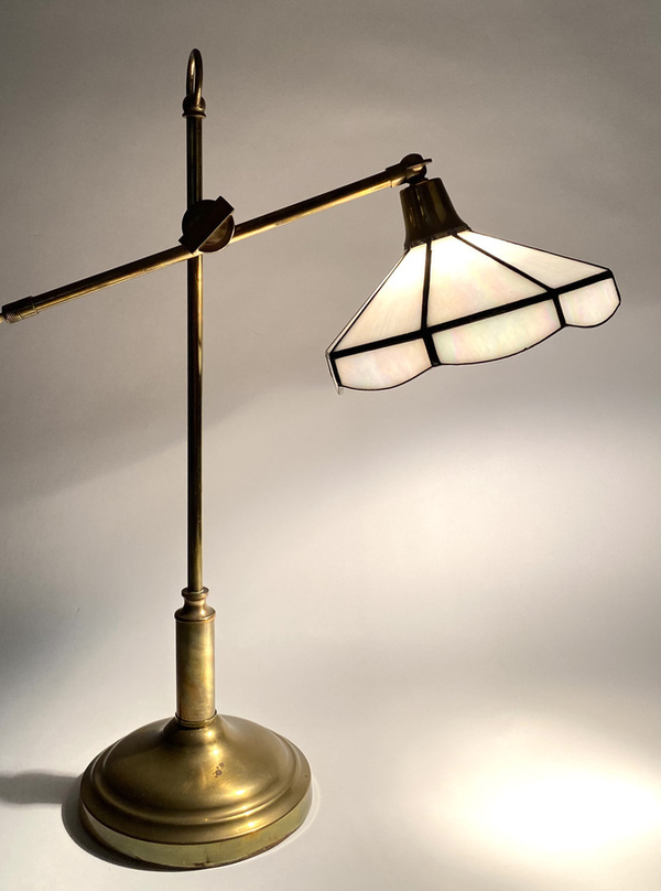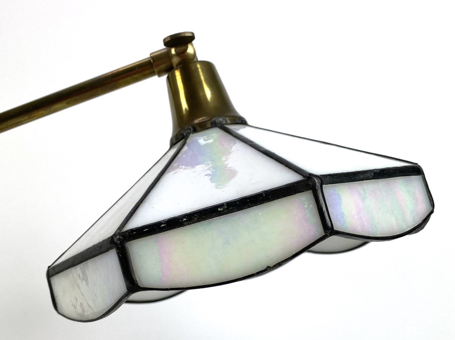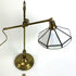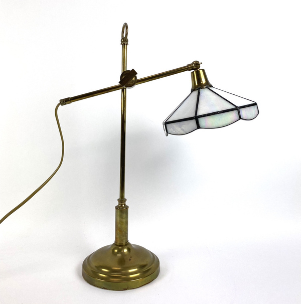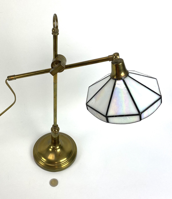Messinglamp met glas-in-lood kap. |