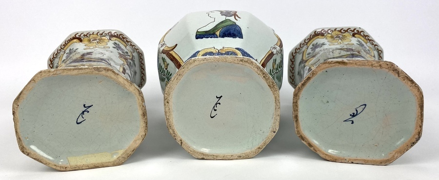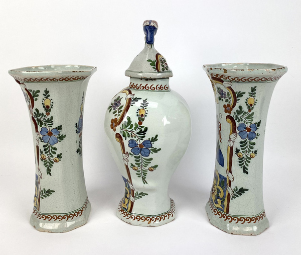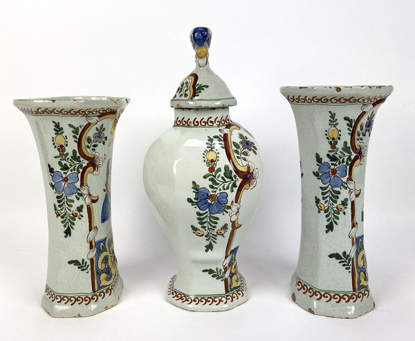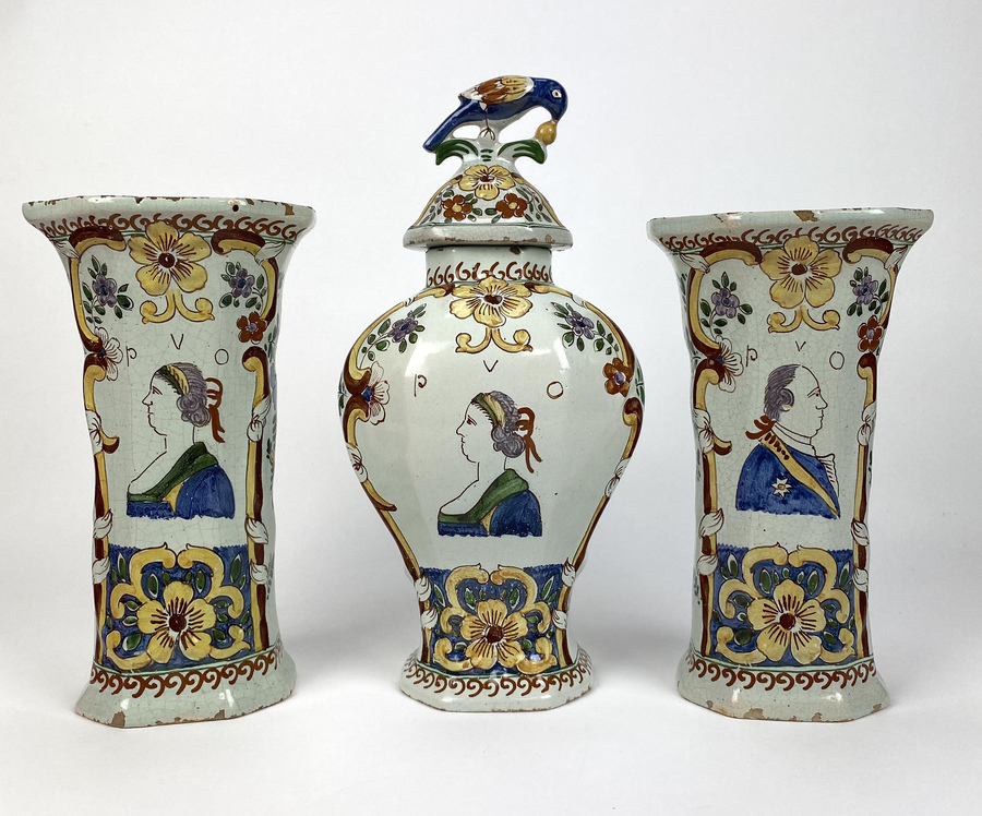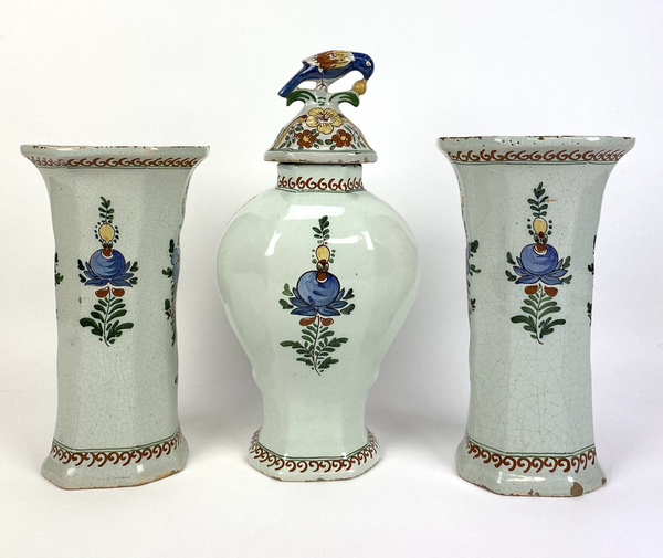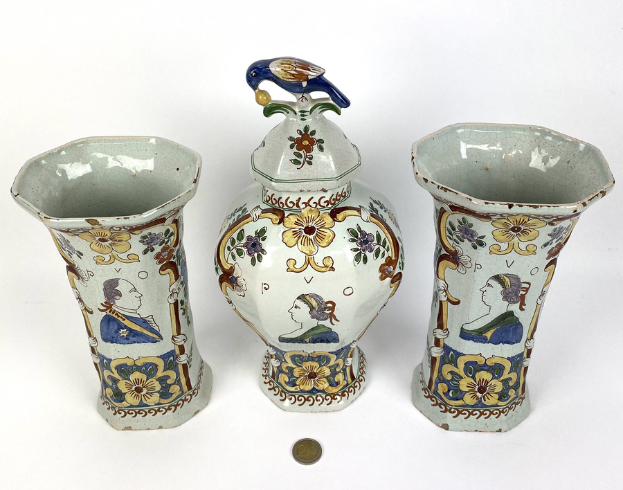Driedelig polychroom kaststel gemerkt de Klaauw, 19e eeuw. |