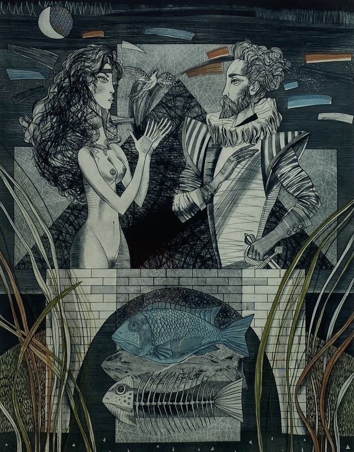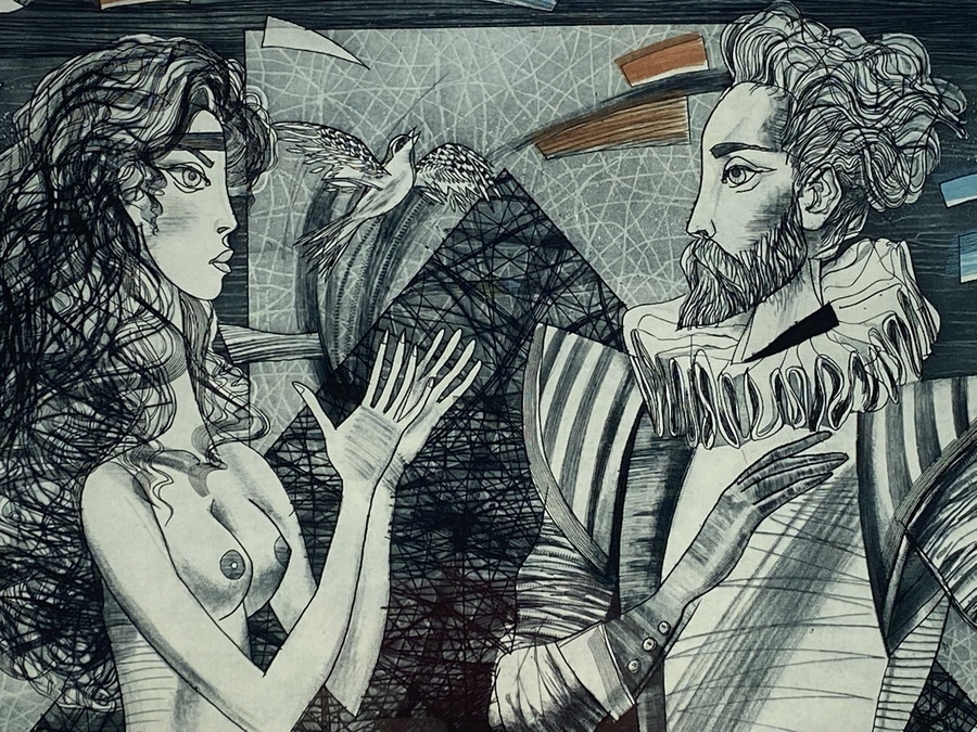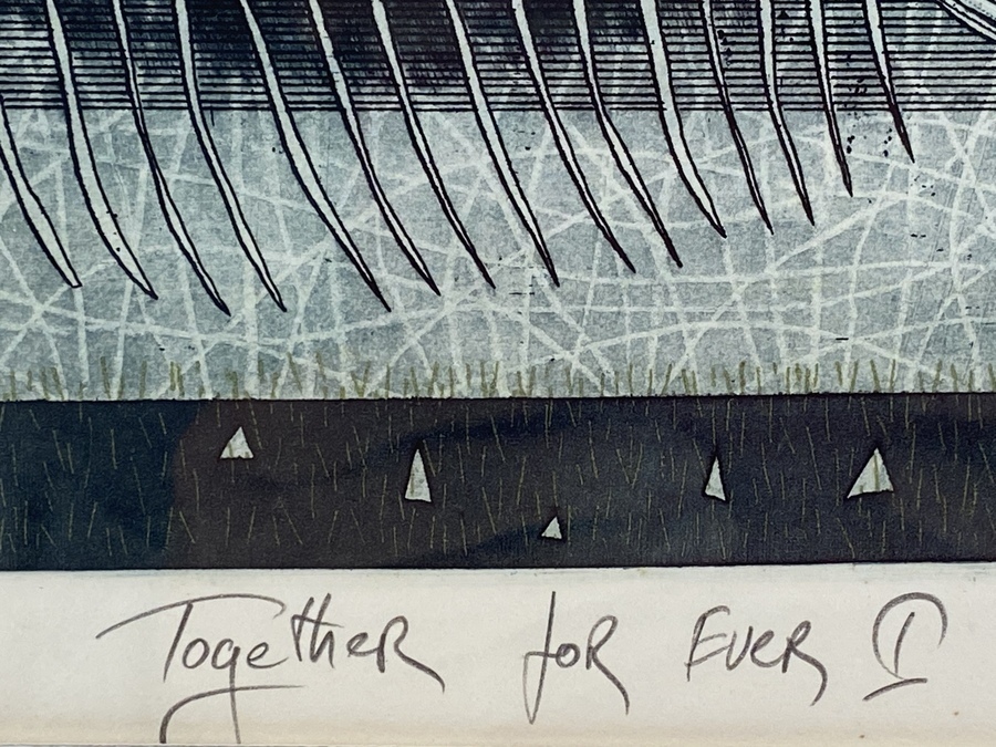 Litho, Miro Kenarov (Bulgarije) uit 1993. Titel “Together for ever II” nummer 27 van 100, met potlood gesigneerd en gedateerd. |