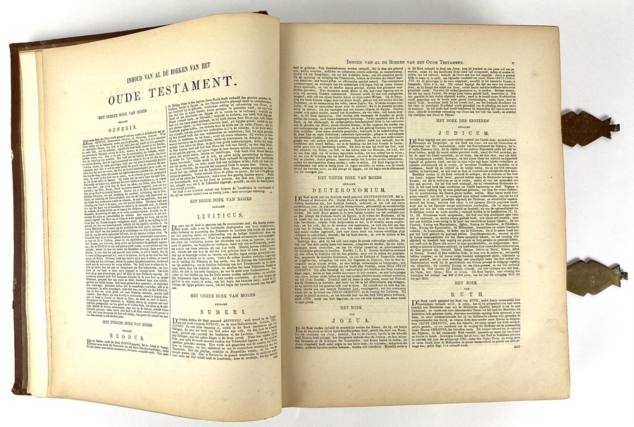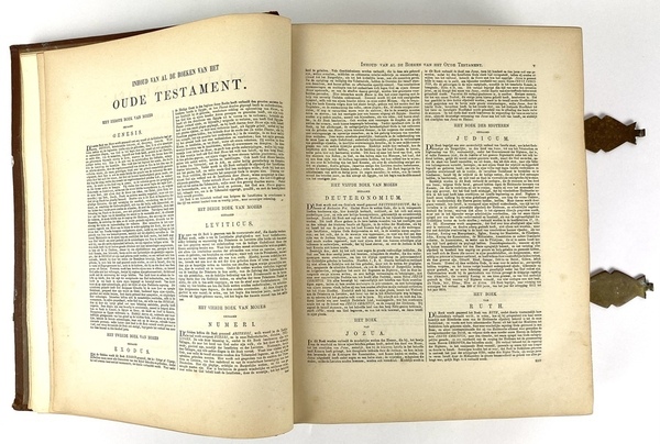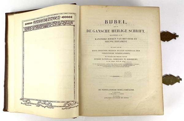 Bijbel, dat is De Gansche Heilige Schrift, bevattende al de Kanonijke Boeken van het Oude en Nieuwe Testament op last van de Hoog-Mogende Heeren Staten Generaal der Vereenigde Nederlanden en volgens het besluit van de Synode Nationaal, gehouden te Dordrecht, in de jaren 1618 en 1619. De Nederlandse Bijbel-Compagnie Amsterdam, J. Brandt & Zoon, Haarlem, Johannes Enschede en Zonen, 1867.