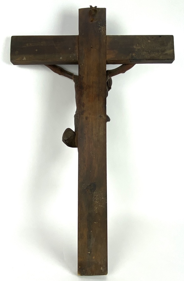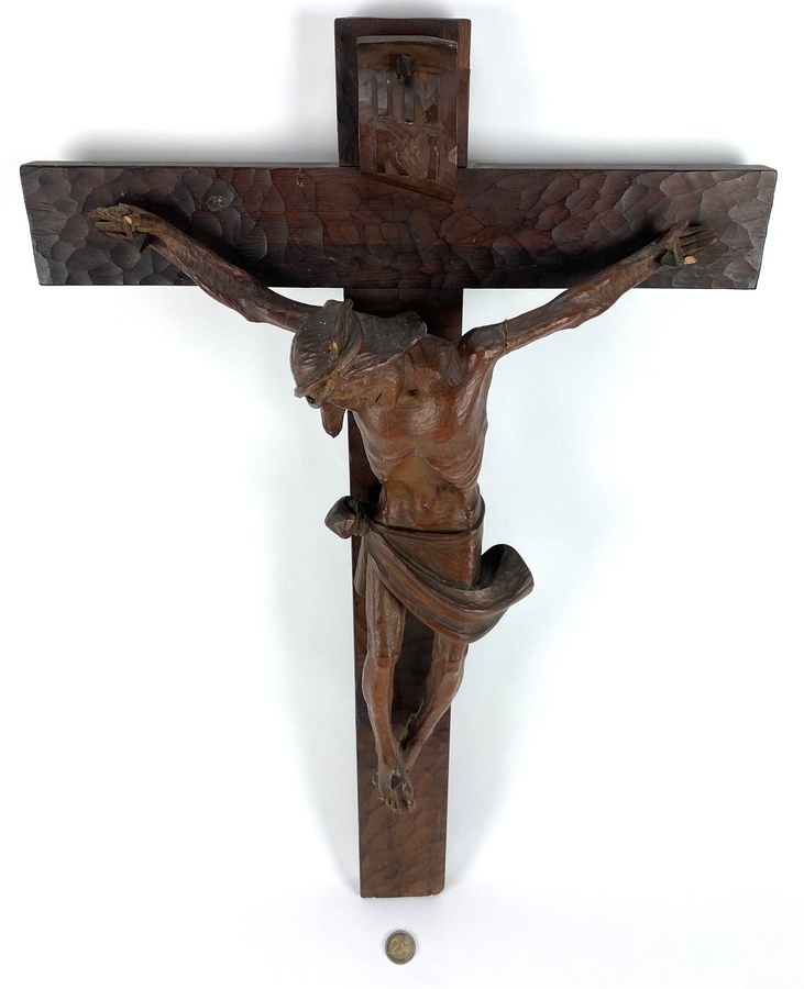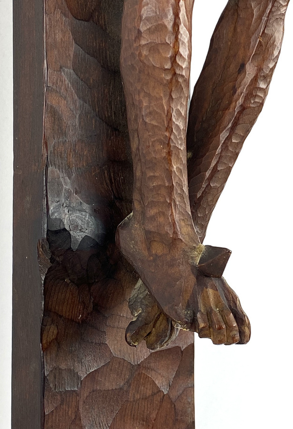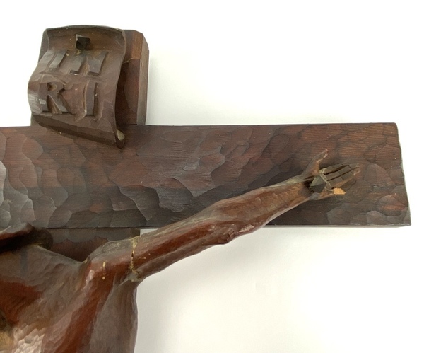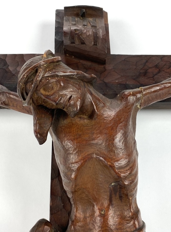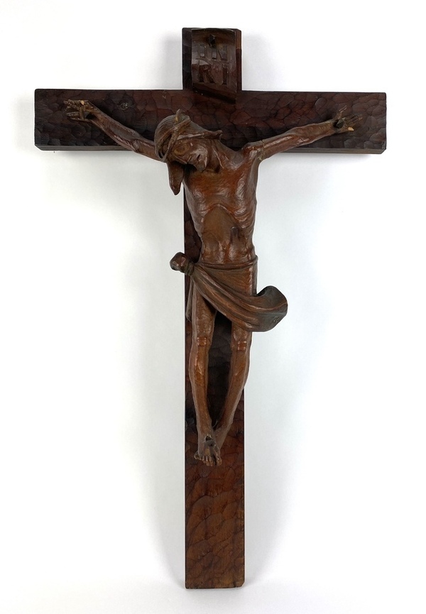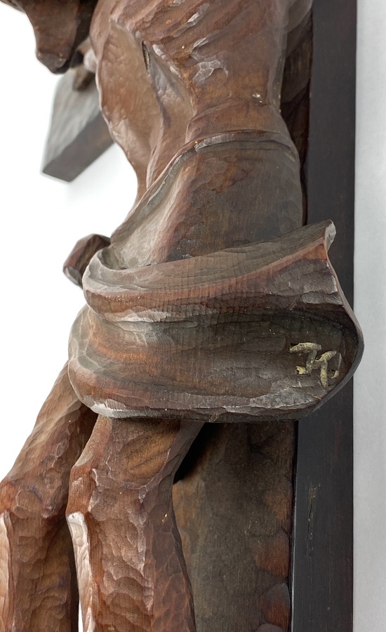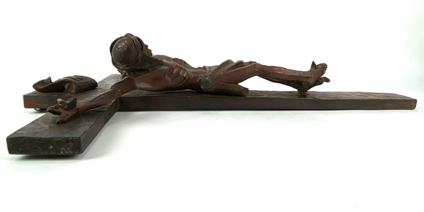 Houten gestoken crucifix, gesigneerd met monogram JK. Omstreeks 1910. |