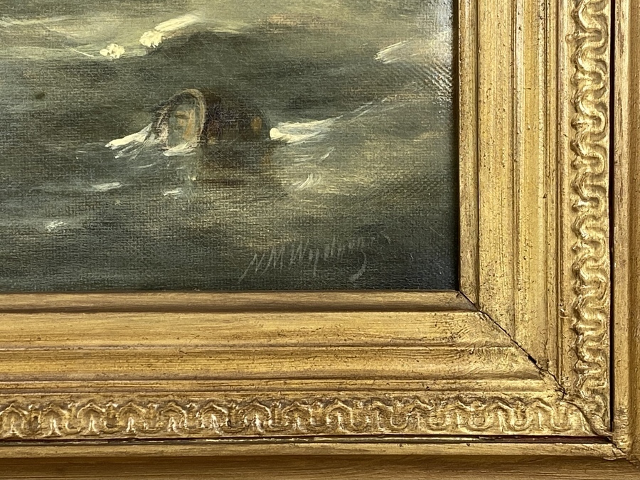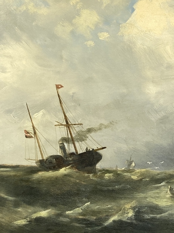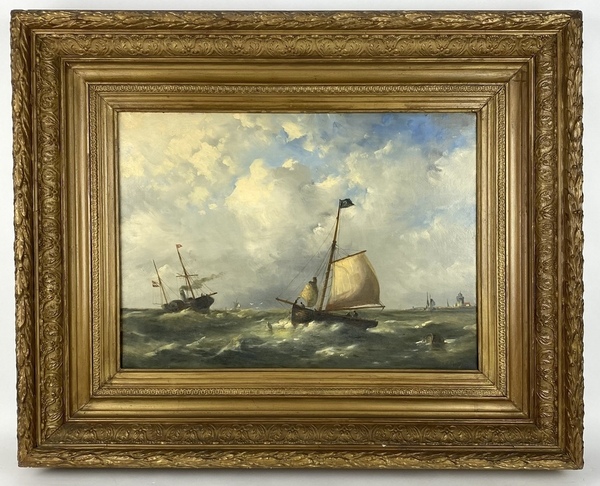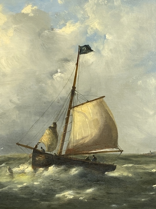 Schilderij, olieverf op doek, zeegezicht. Nicolaas Martinus Wijdoogen (1824- 1898). Rechtsonder gesigneerd, 19e eeuw. |