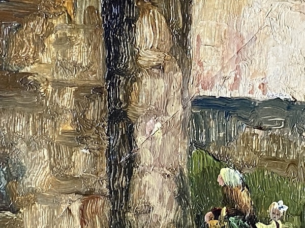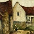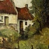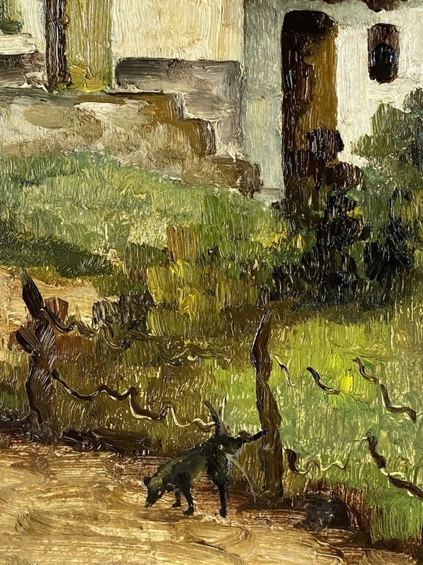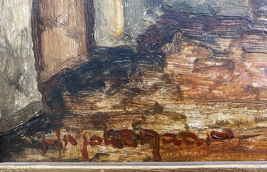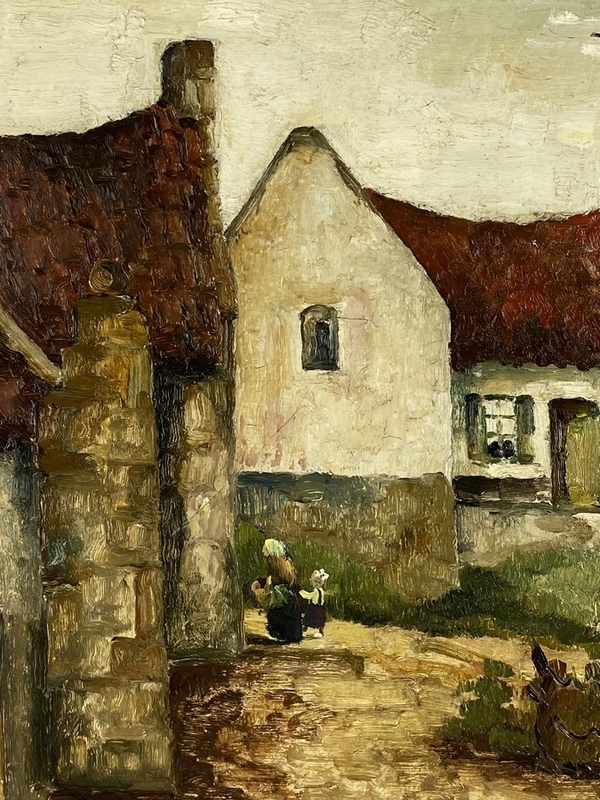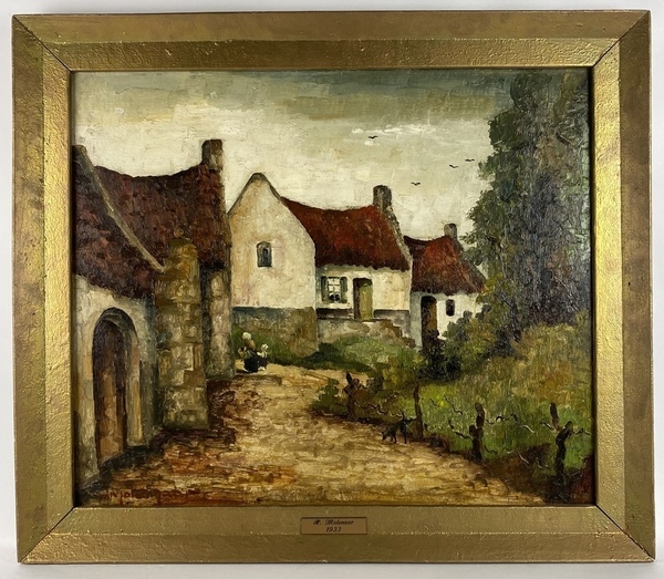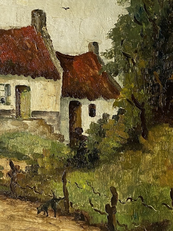 Schilderij, olieverf op paneel, dorpsgezicht. Henk Molenaar (1933-2019), linksonder gesigneerd. |