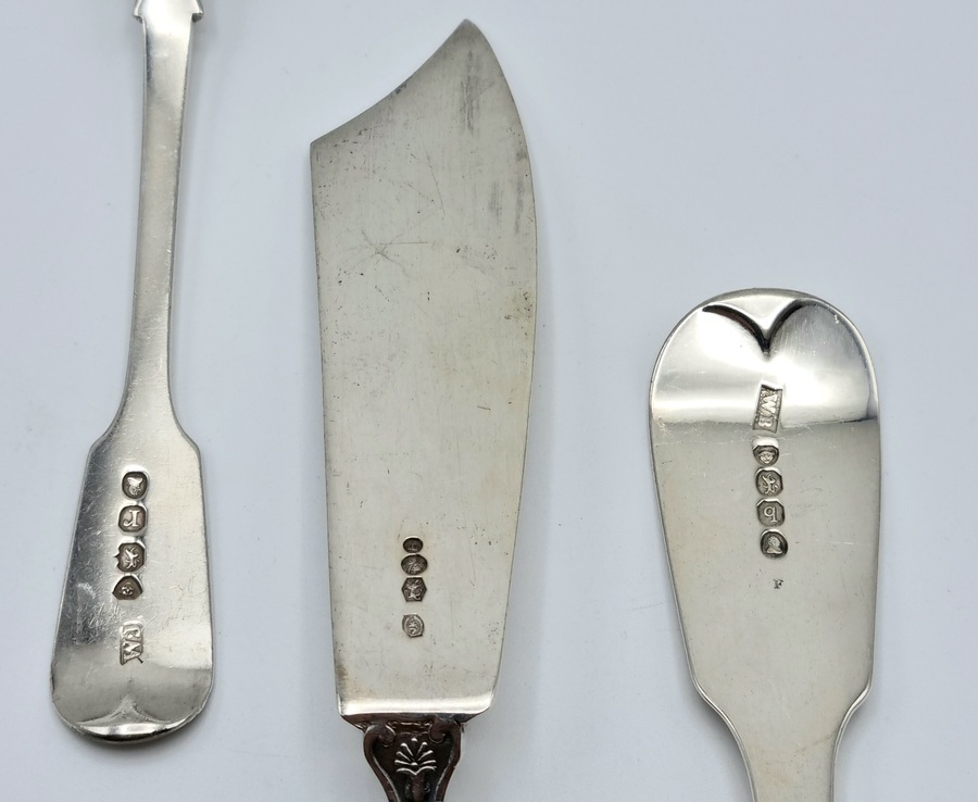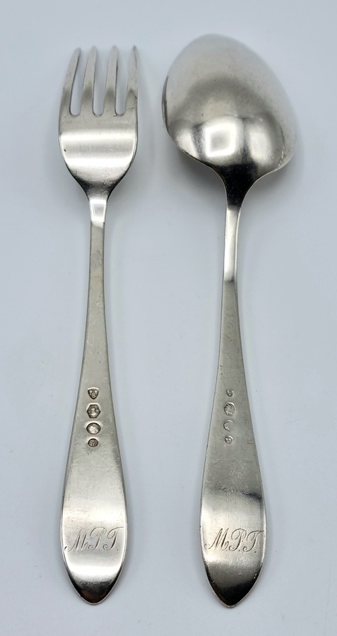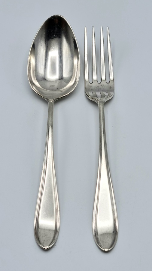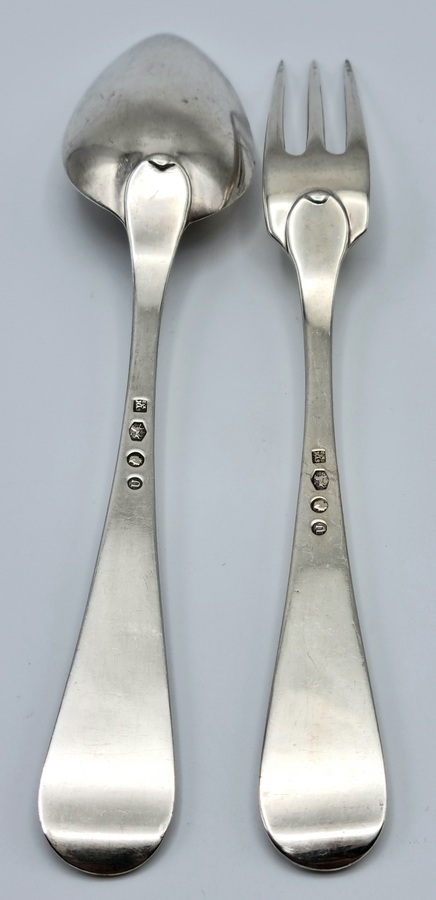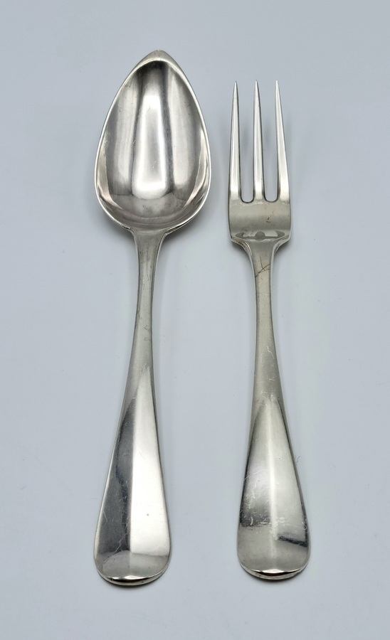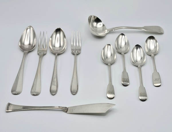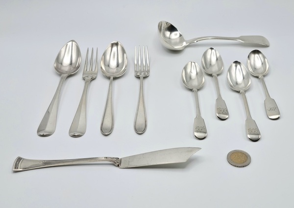 Zilveren bestek waaronder lepels en vorken, gemerkt. |