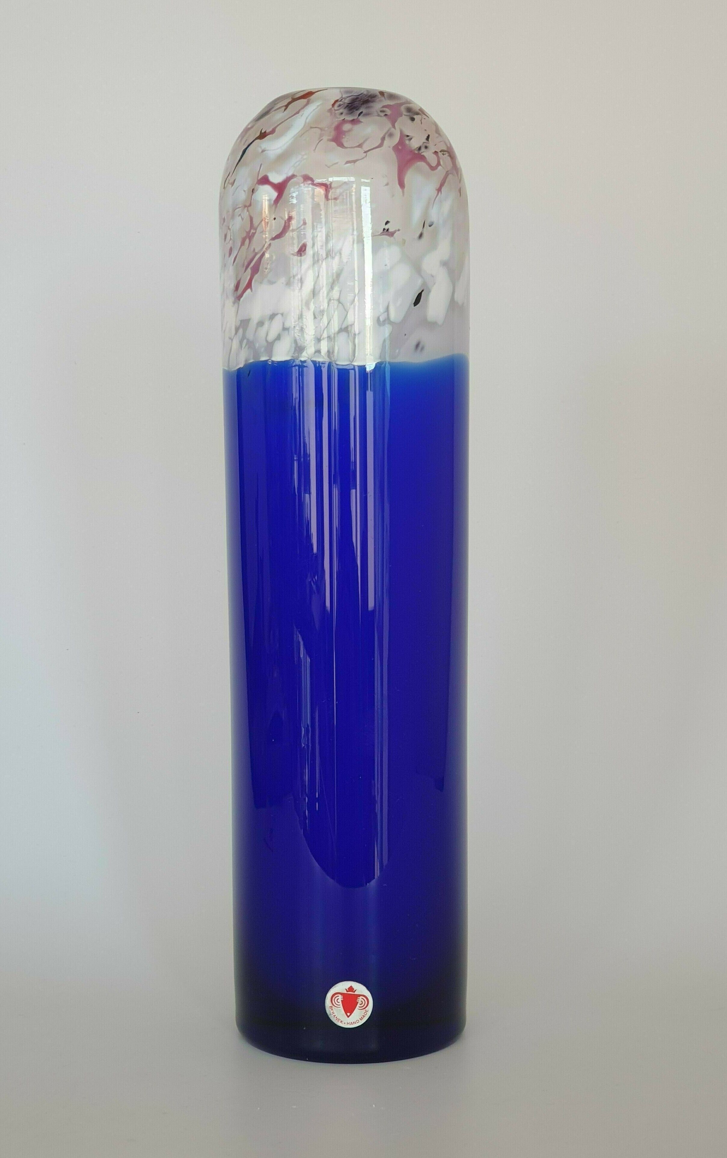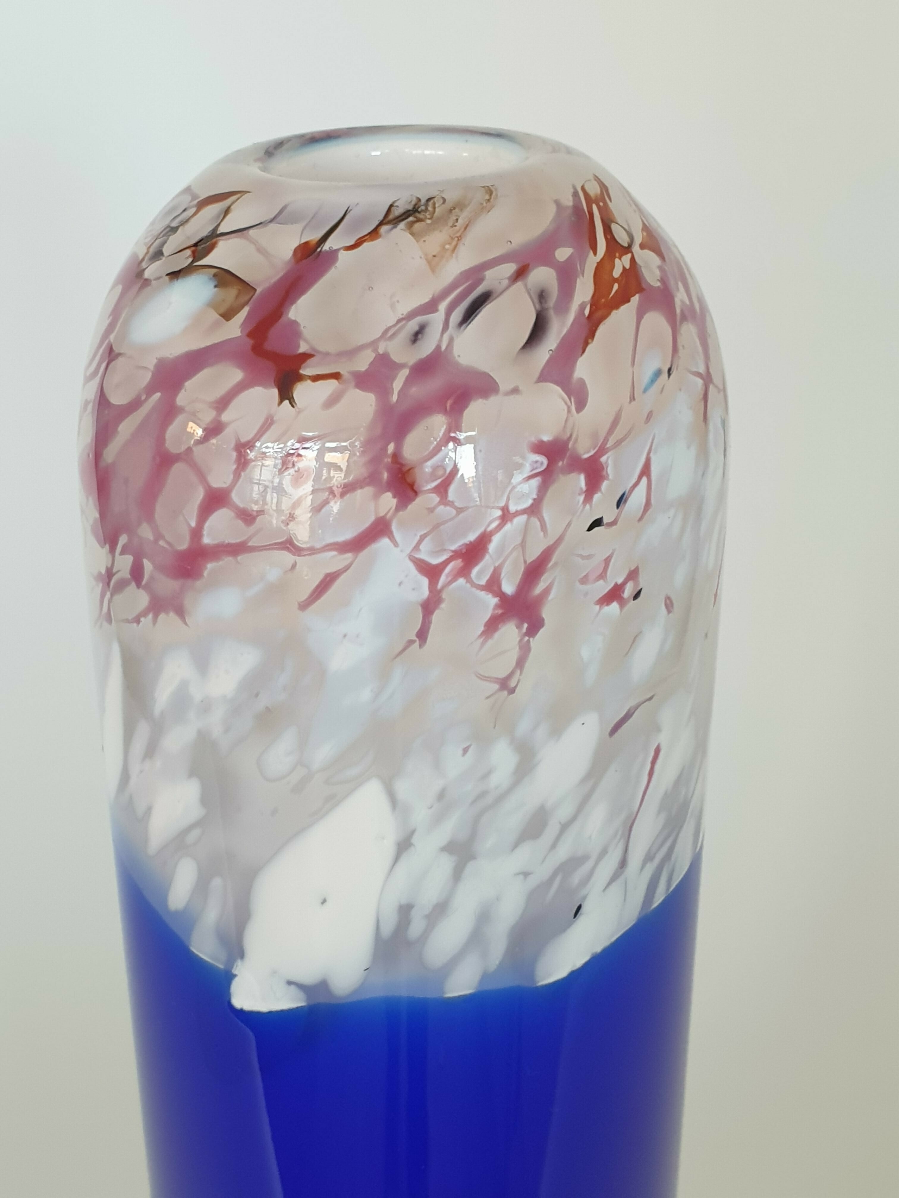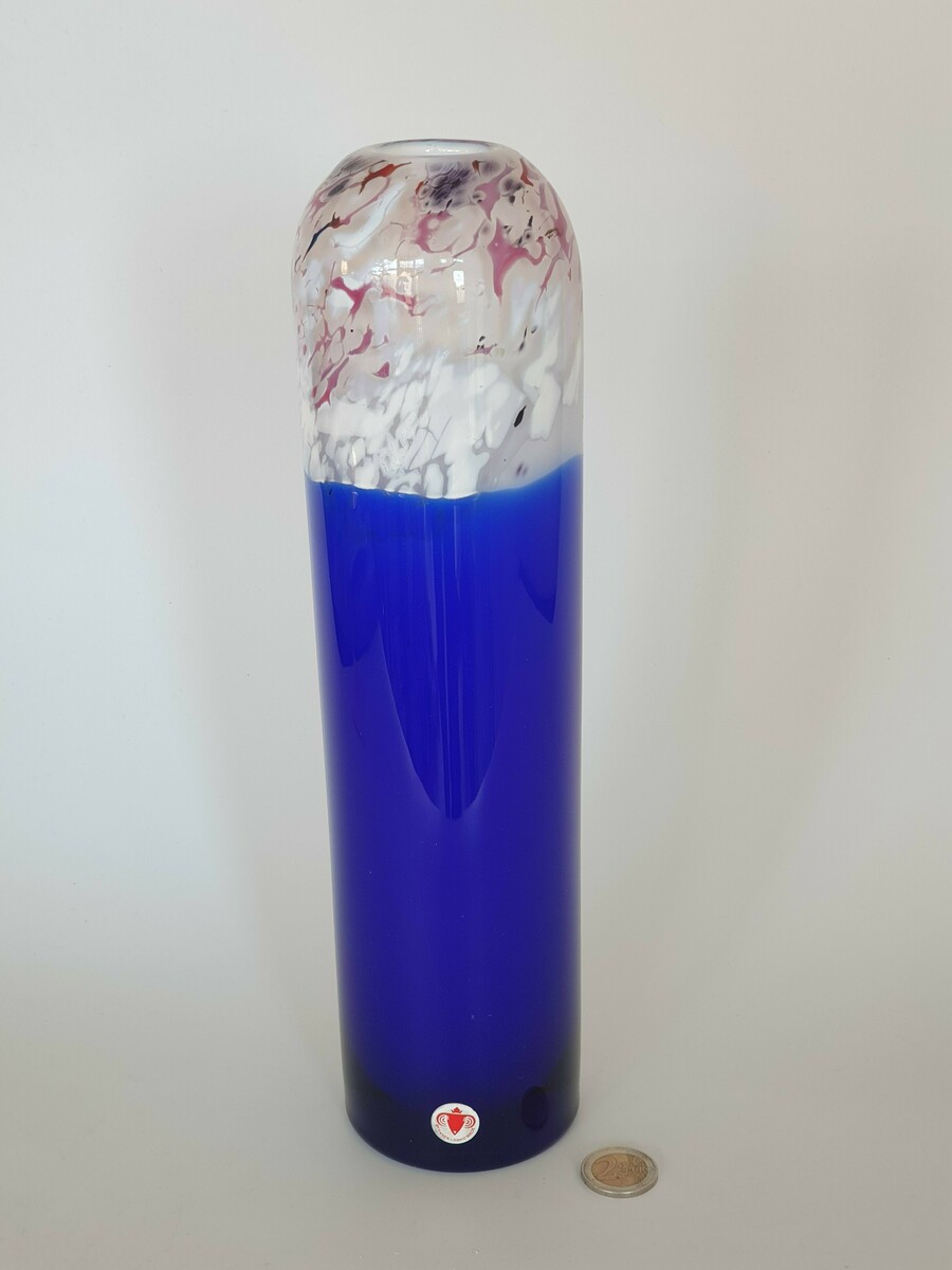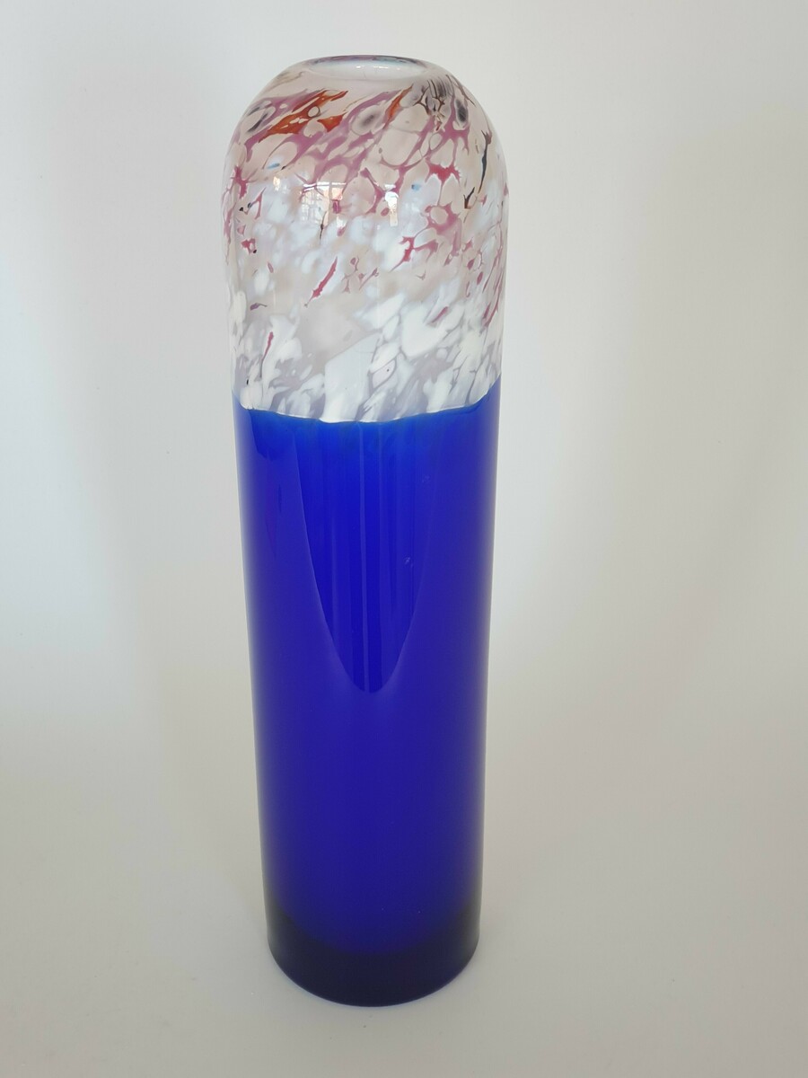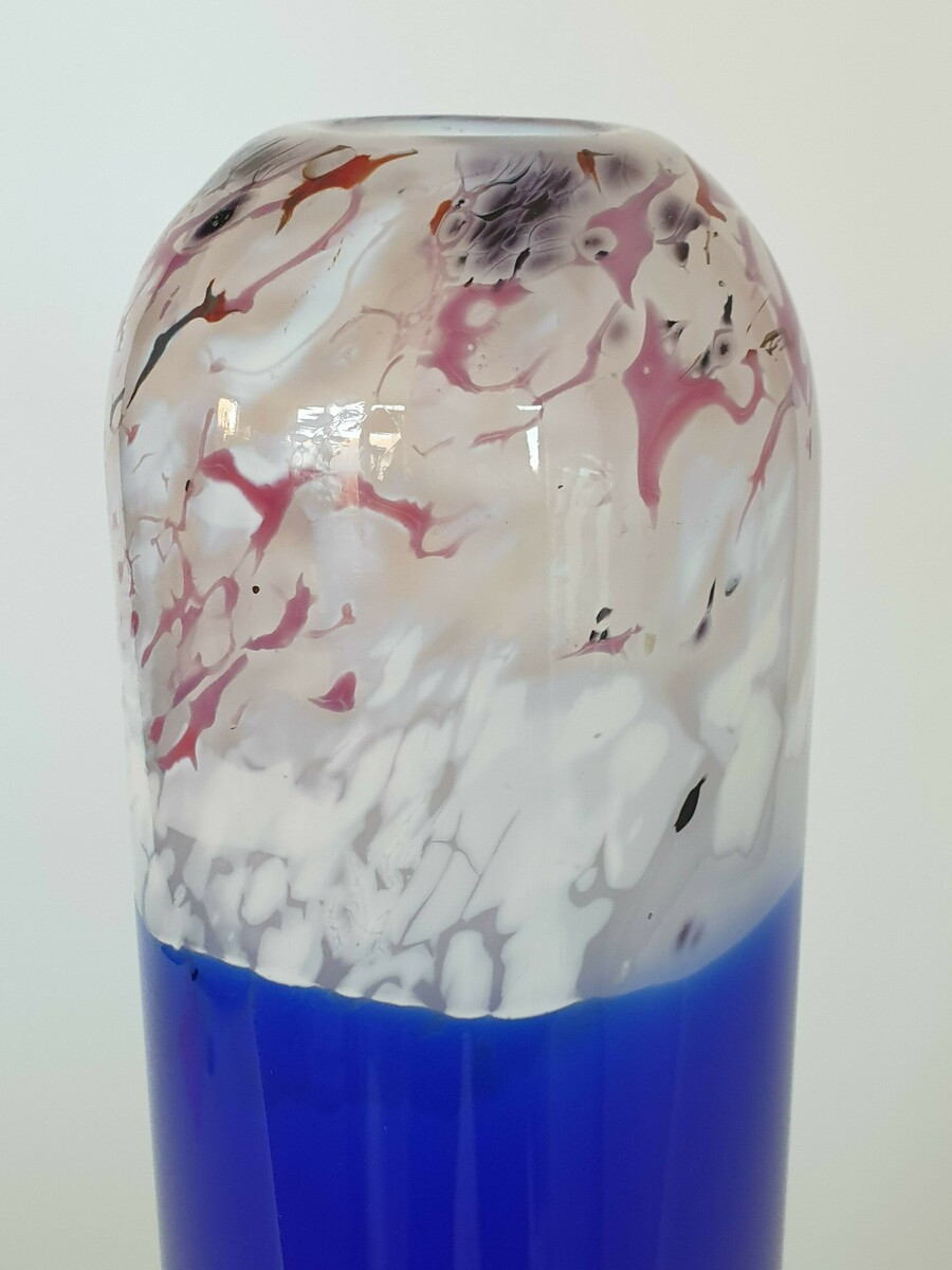 Glazen blauw wit/rode vaas, Beranek, handgemaakt. |