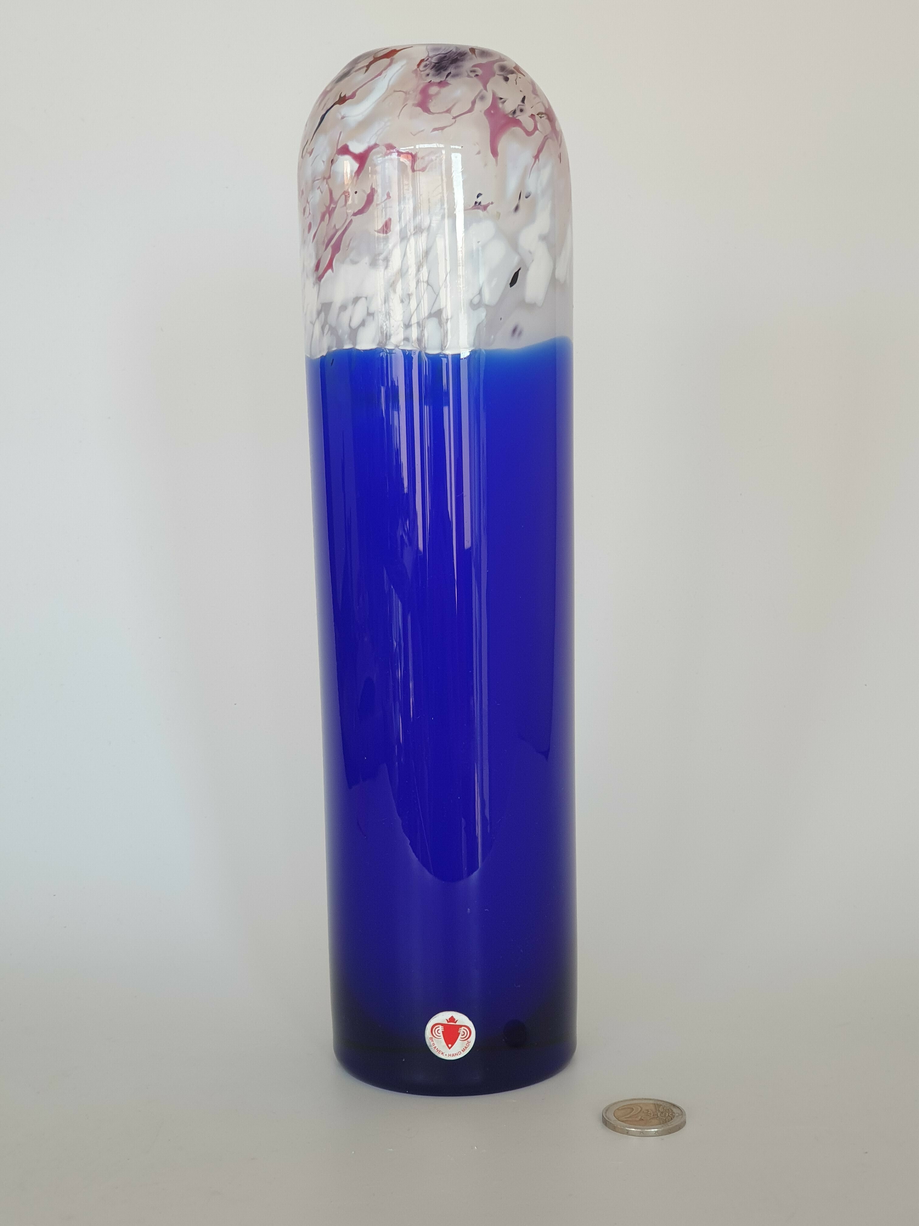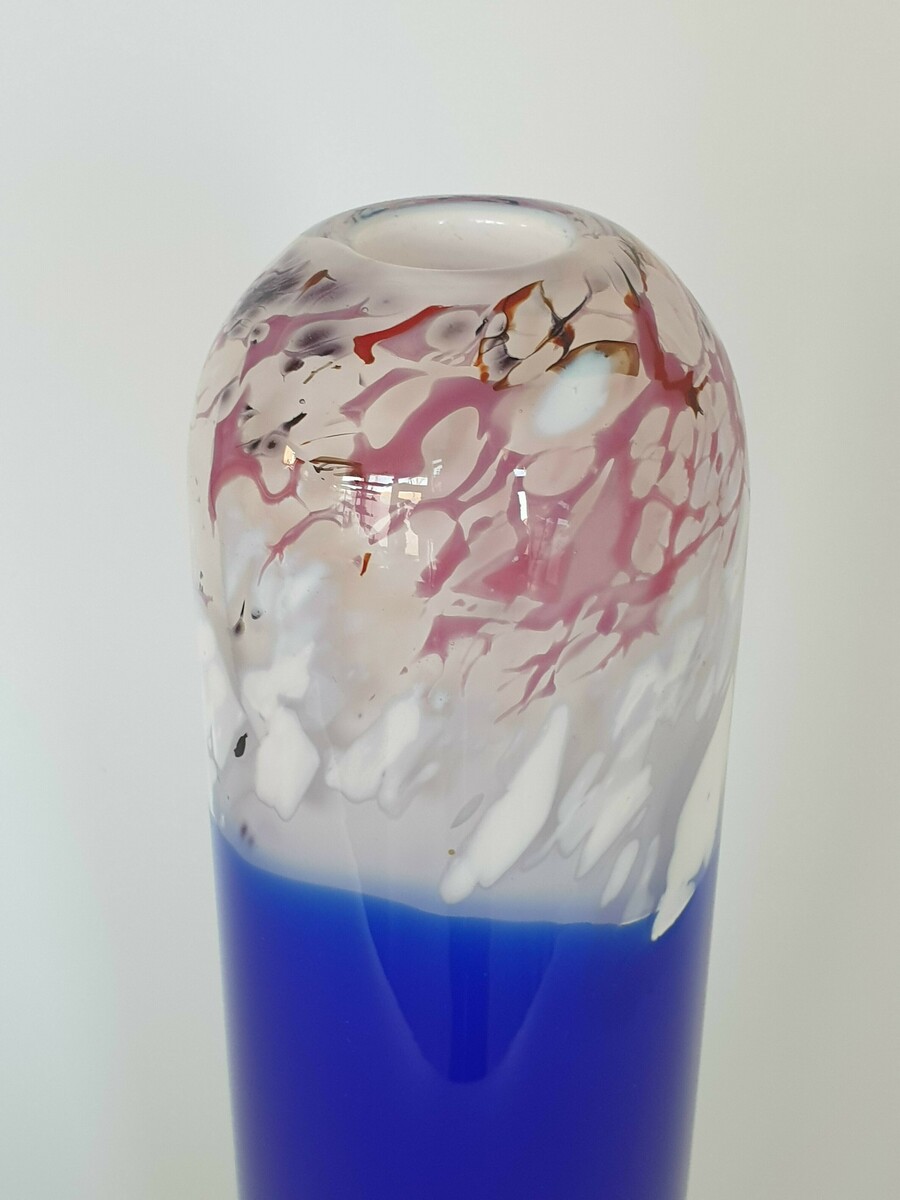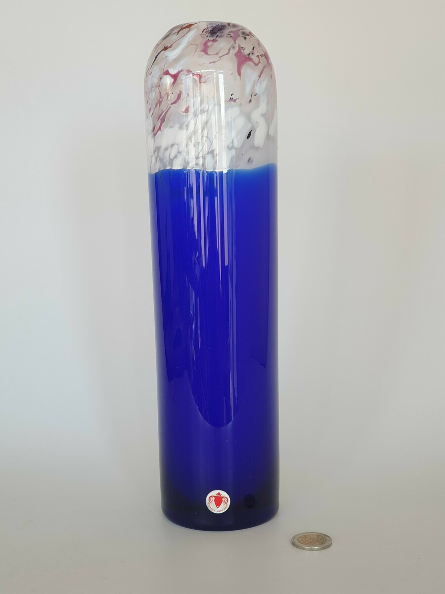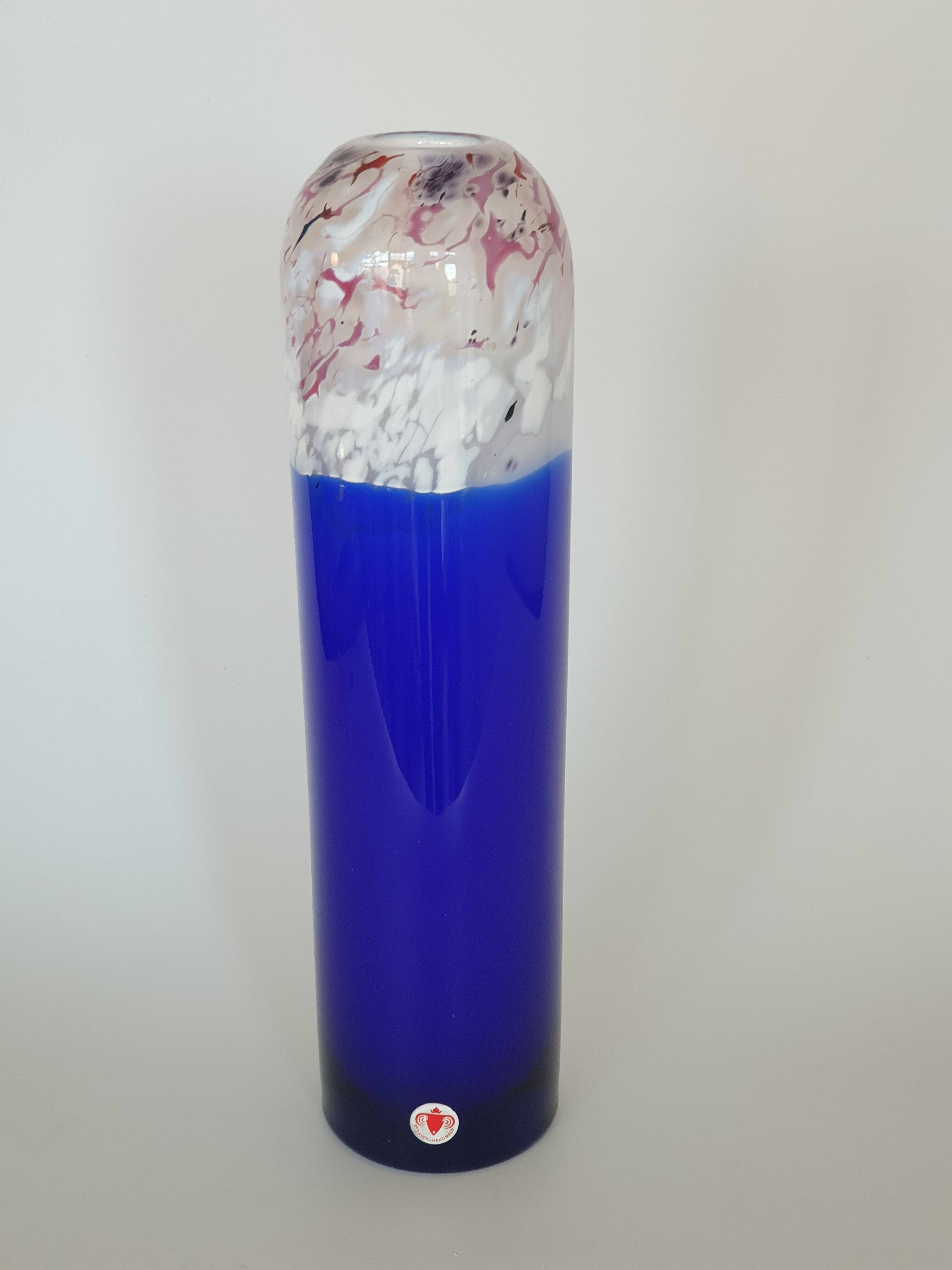 Glazen blauw wit/rode vaas, Beranek, handgemaakt. |