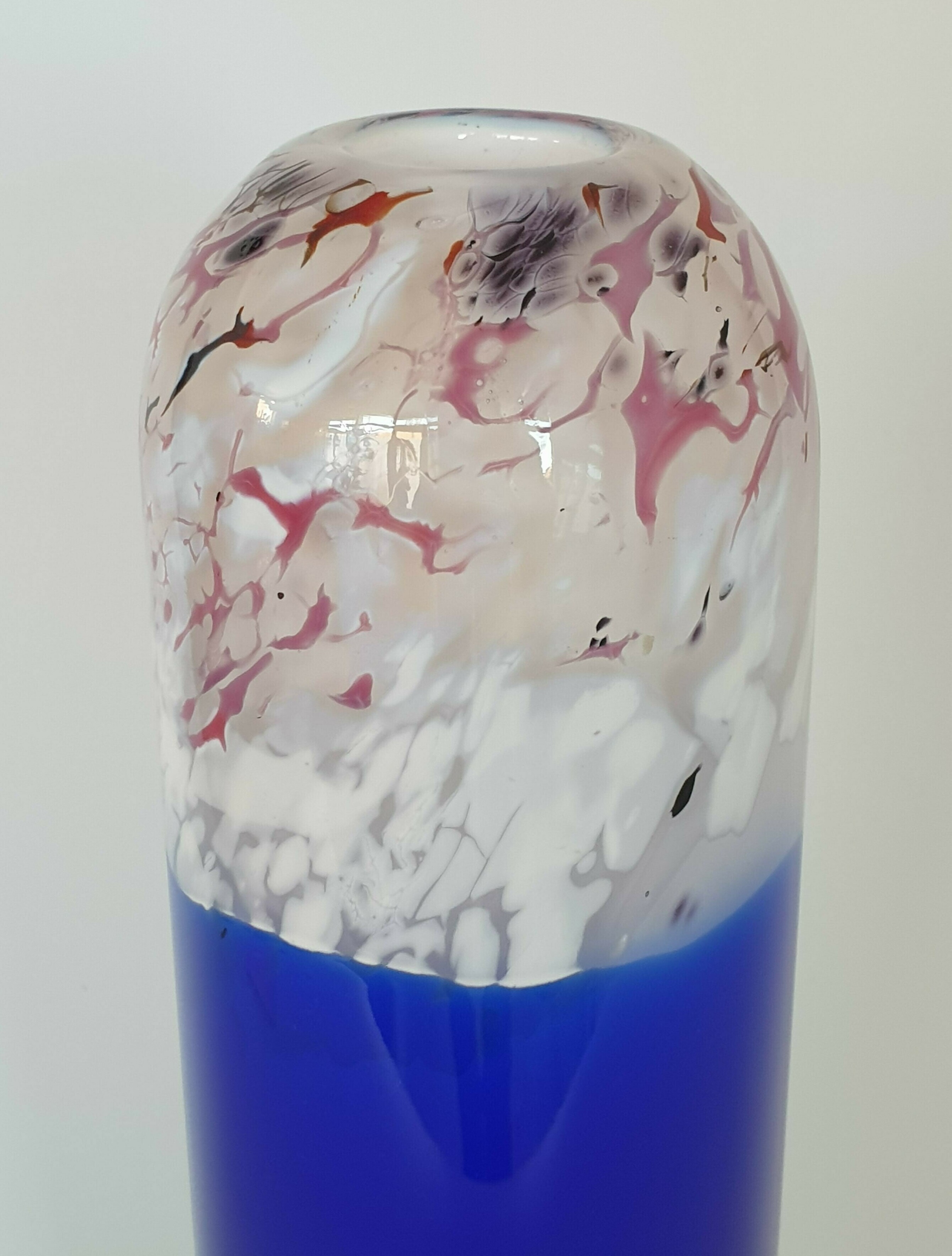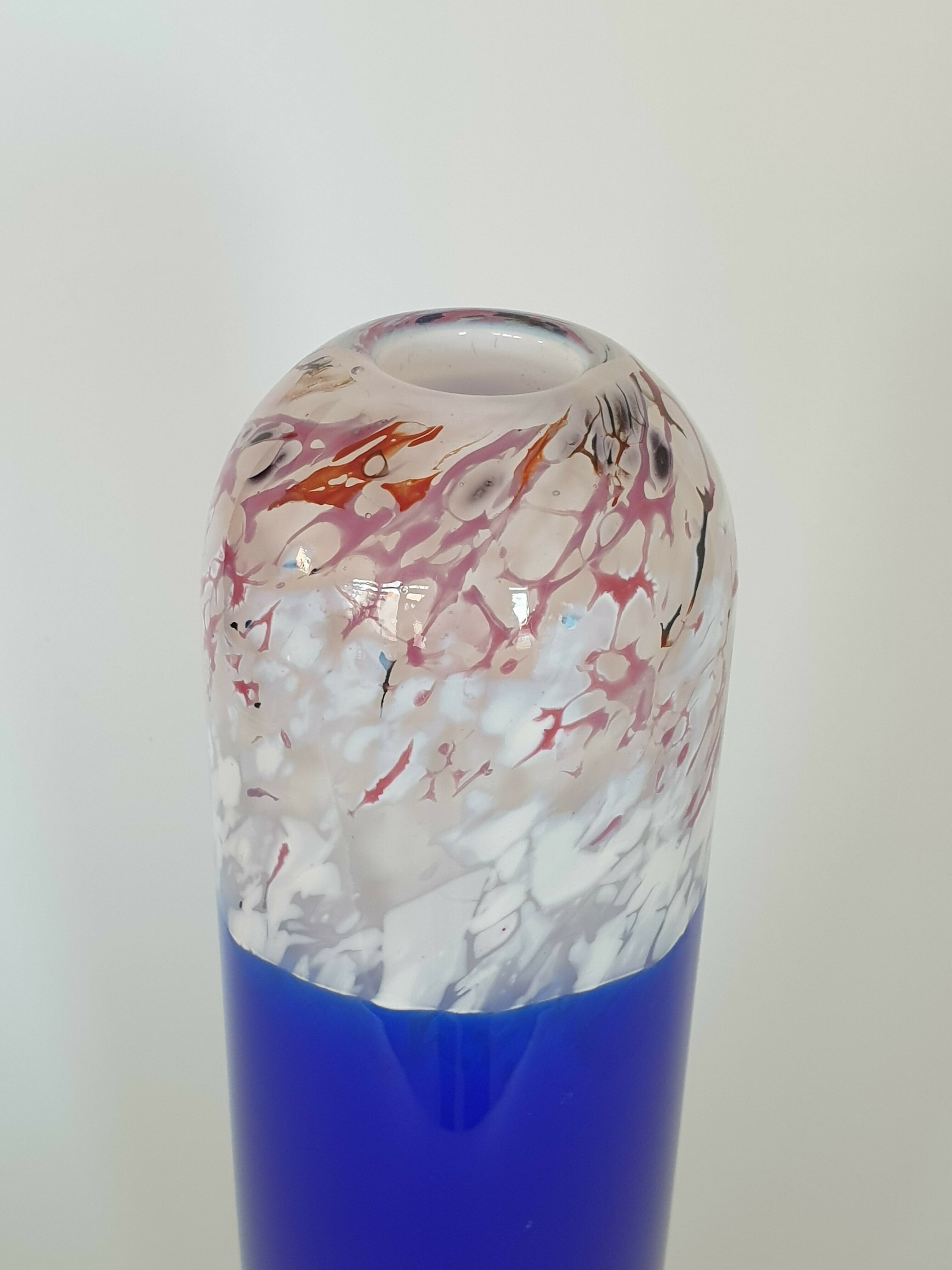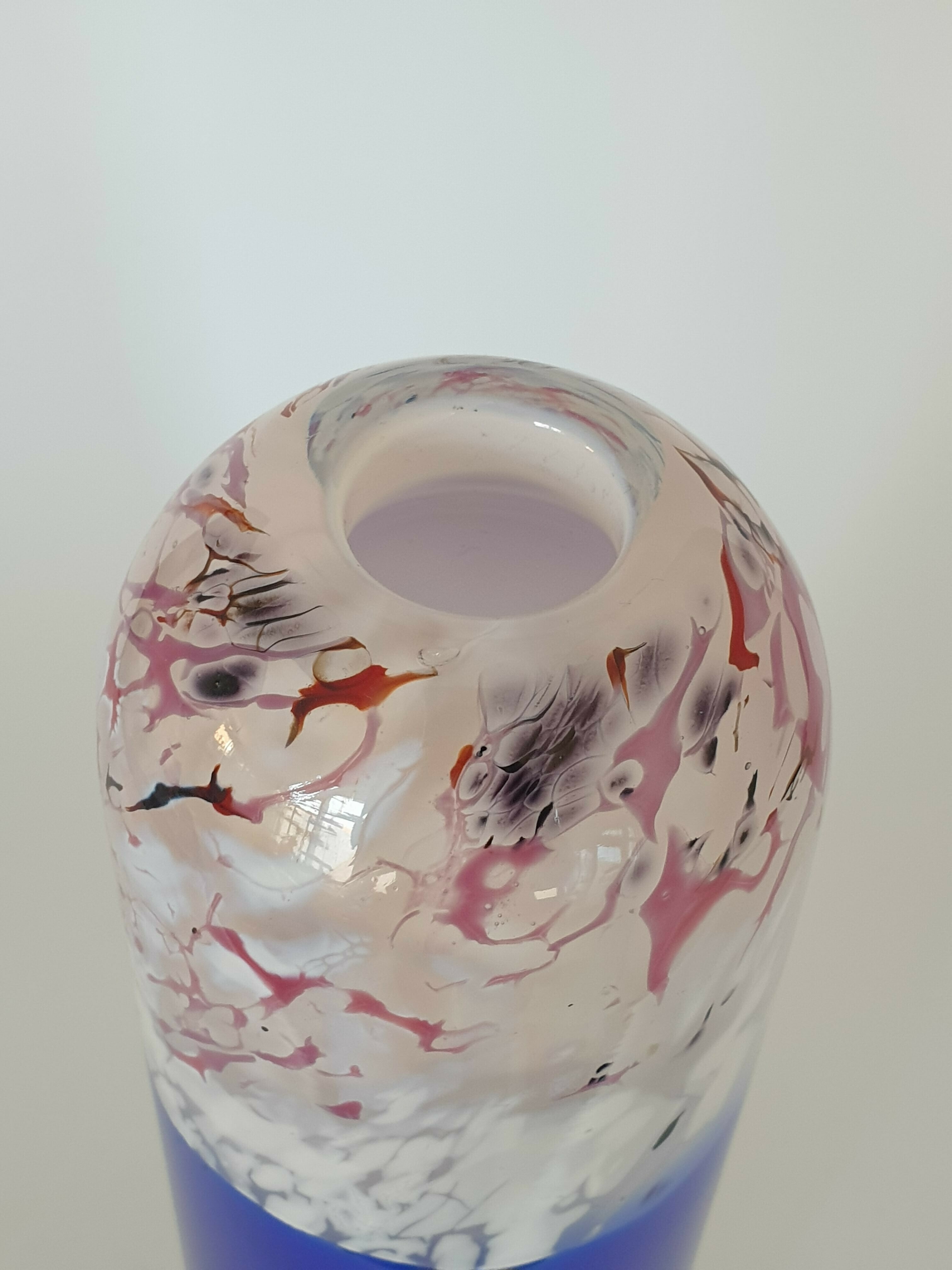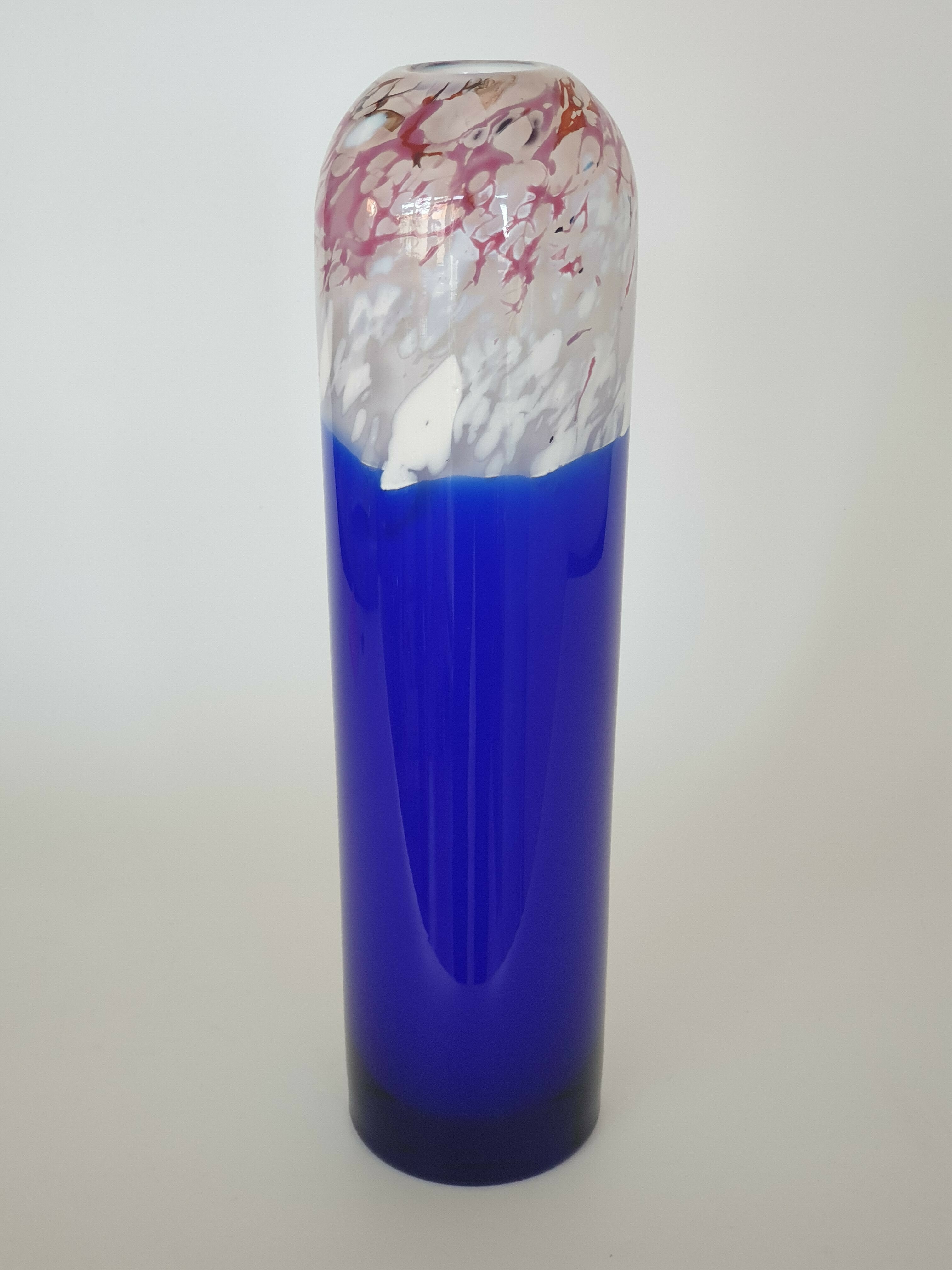 Glazen blauw wit/rode vaas, Beranek, handgemaakt. |
