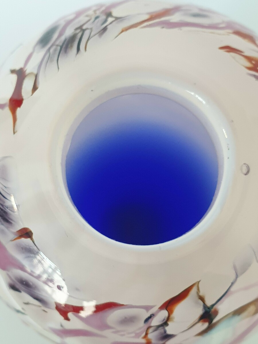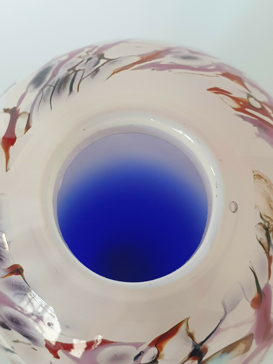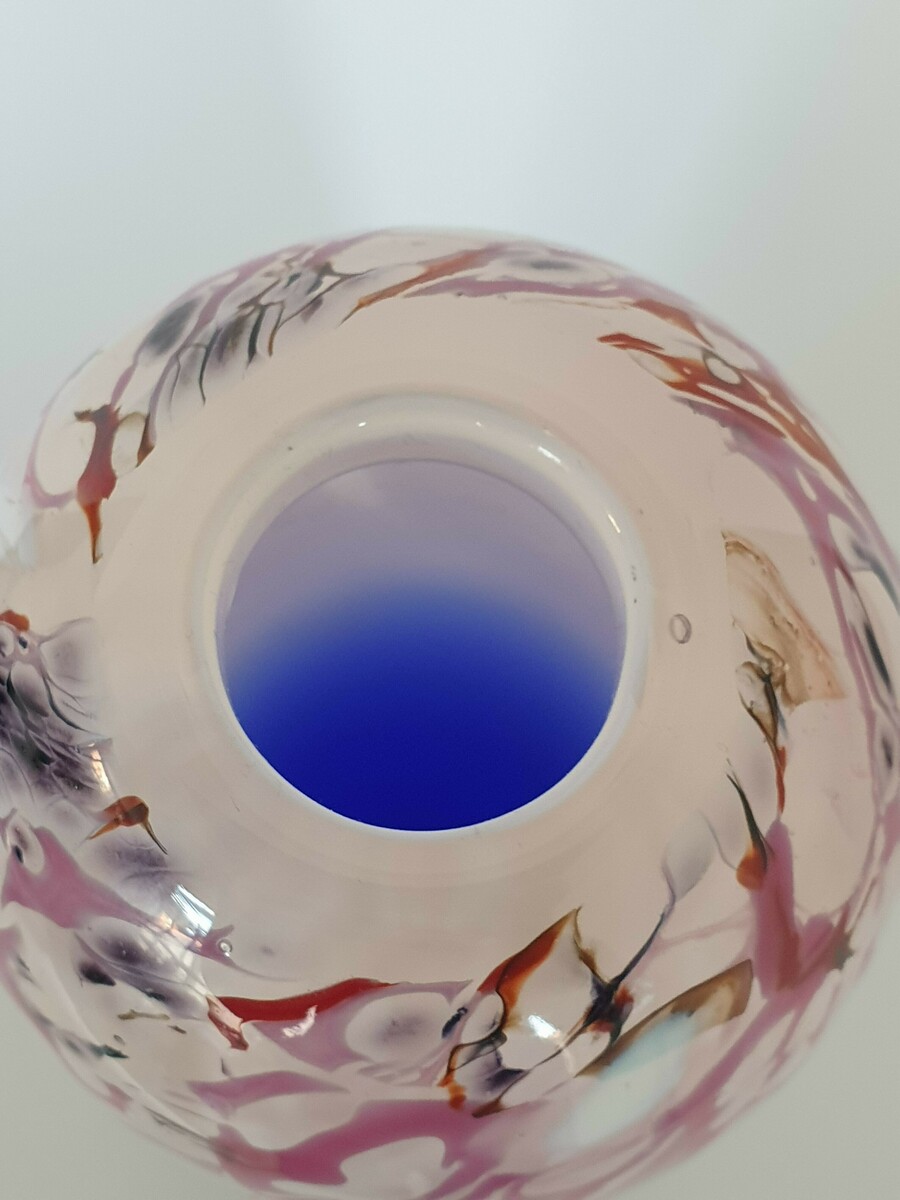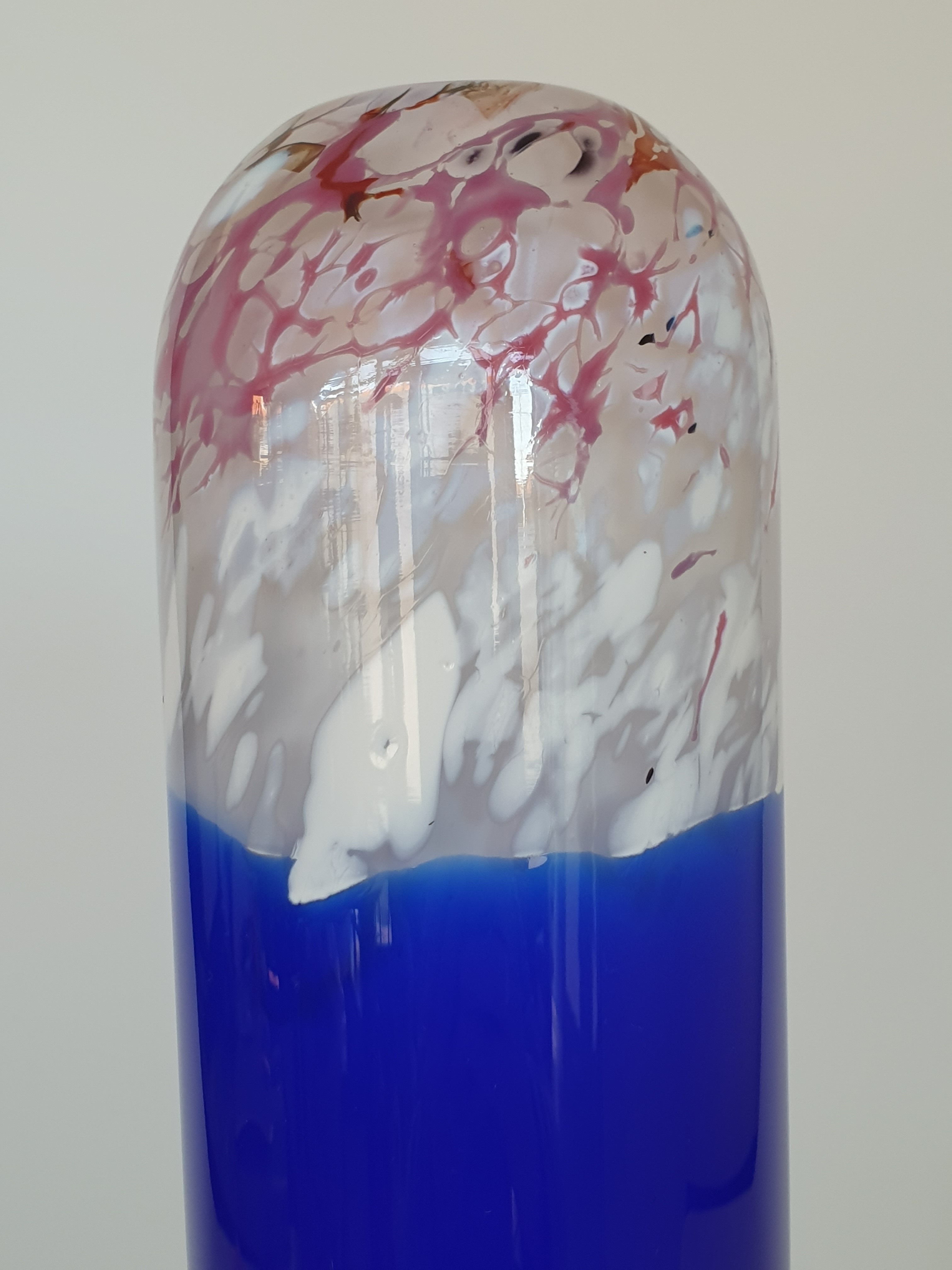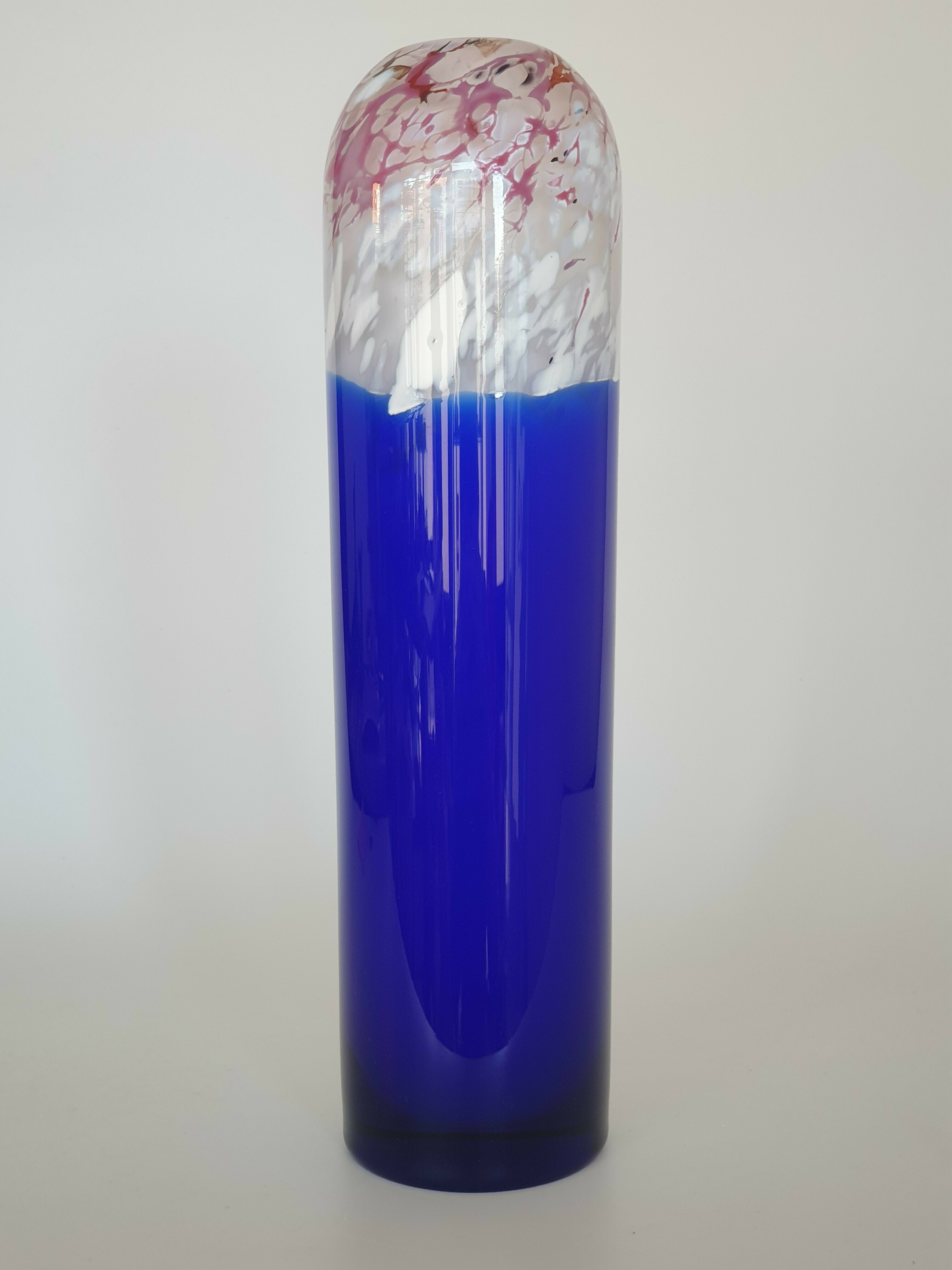 Glazen blauw wit/rode vaas, Beranek, handgemaakt. |
