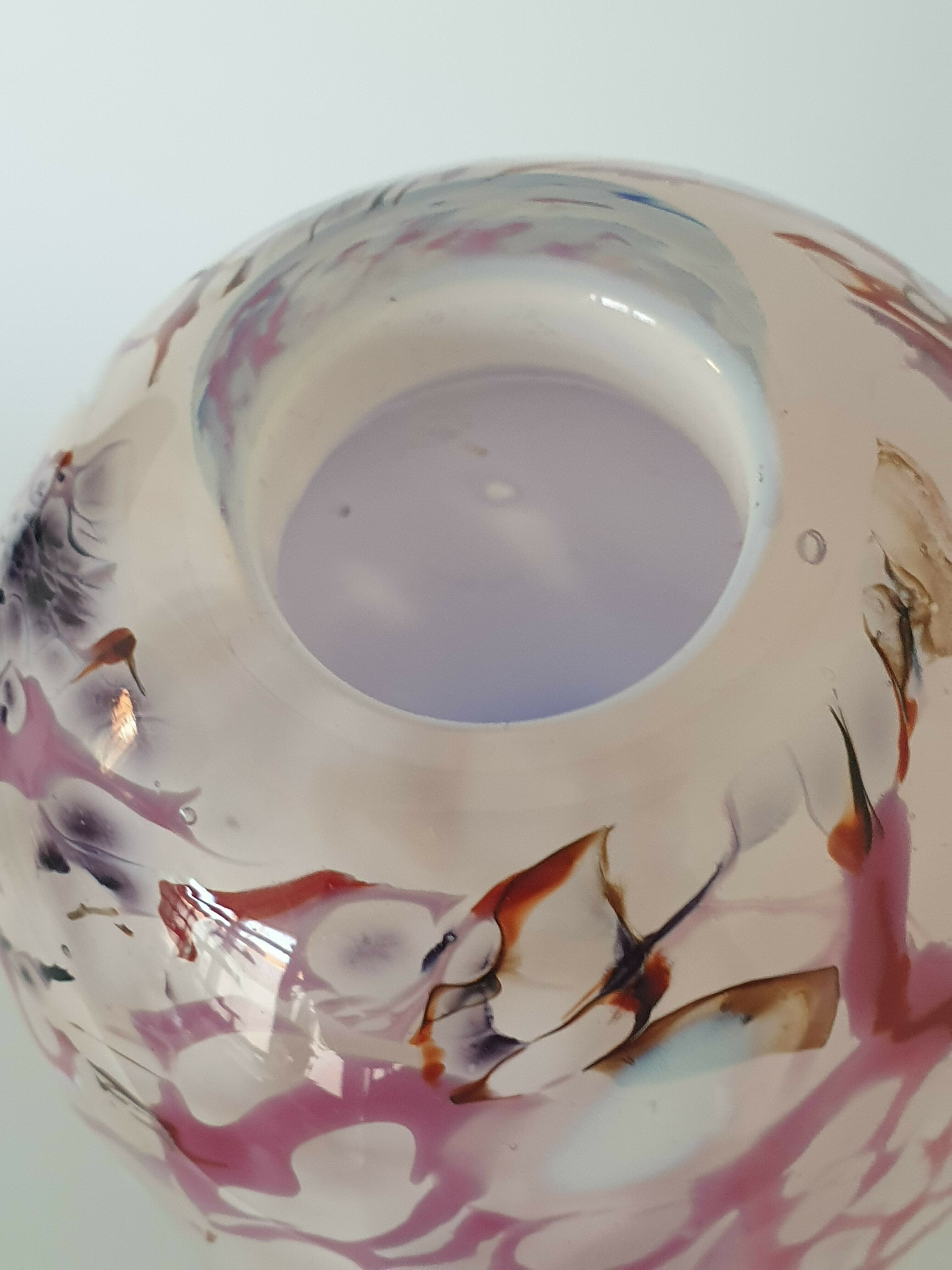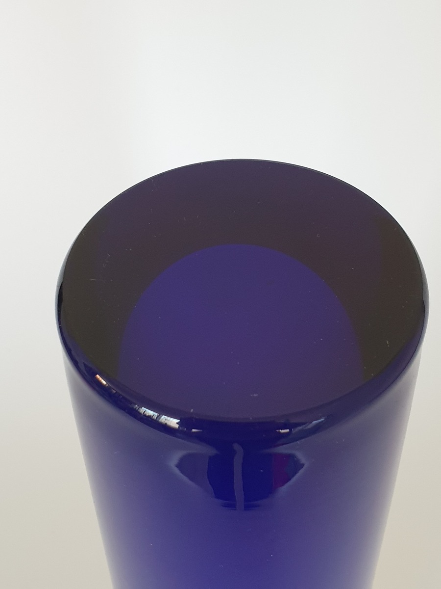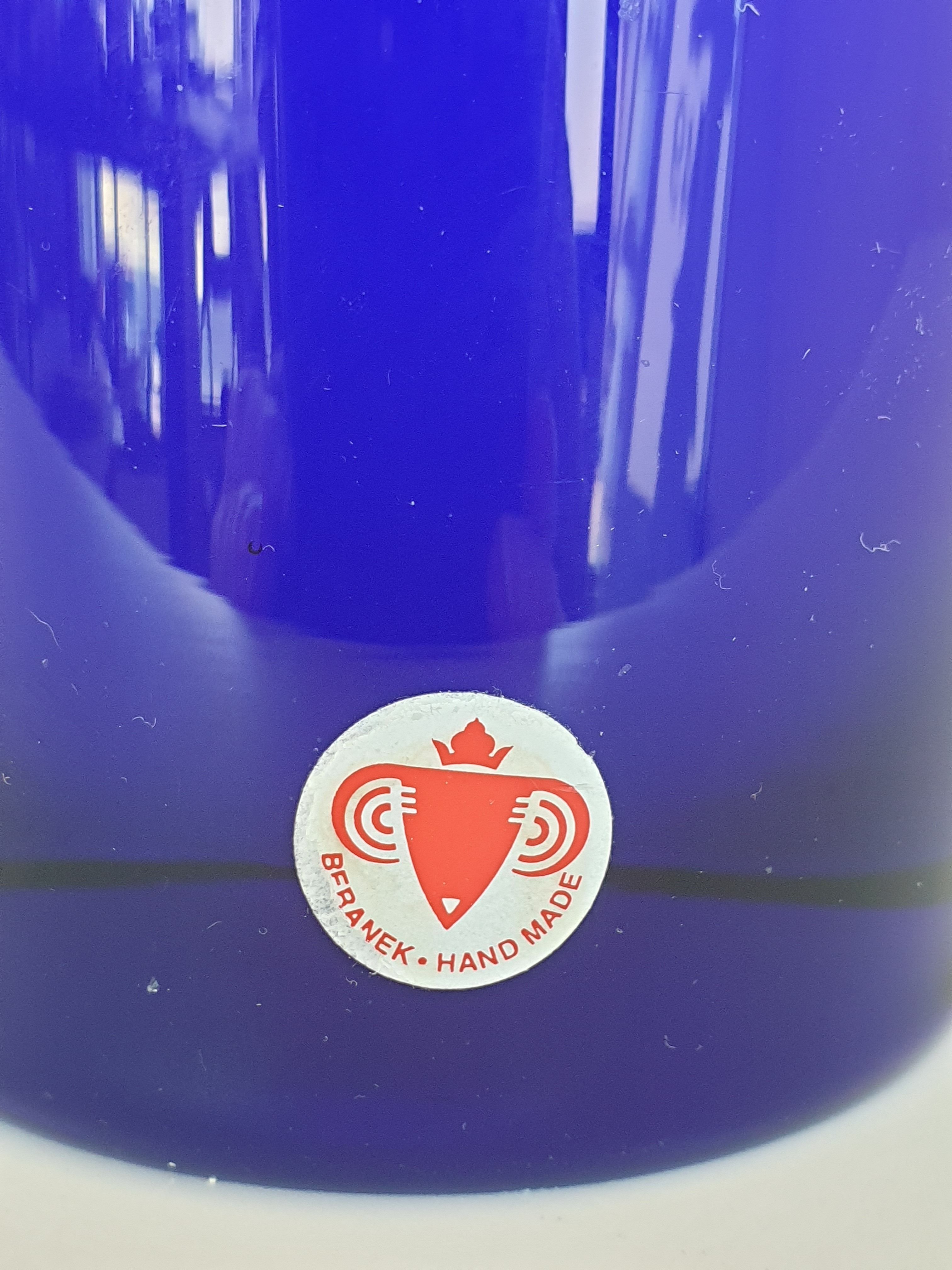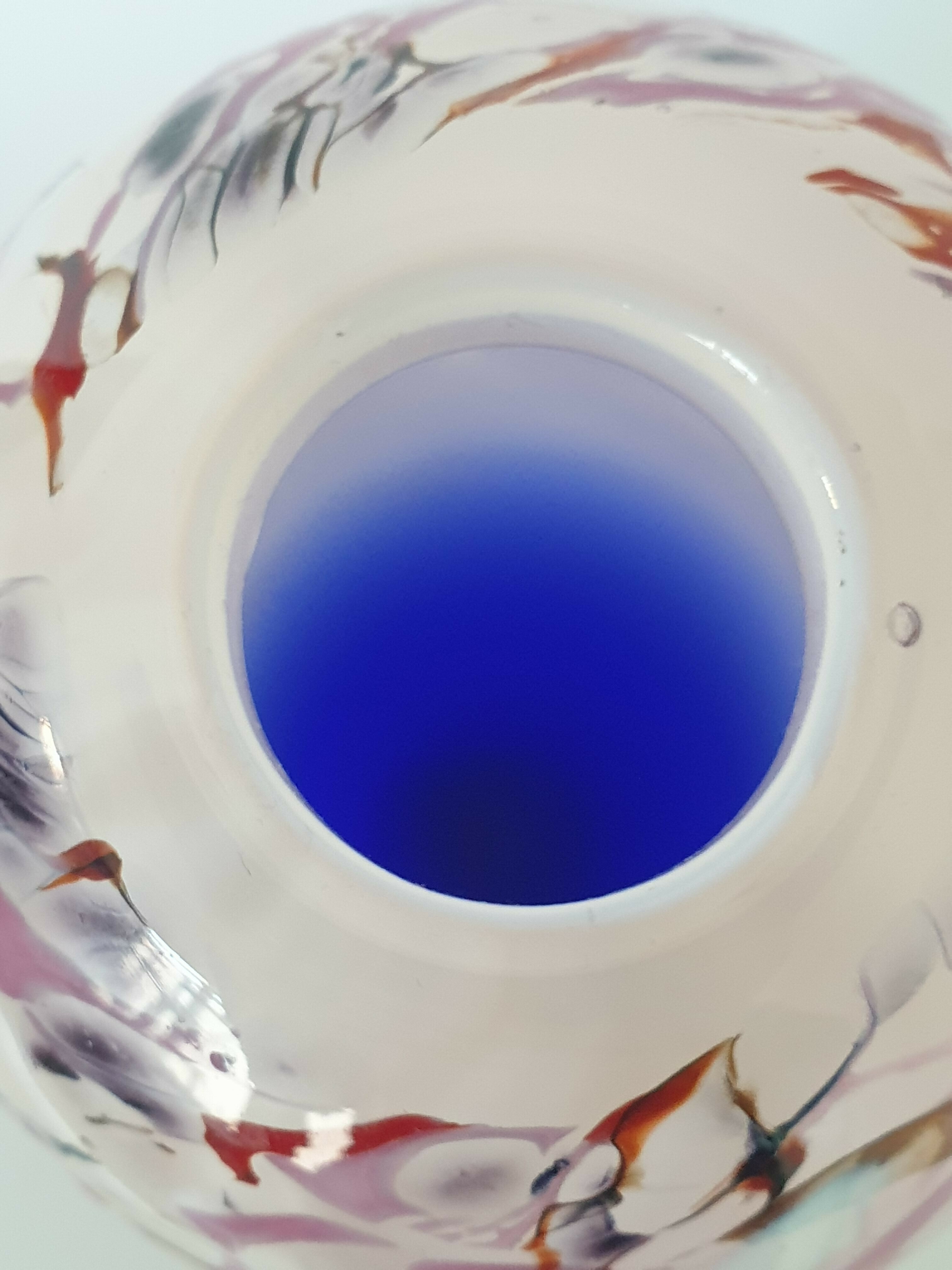 Glazen blauw wit/rode vaas, Beranek, handgemaakt. |