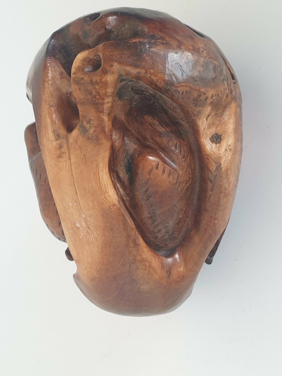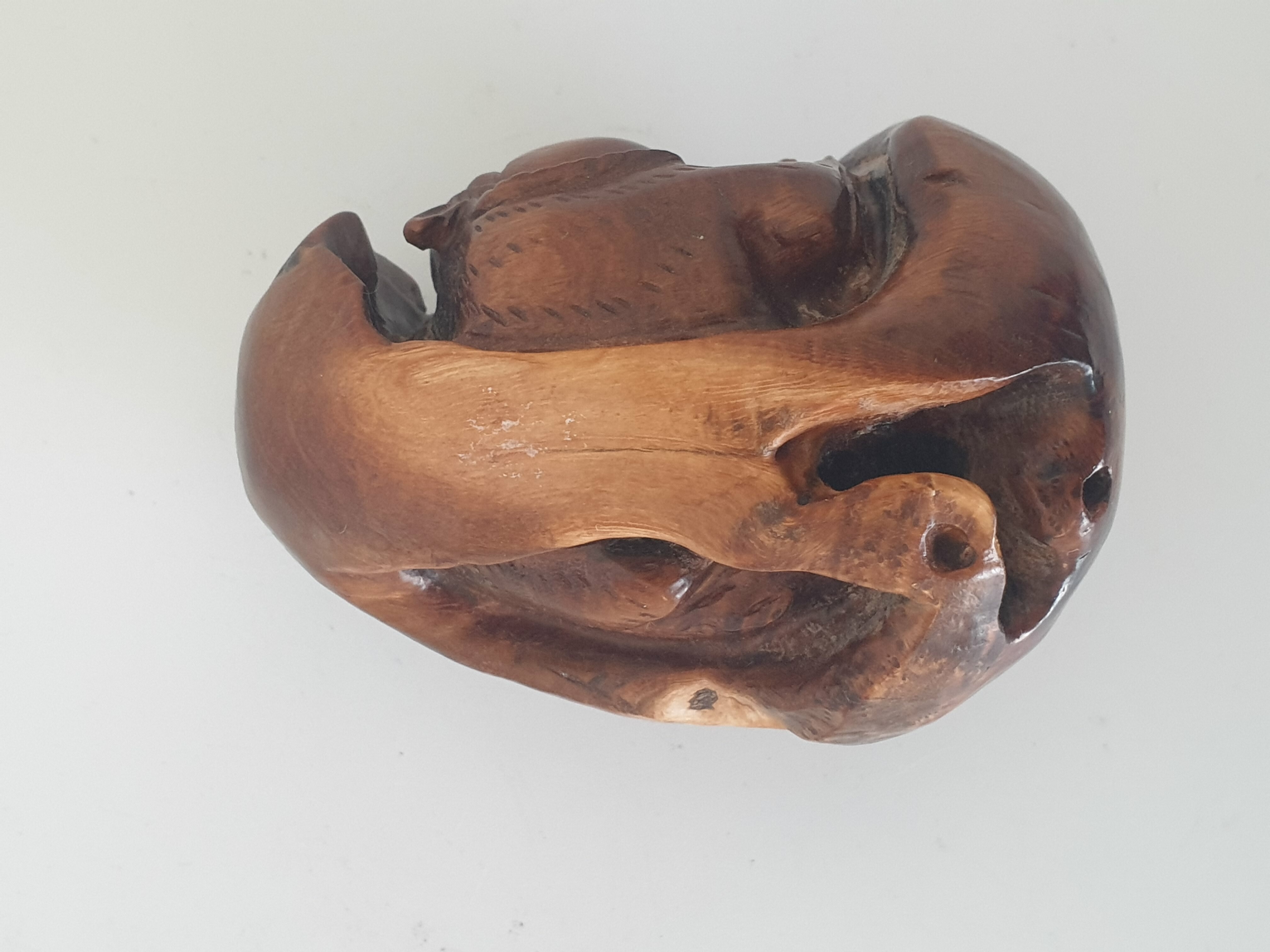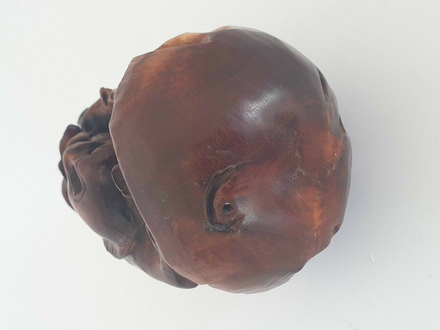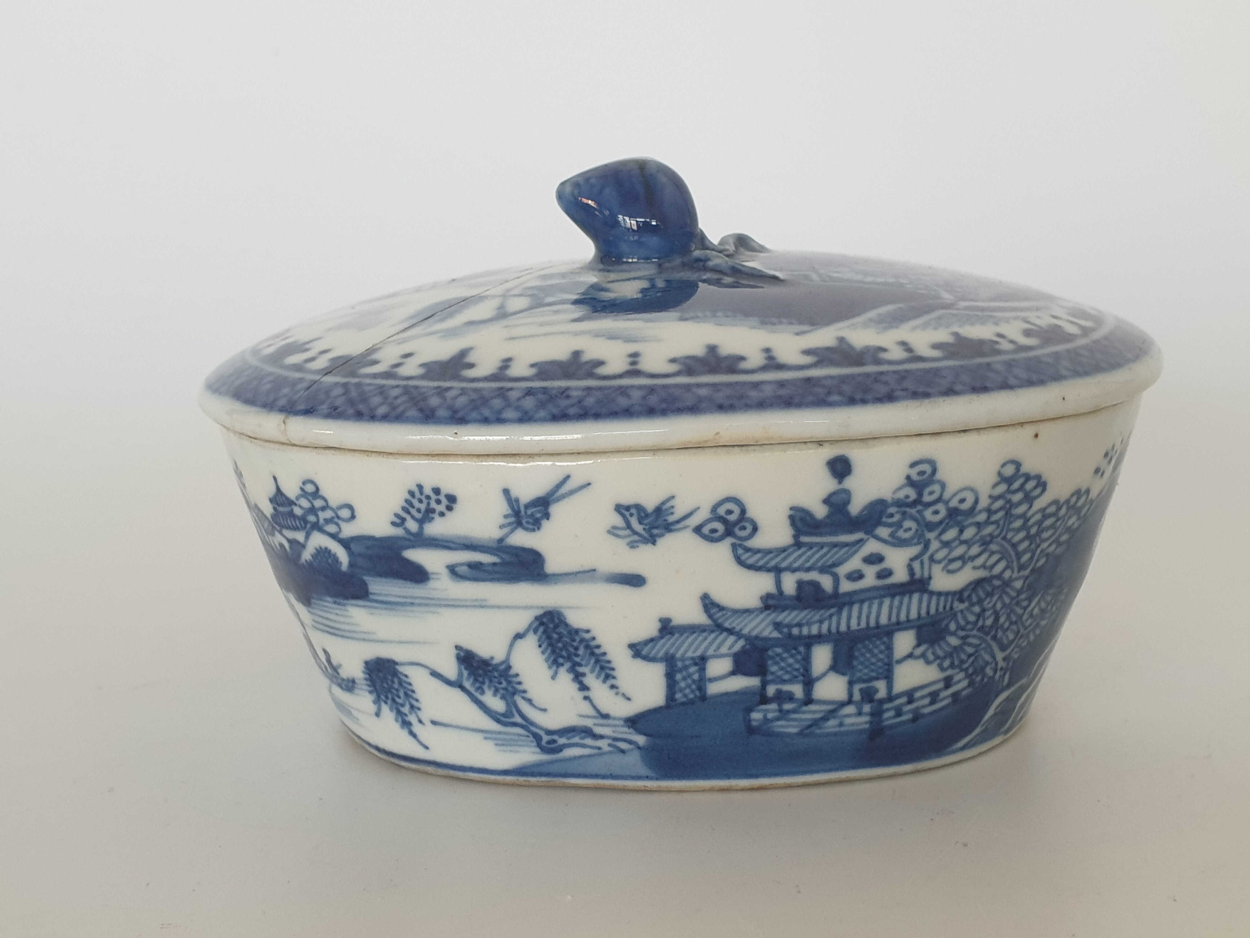 Chinese botervloot uit de 18e eeuw daarbij een gesneden voorstelling in hout, China 20e eeuw. |