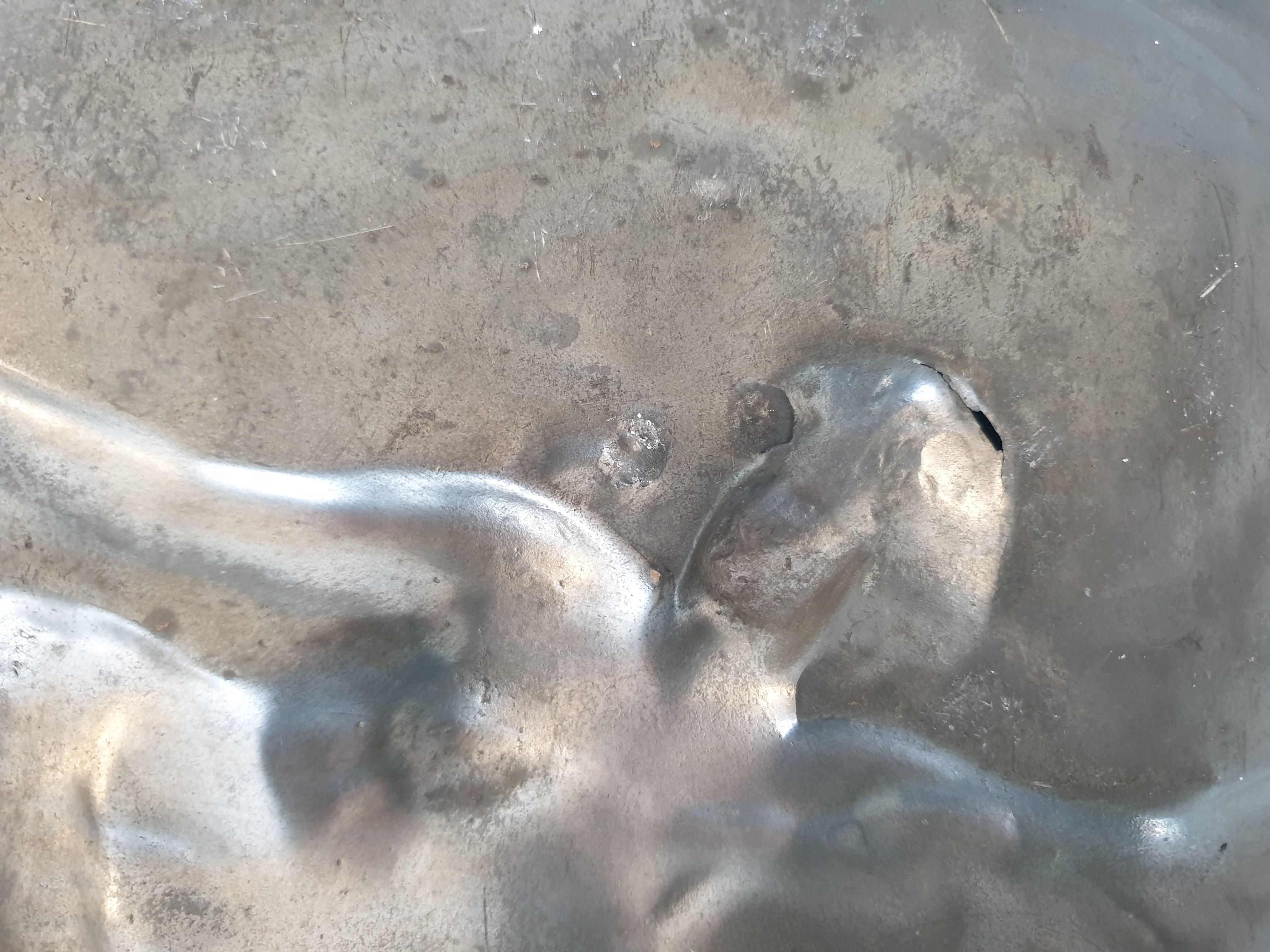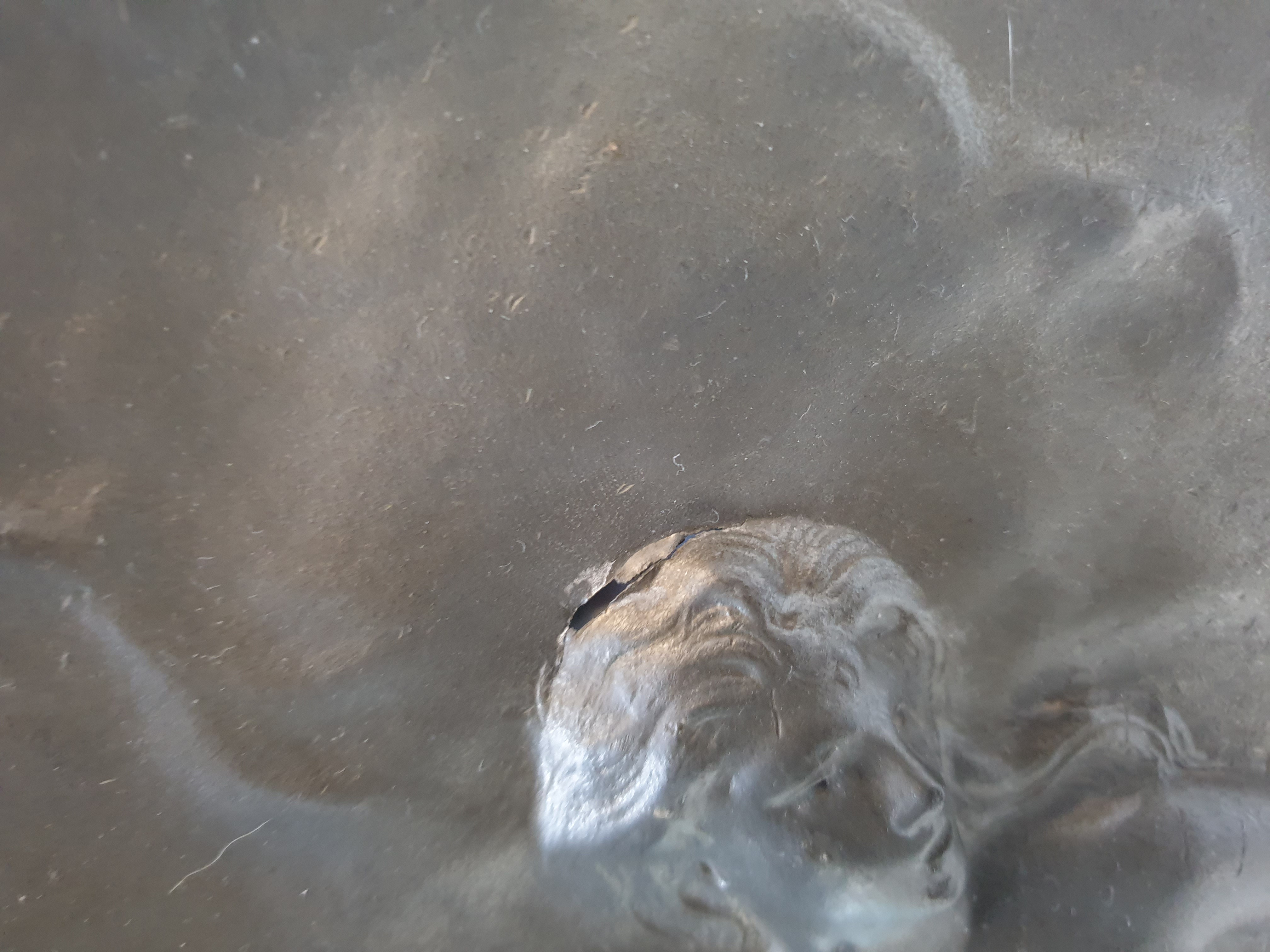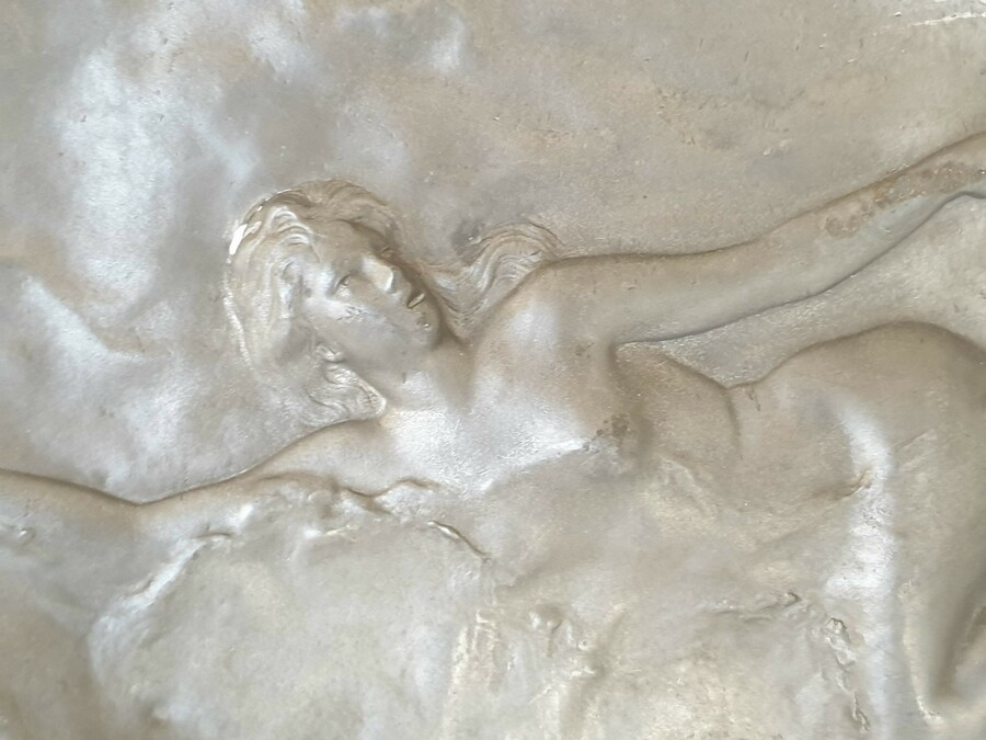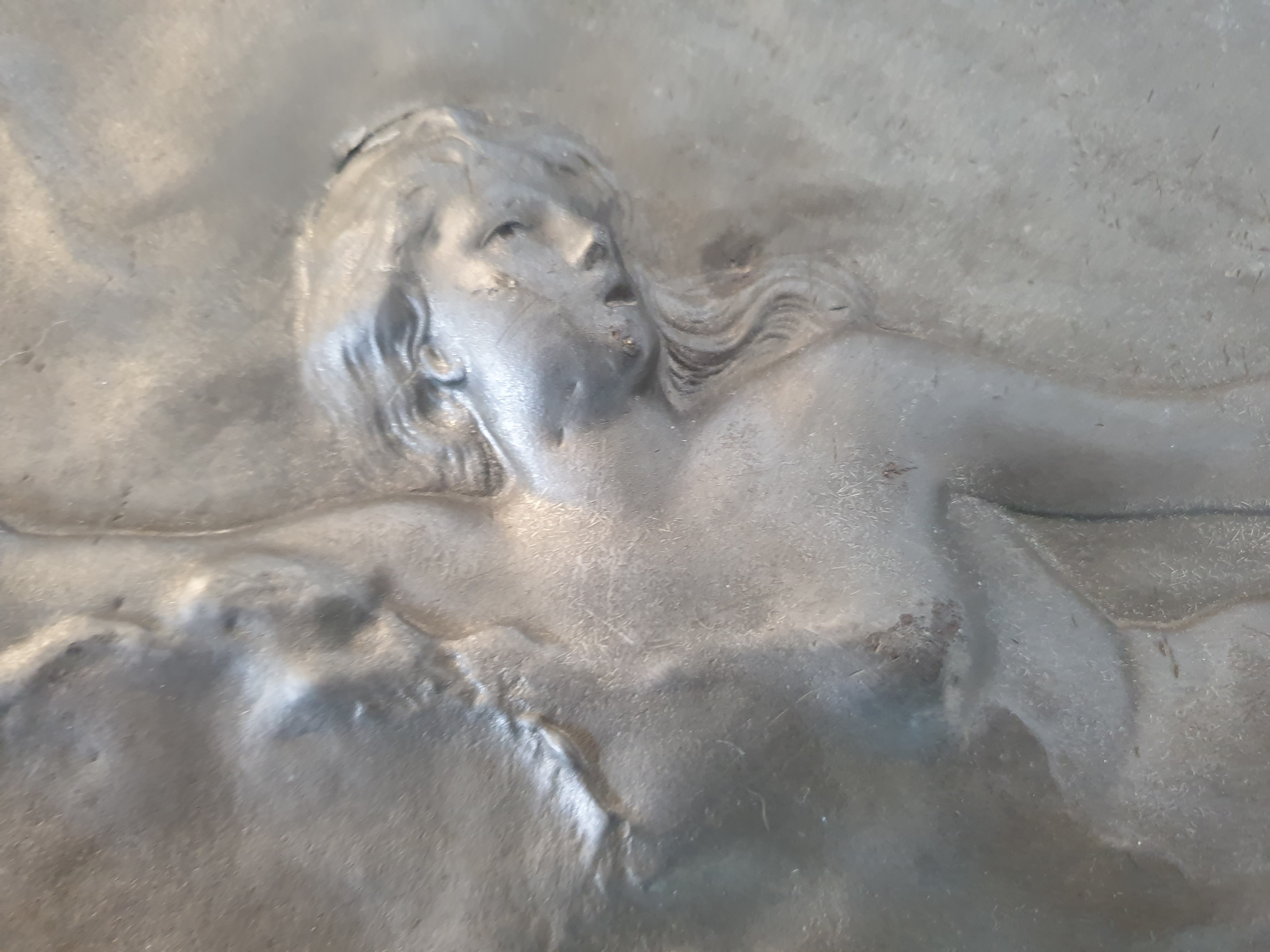 Groot tinnen bord, Art Nouveau, J. Garnier. Gesigneerd circa 1920. |