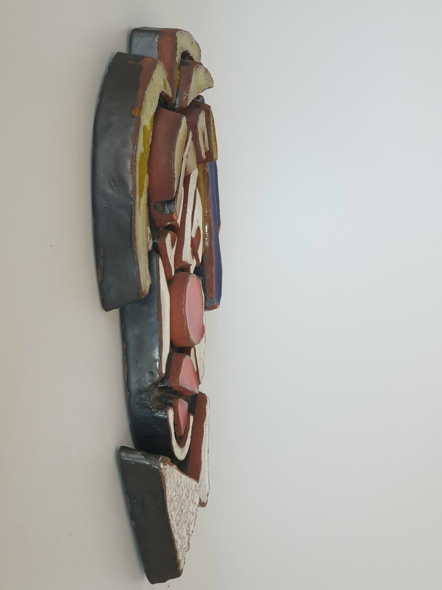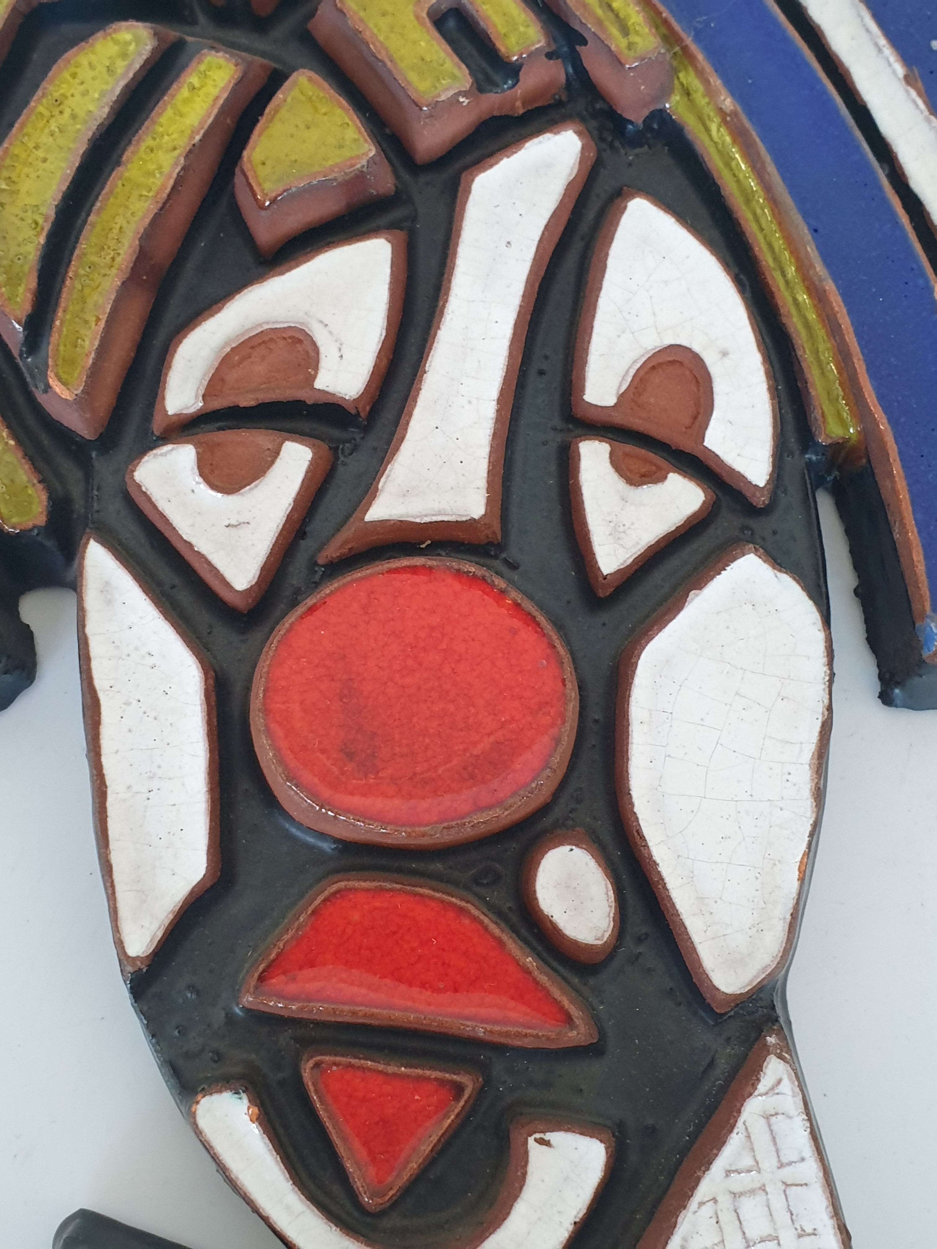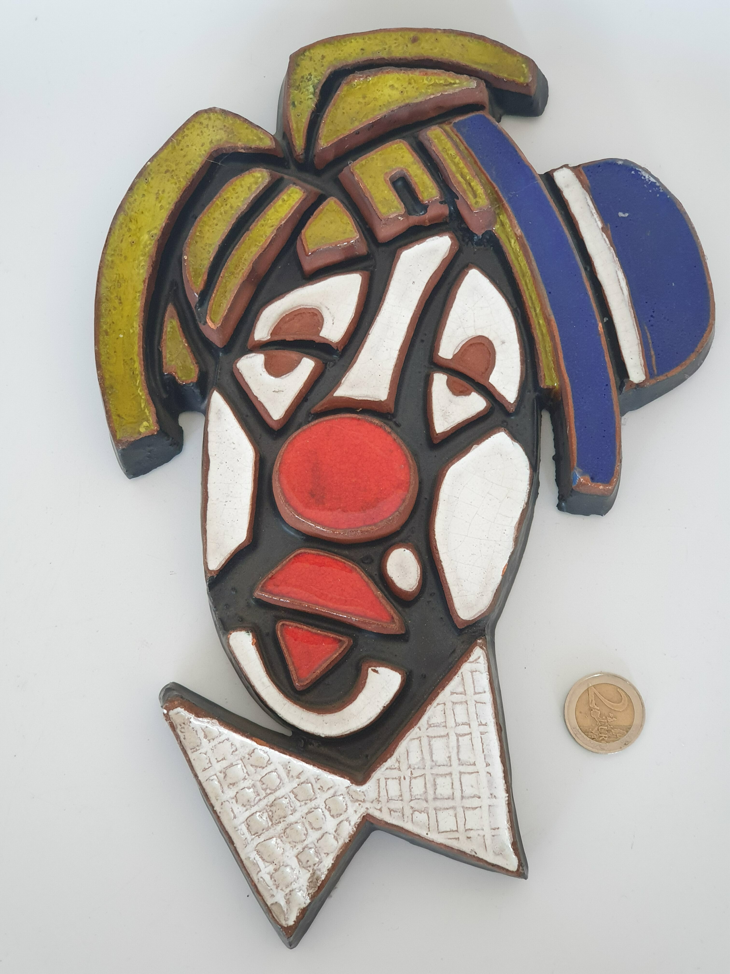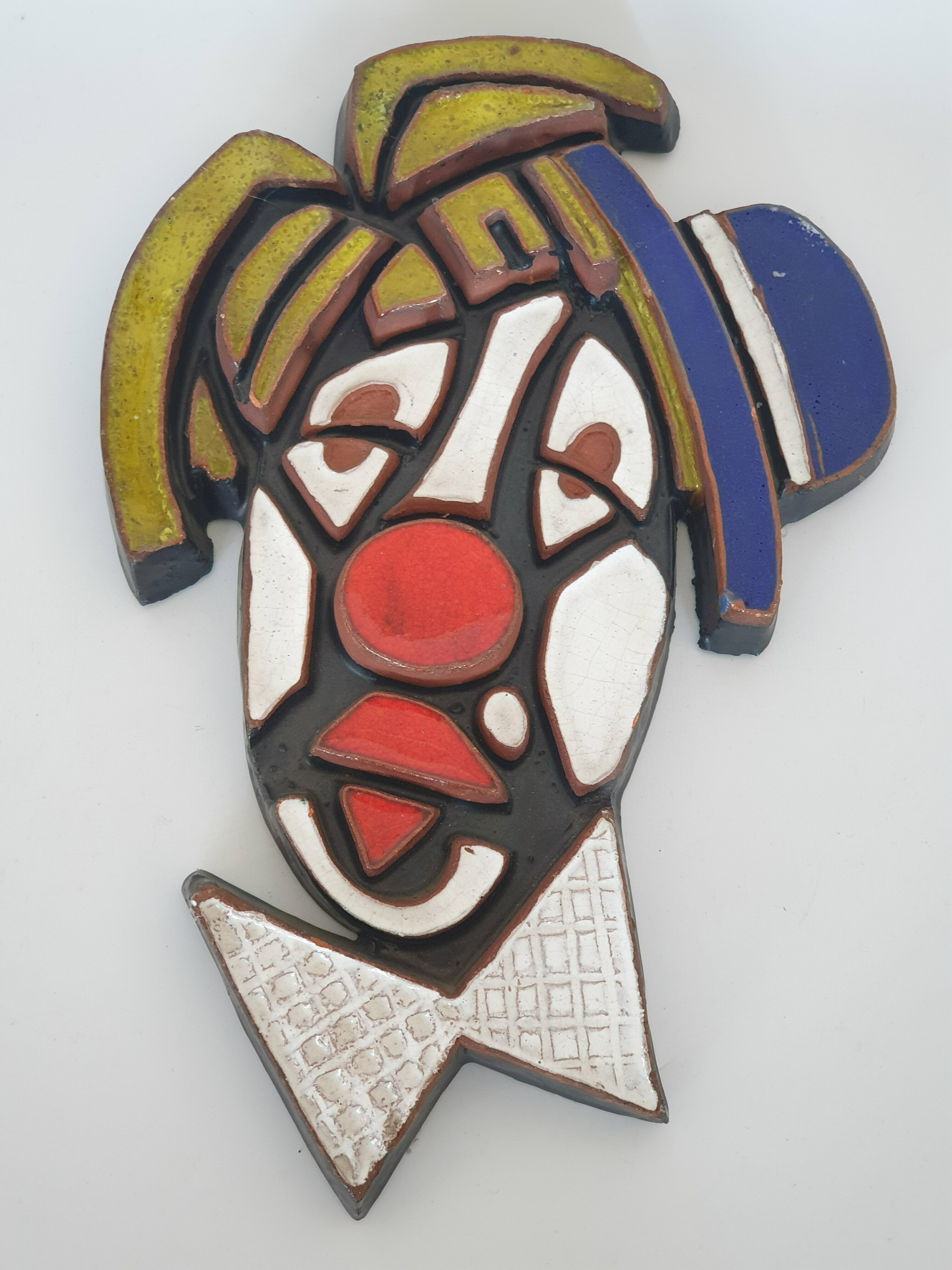 Keramieken muurdecoratie clown, ontwerp Karel. |