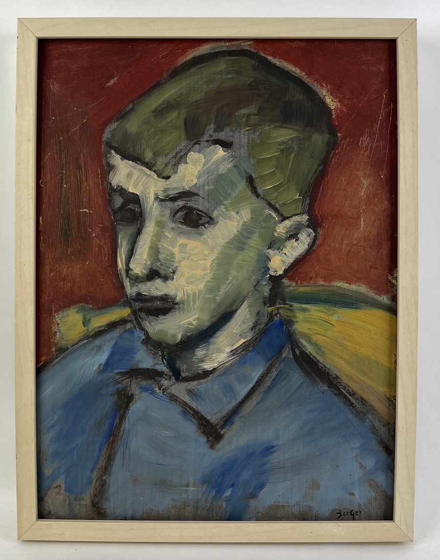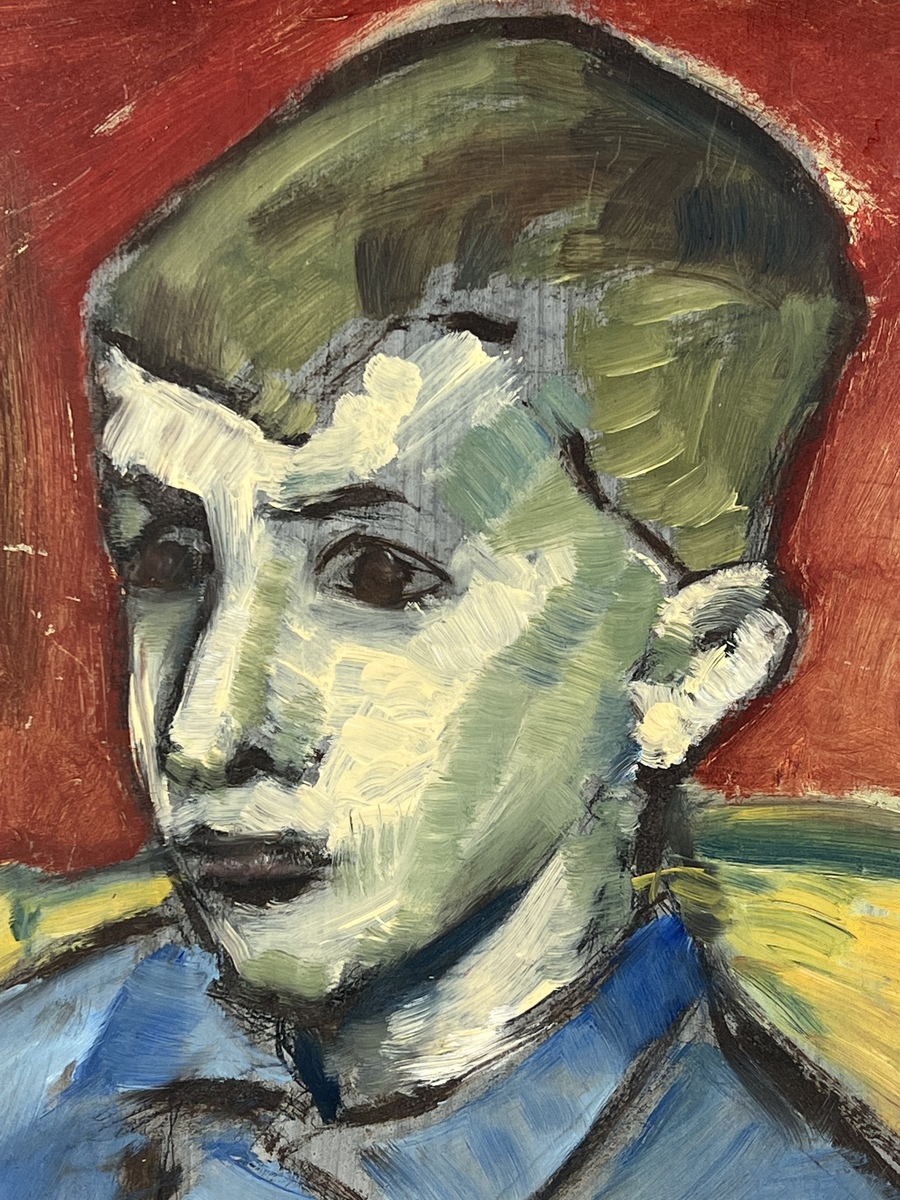 Schilderij, olieverf op hardboard, portret van een jongen. Rechtsonder gesigneerd, midden 20e eeuw. |