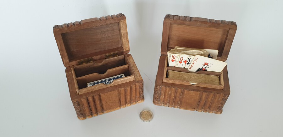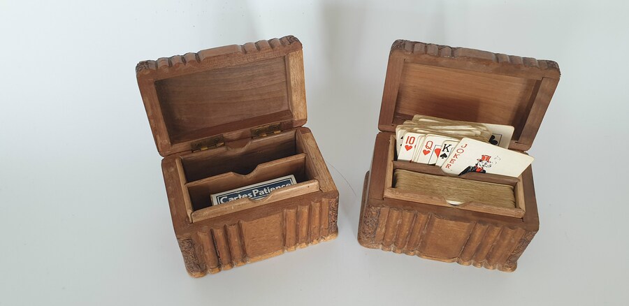 Houten kisten met speelkaarten