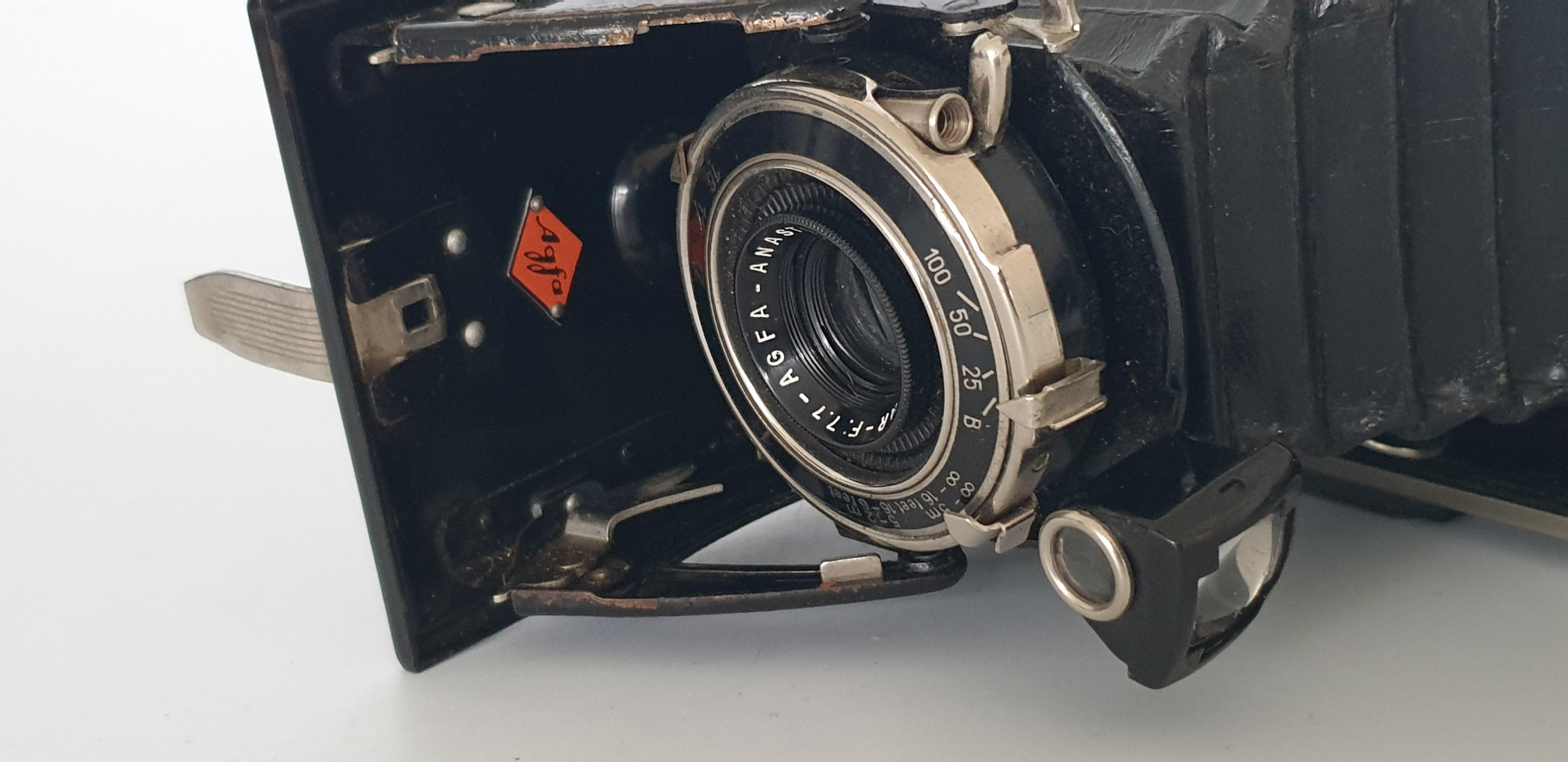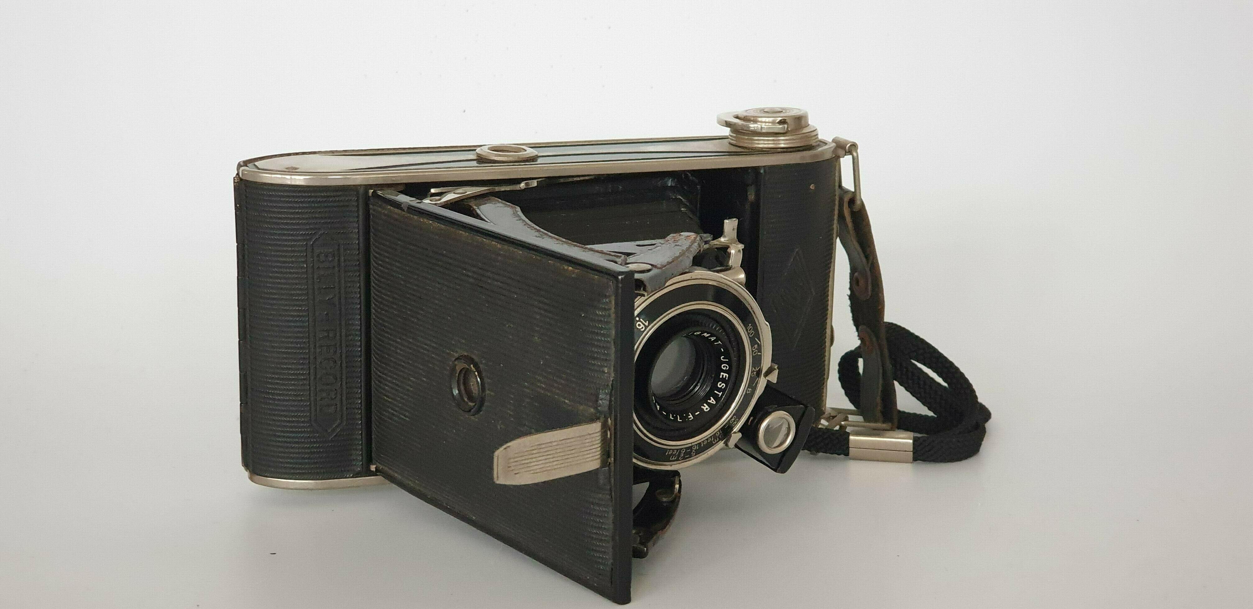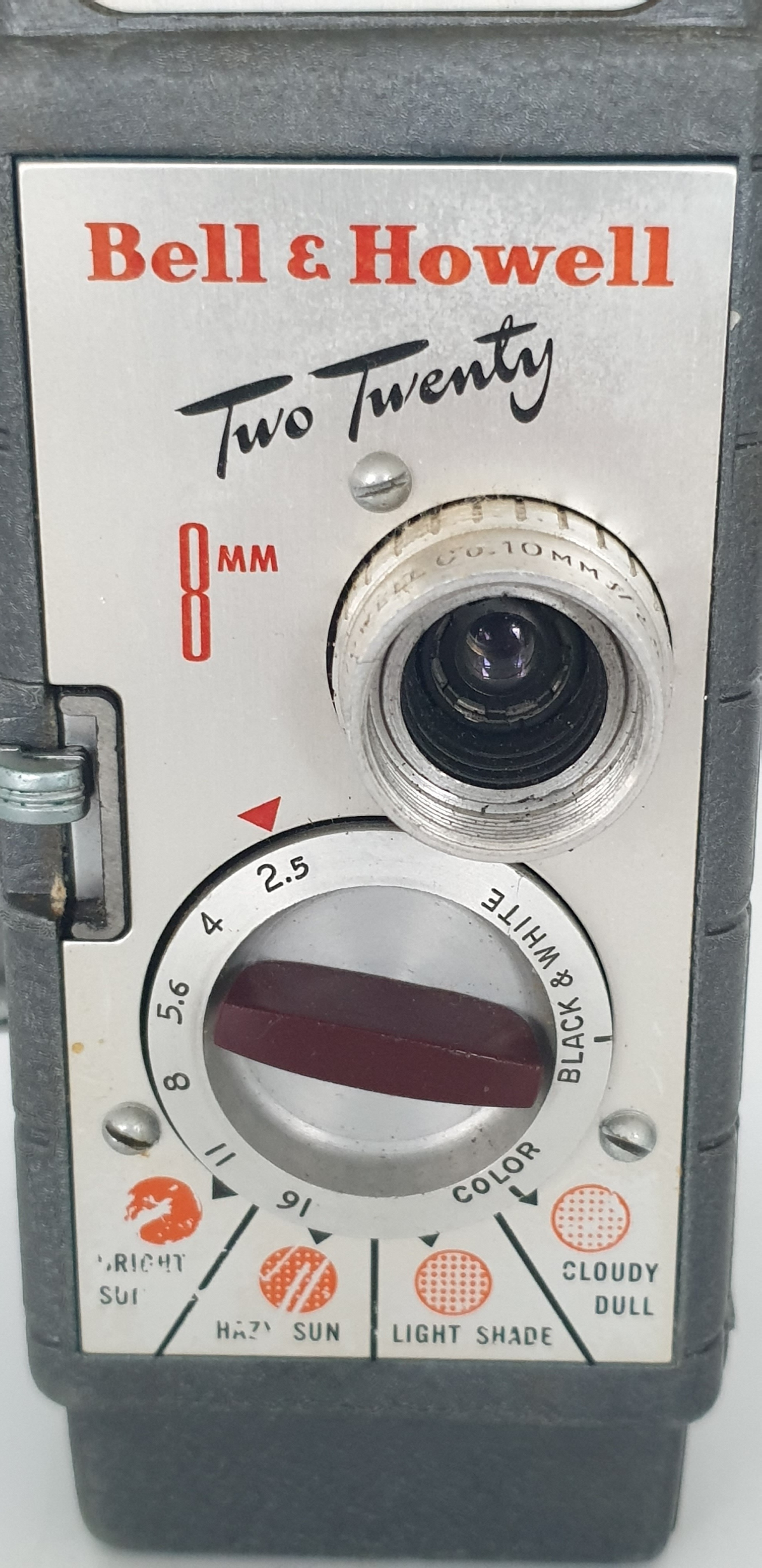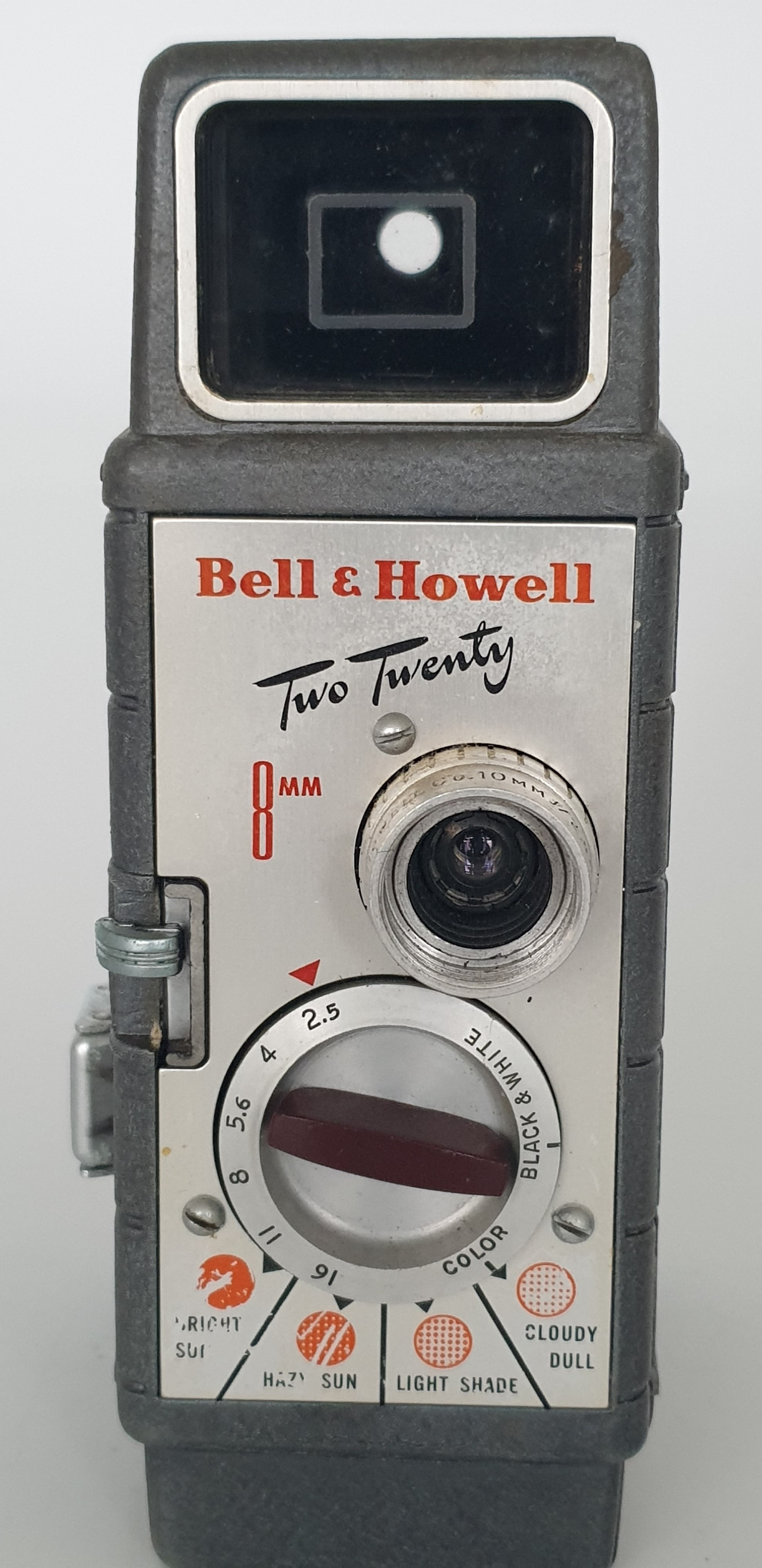 Een filmcamera en een fotocamera, Bell & Howell en Agfa. |