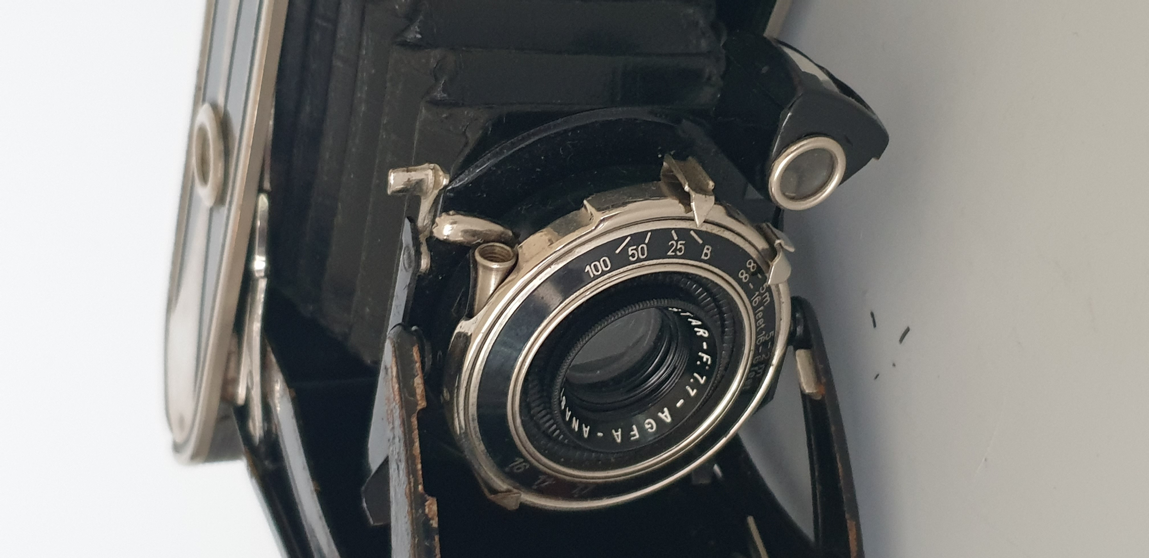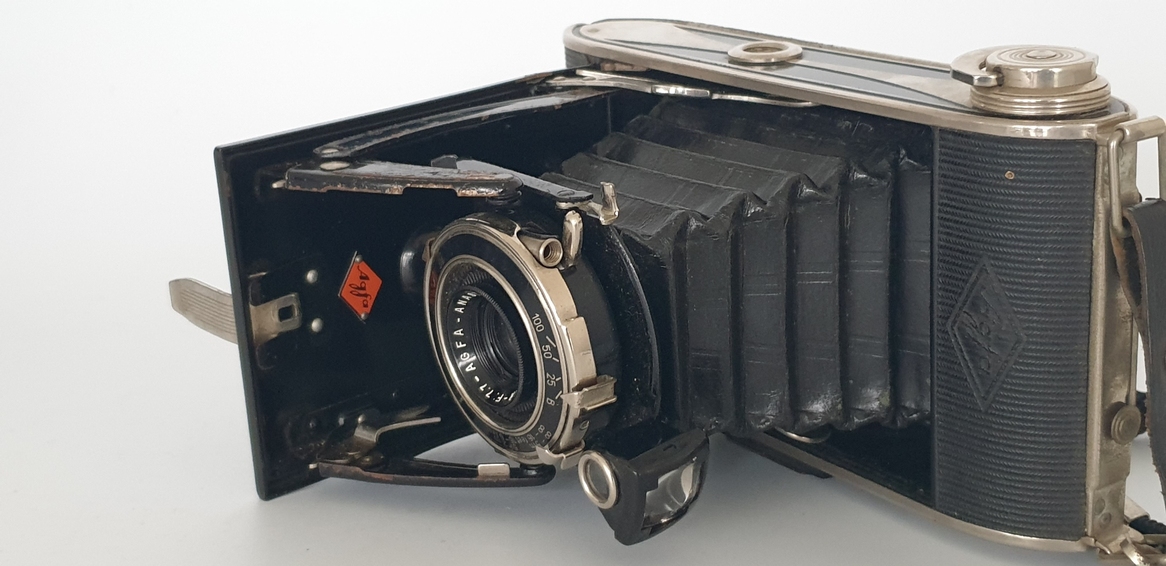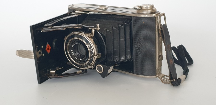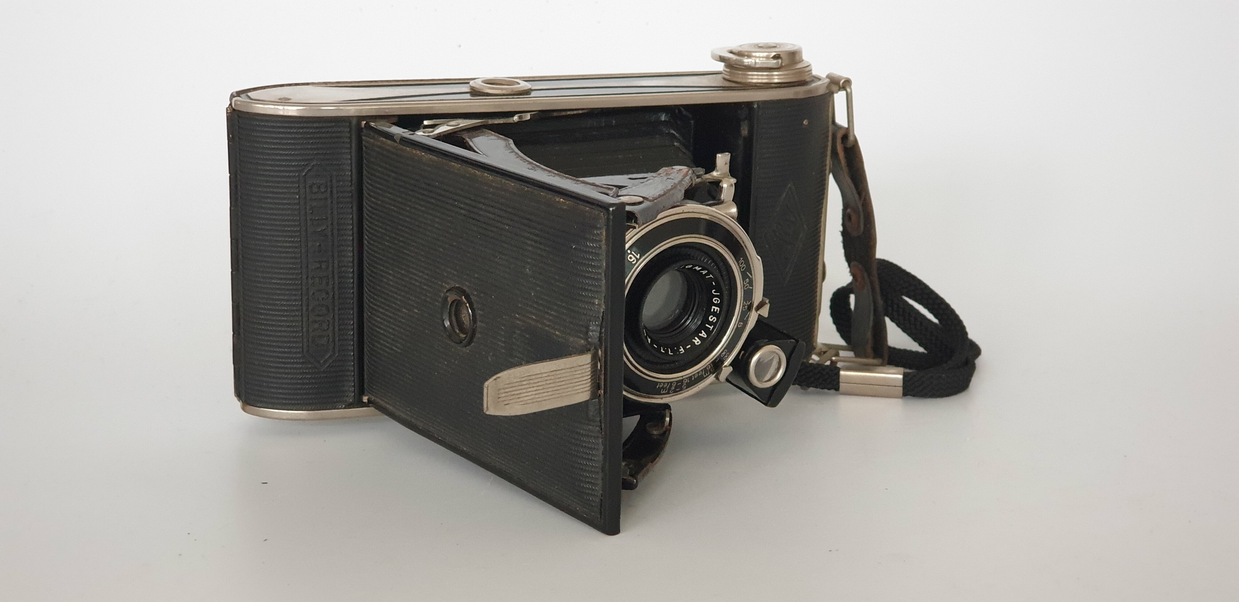 Een filmcamera en een fotocamera, Bell & Howell en Agfa. |