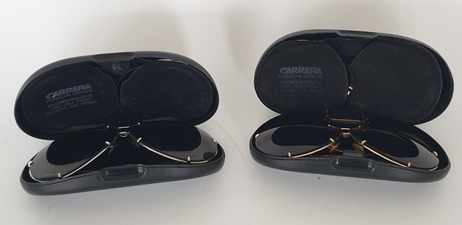 Twee vintage Porsche Design zonnebrillen met extra glazen en originele doosjes, Carrera, jaren 80. |