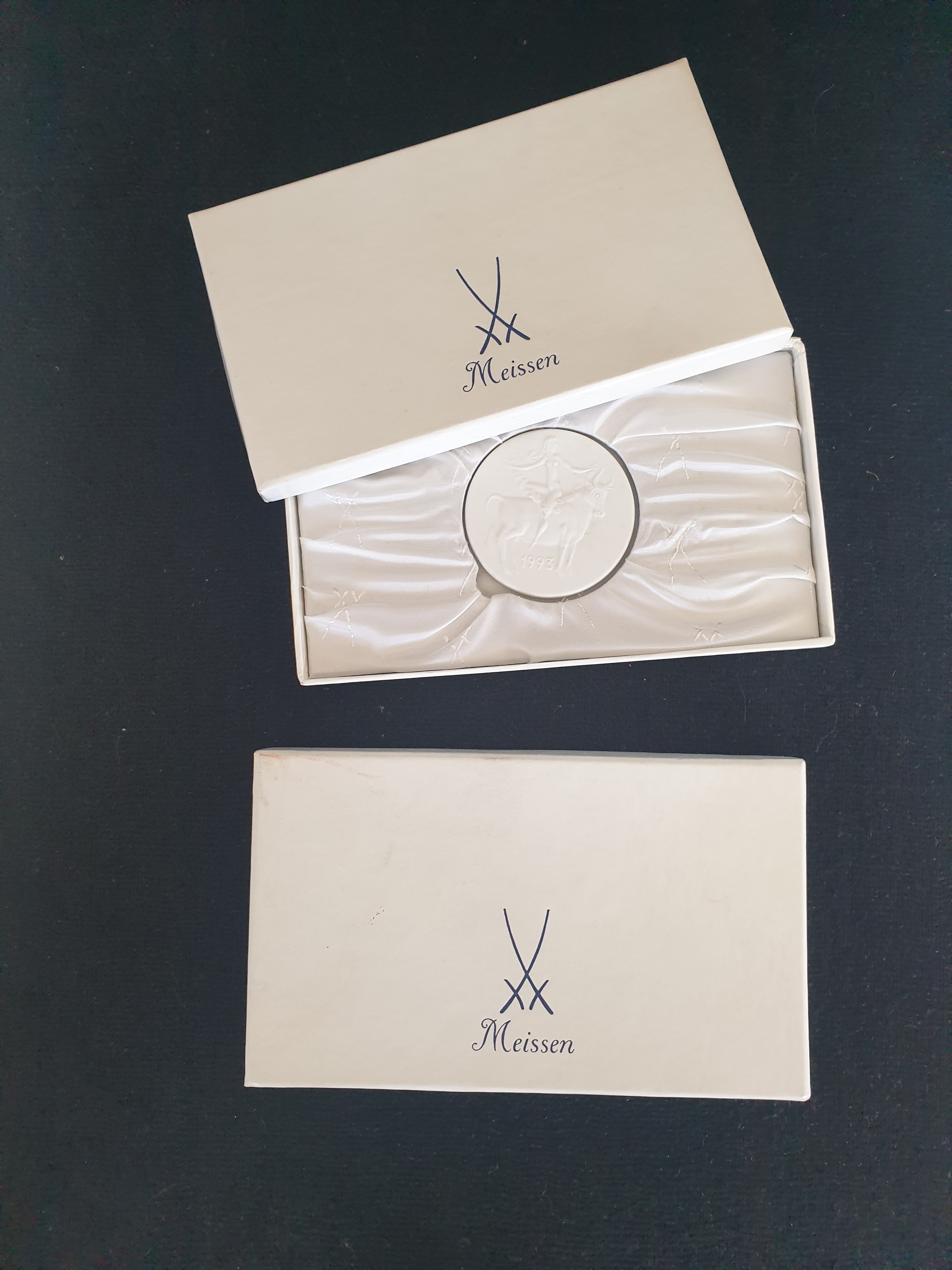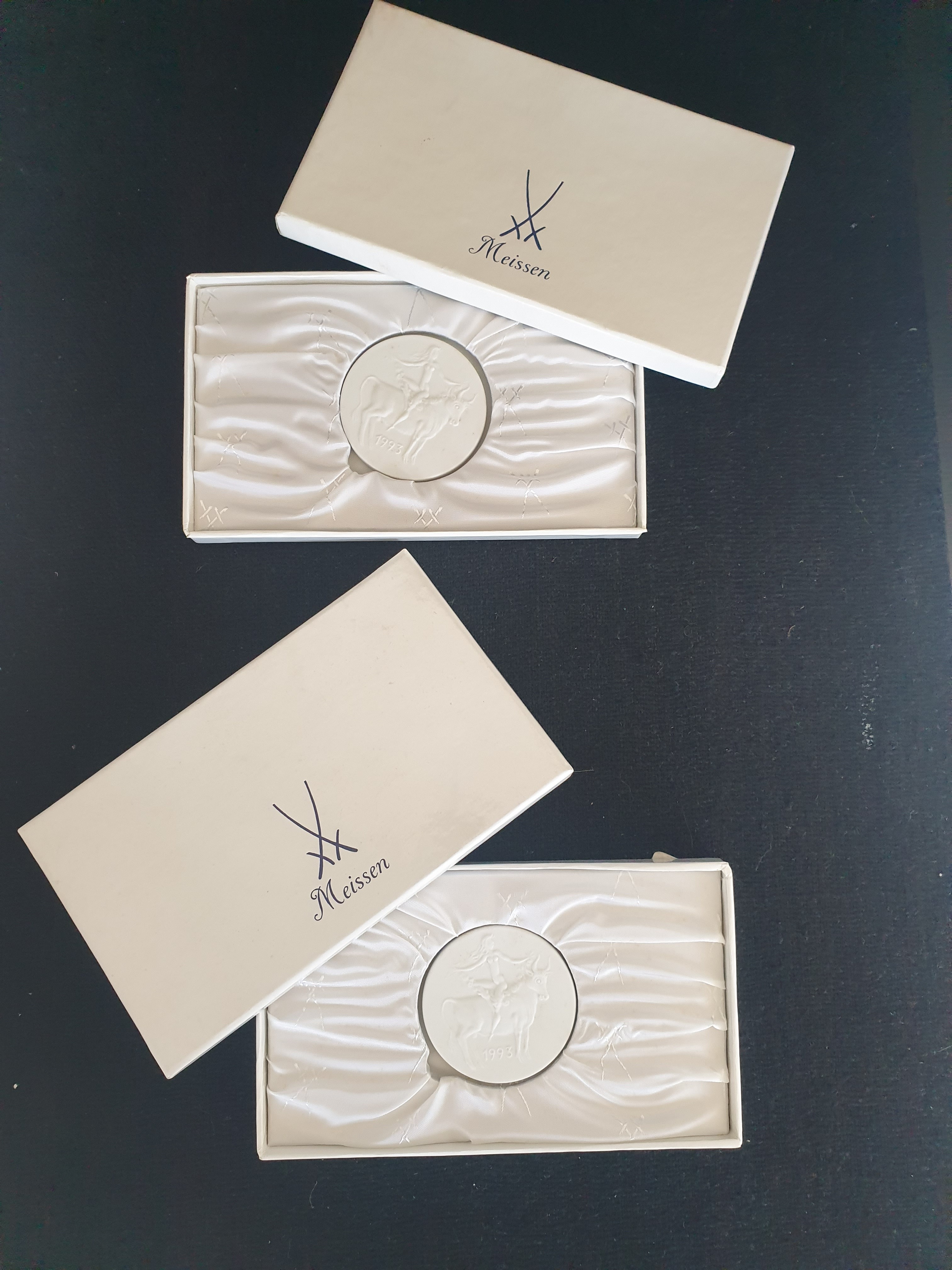 Twee doosjes met gelegenheidsmedailles van Meissen, Duitsland, 20e eeuw. |